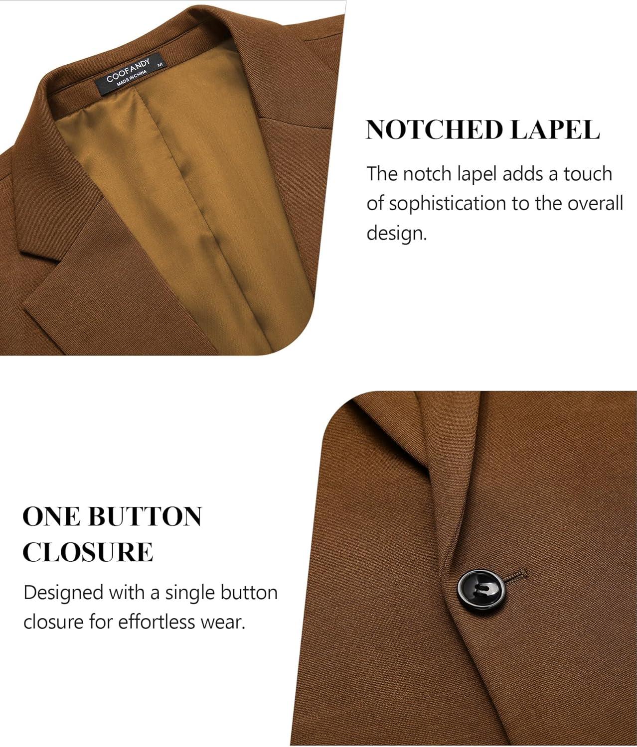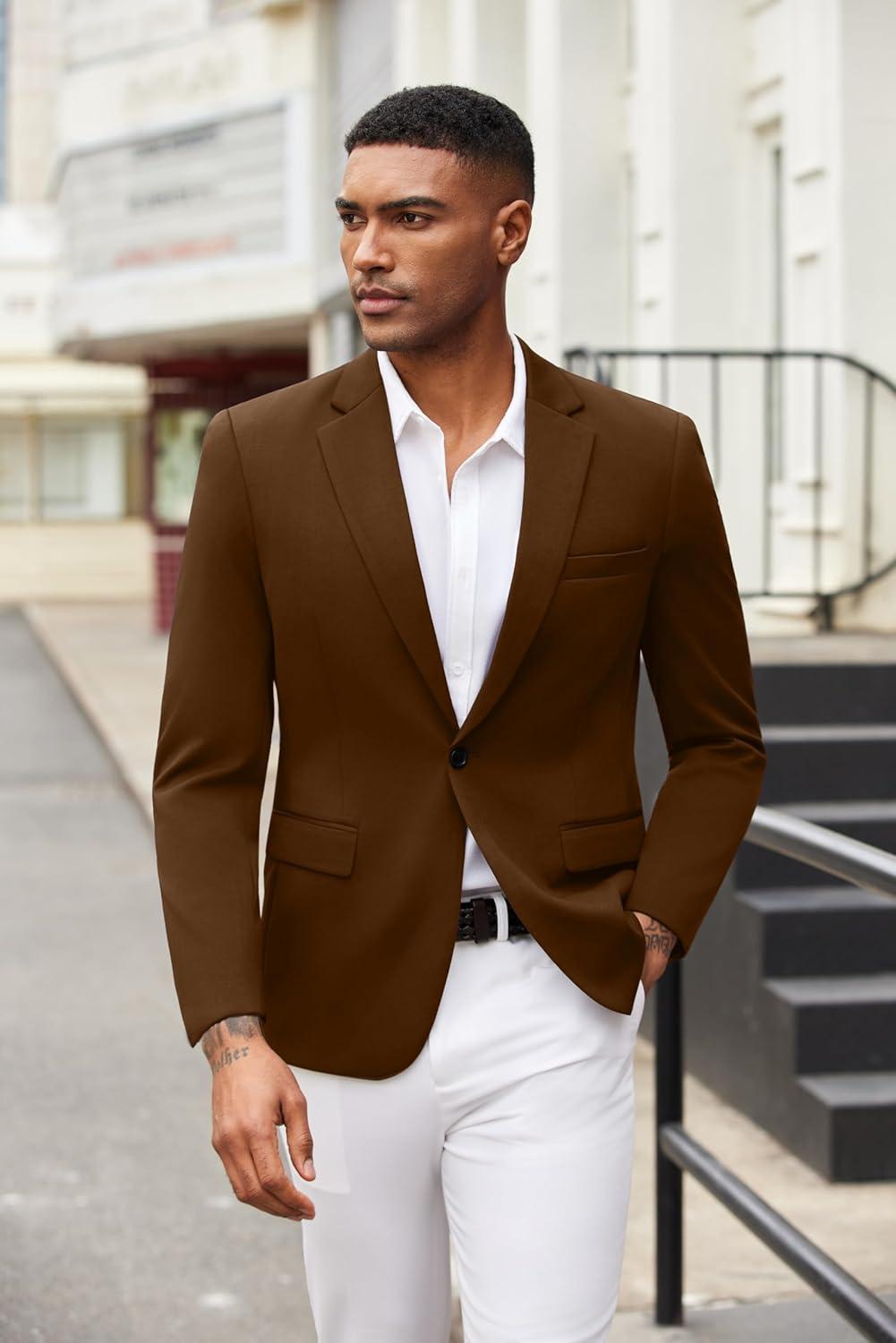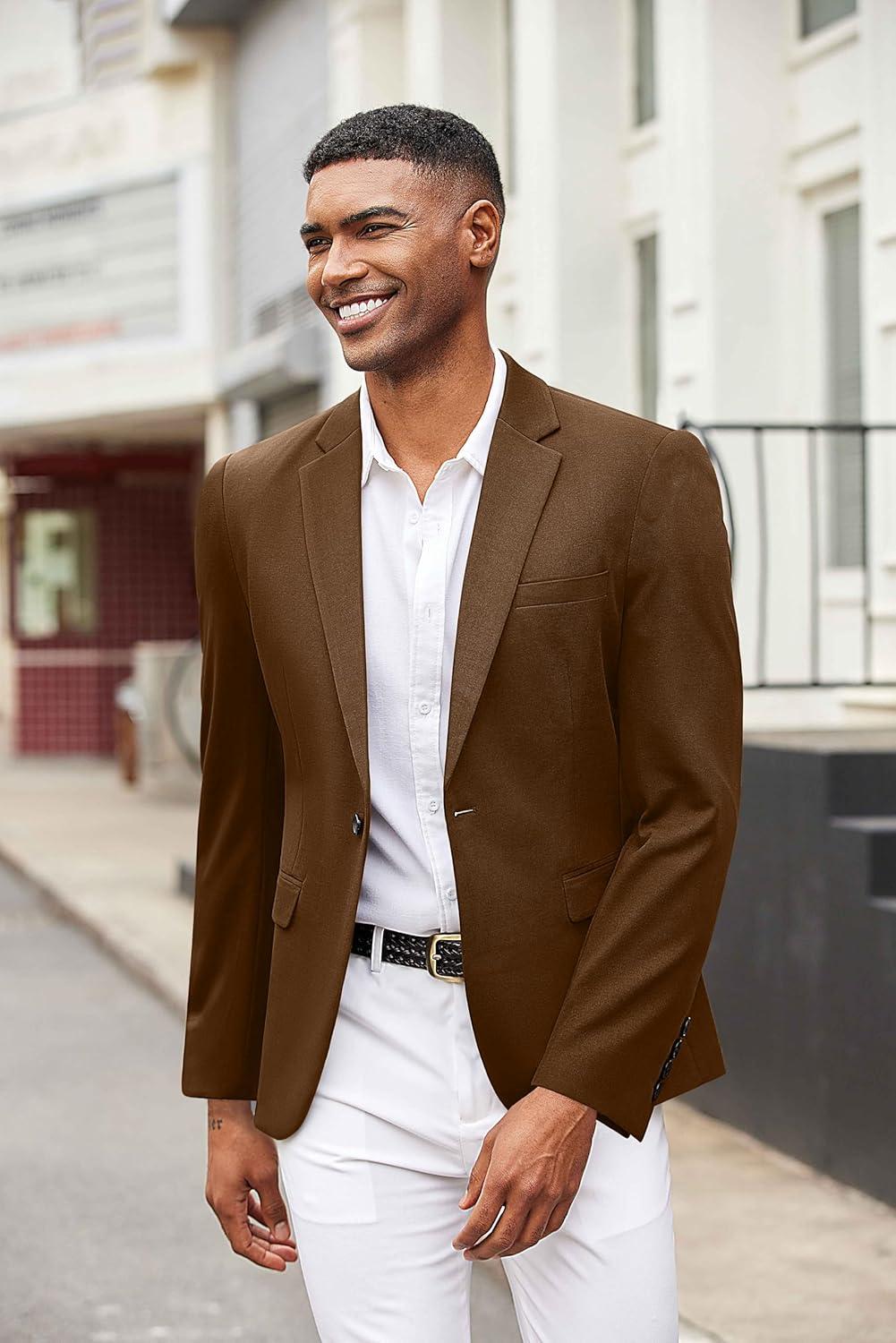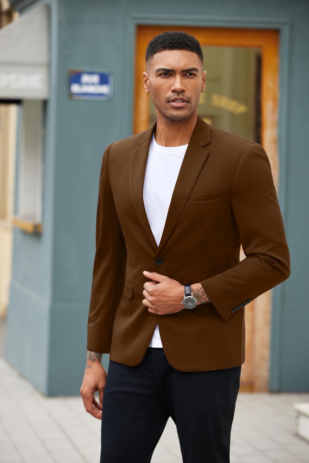 COOFANDY Mens Blazer Jacket One Button Casual Suit Jackets Stretch Knit Sport Coat(Brown-2)