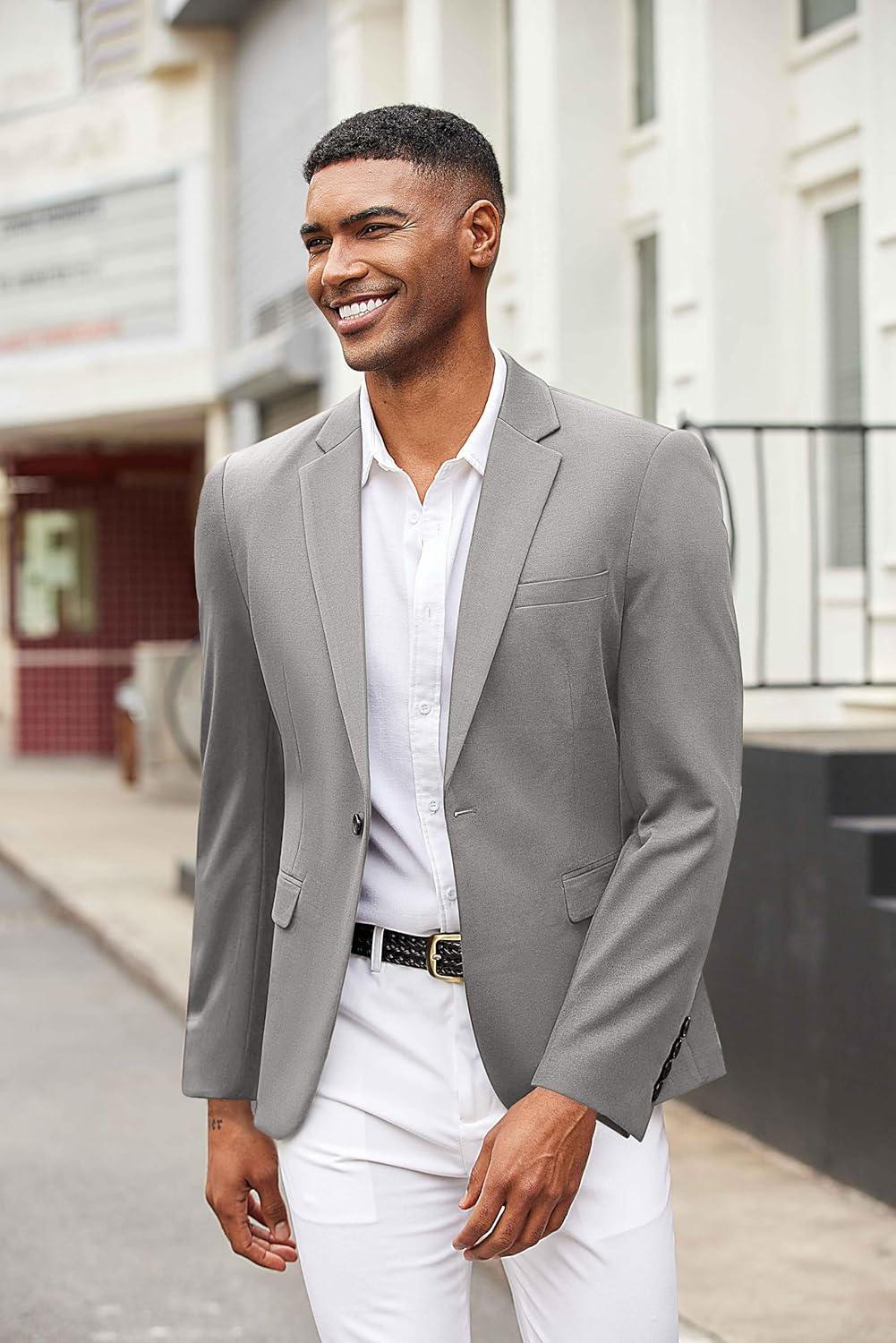COOFANDY Mens Blazer Jacket One Button Casual Suit Jackets Stretch Knit Sport Coat(Light Gray)