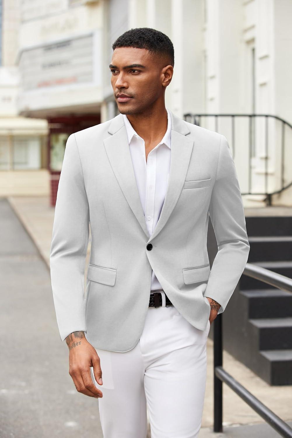 COOFANDY Mens Blazer Jacket One Button Casual Suit Jackets Stretch Knit Sport Coat(White)