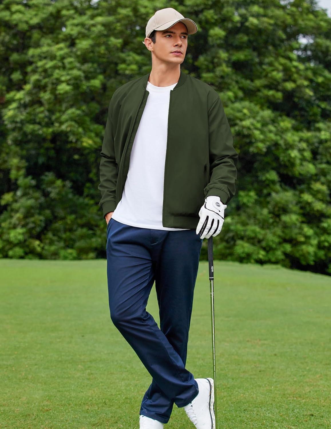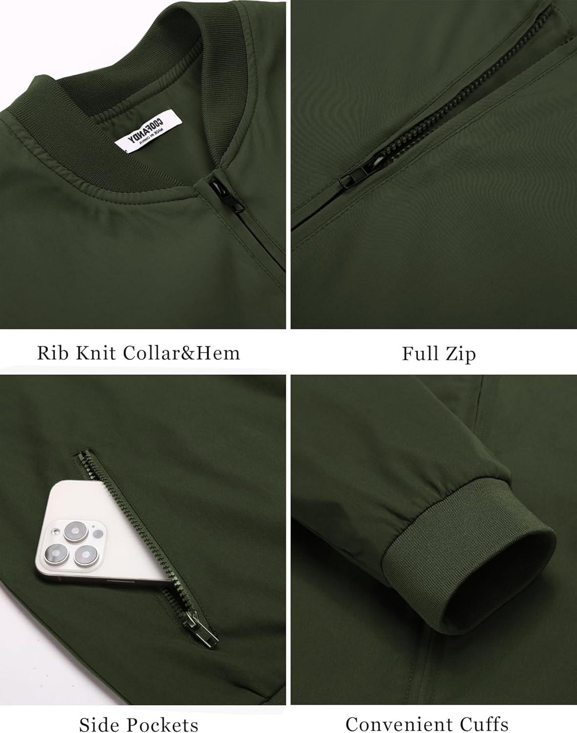 COOFANDY Men's Bomber Jacket Lightweight Casual Stylish Light Flight Jacket Windbreaker Varsity Jackets(Dark Green)