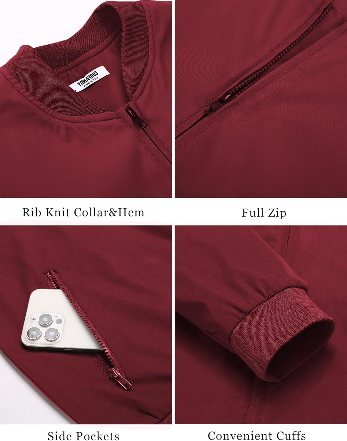 imageCOOFANDY Mens Bomber Jacket Lightweight Casual Stylish Light Flight Jacket Windbreaker Varsity JacketsWine Red