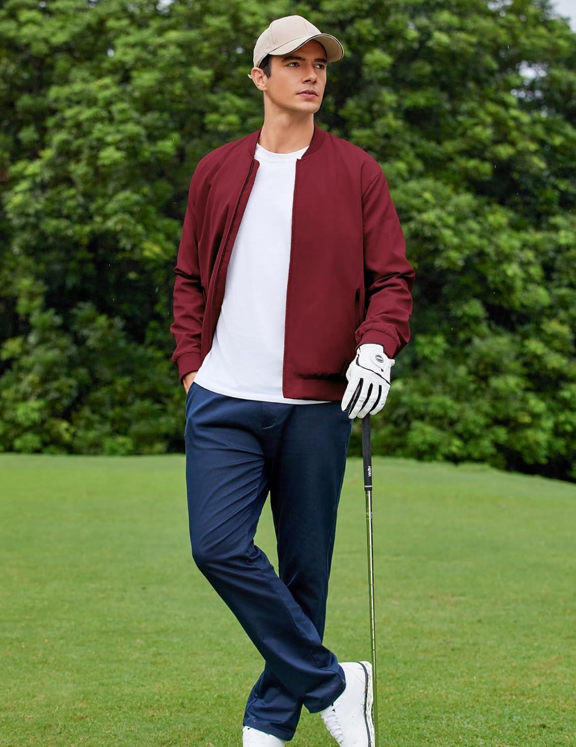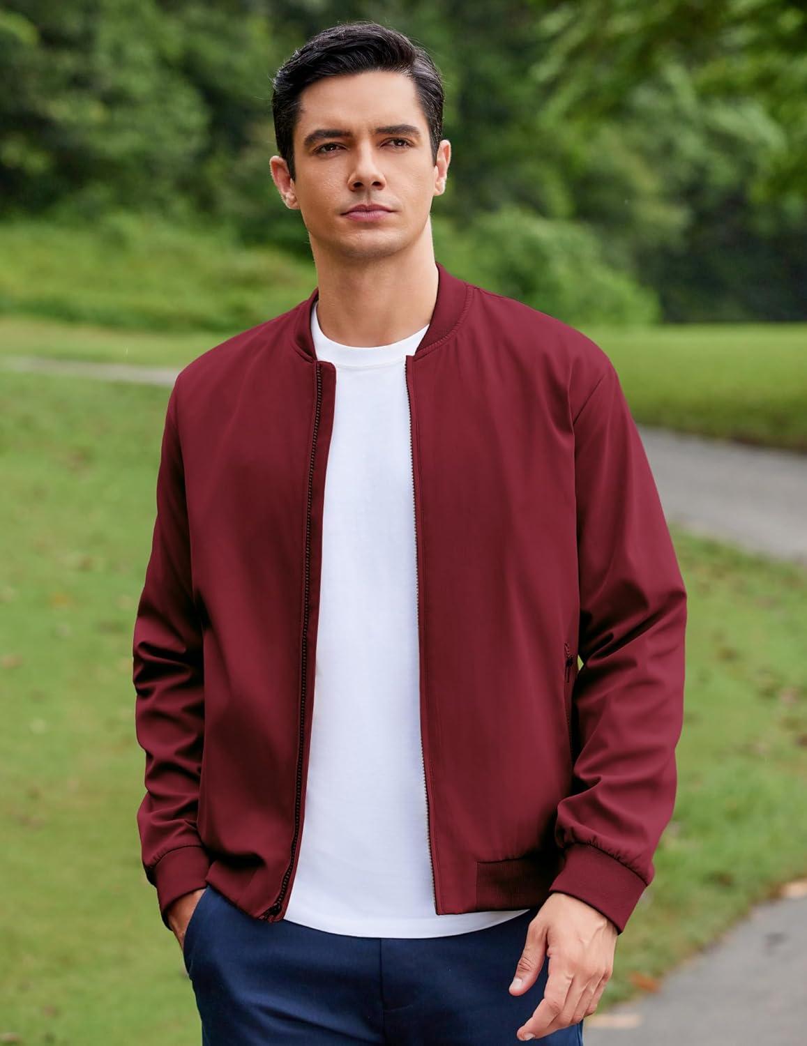 COOFANDY Men’s Bomber Jacket Lightweight Casual Stylish Light Flight Jacket Windbreaker Varsity Jackets(Wine Red)