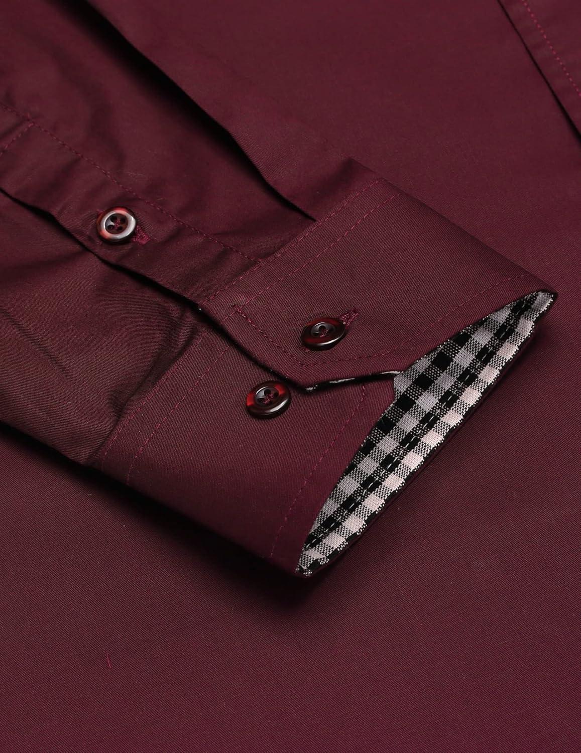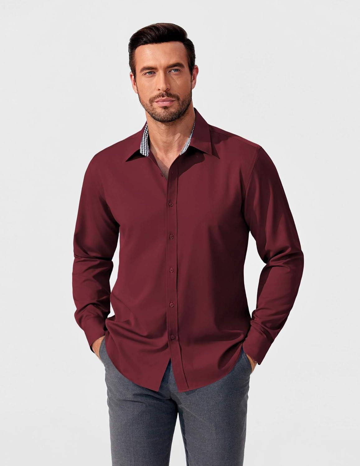 COOFANDY Men's Business Dress Shirt Long Sleeve Slim Fit Casual Button Down Shirt(03_wine Red Solid)