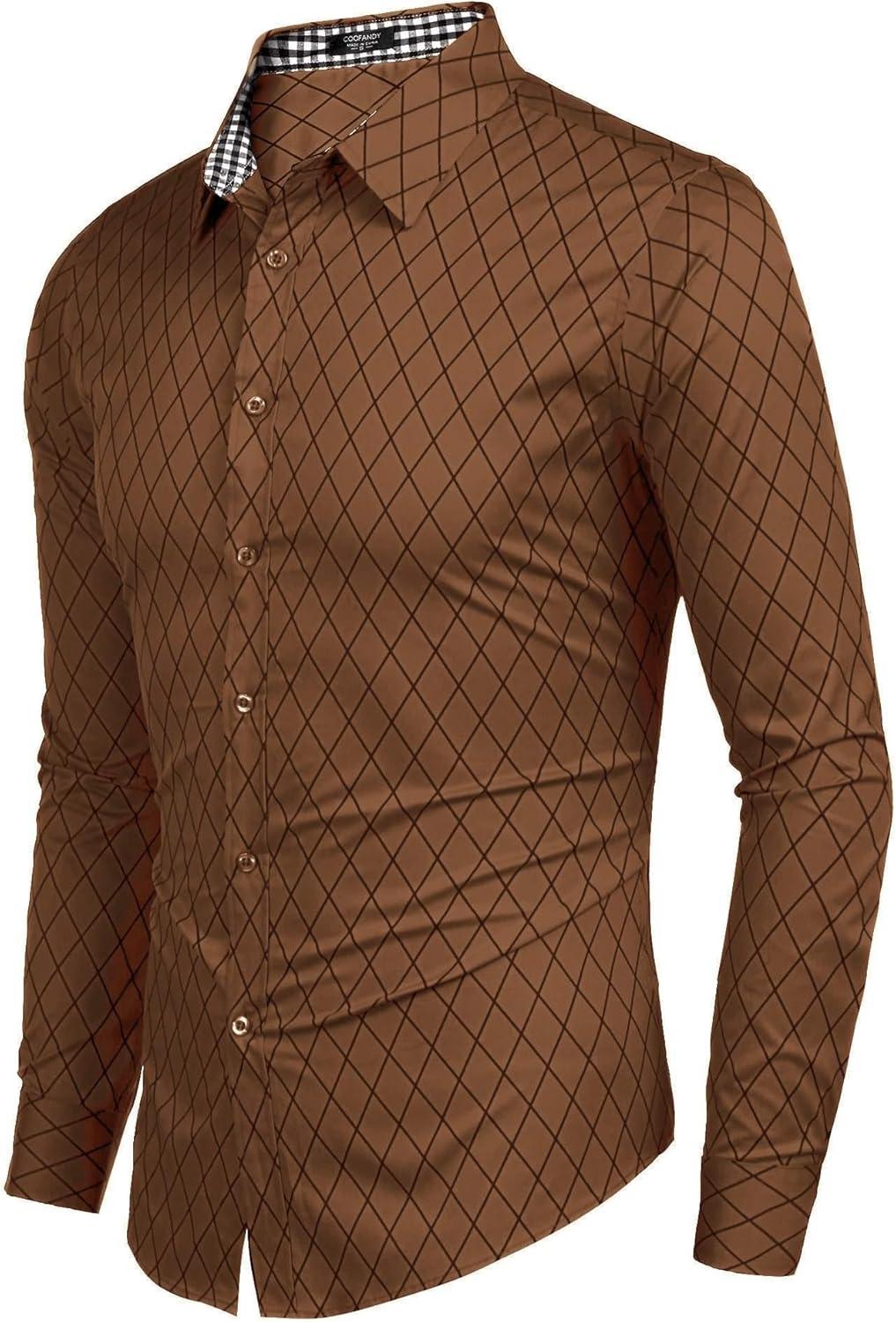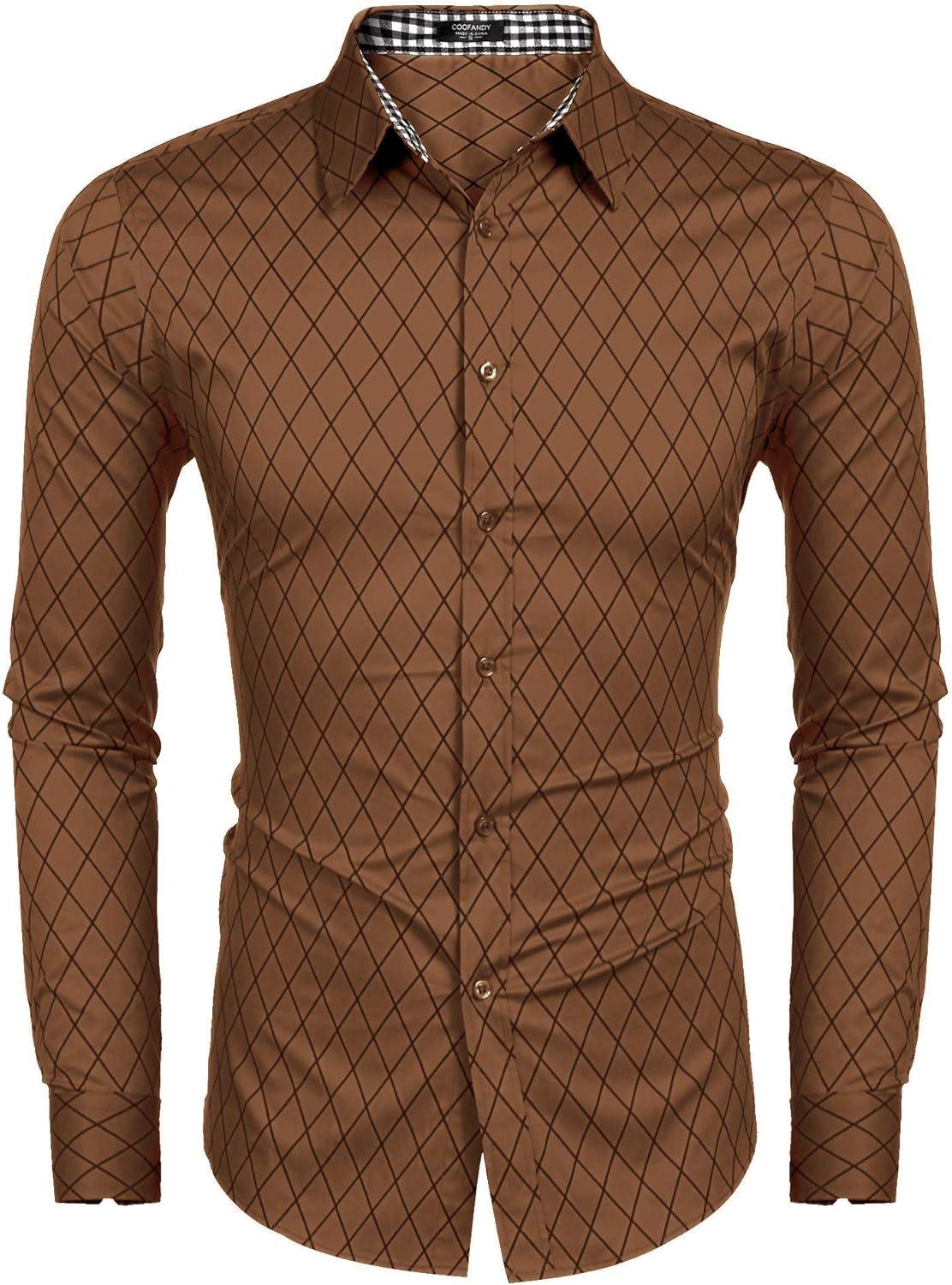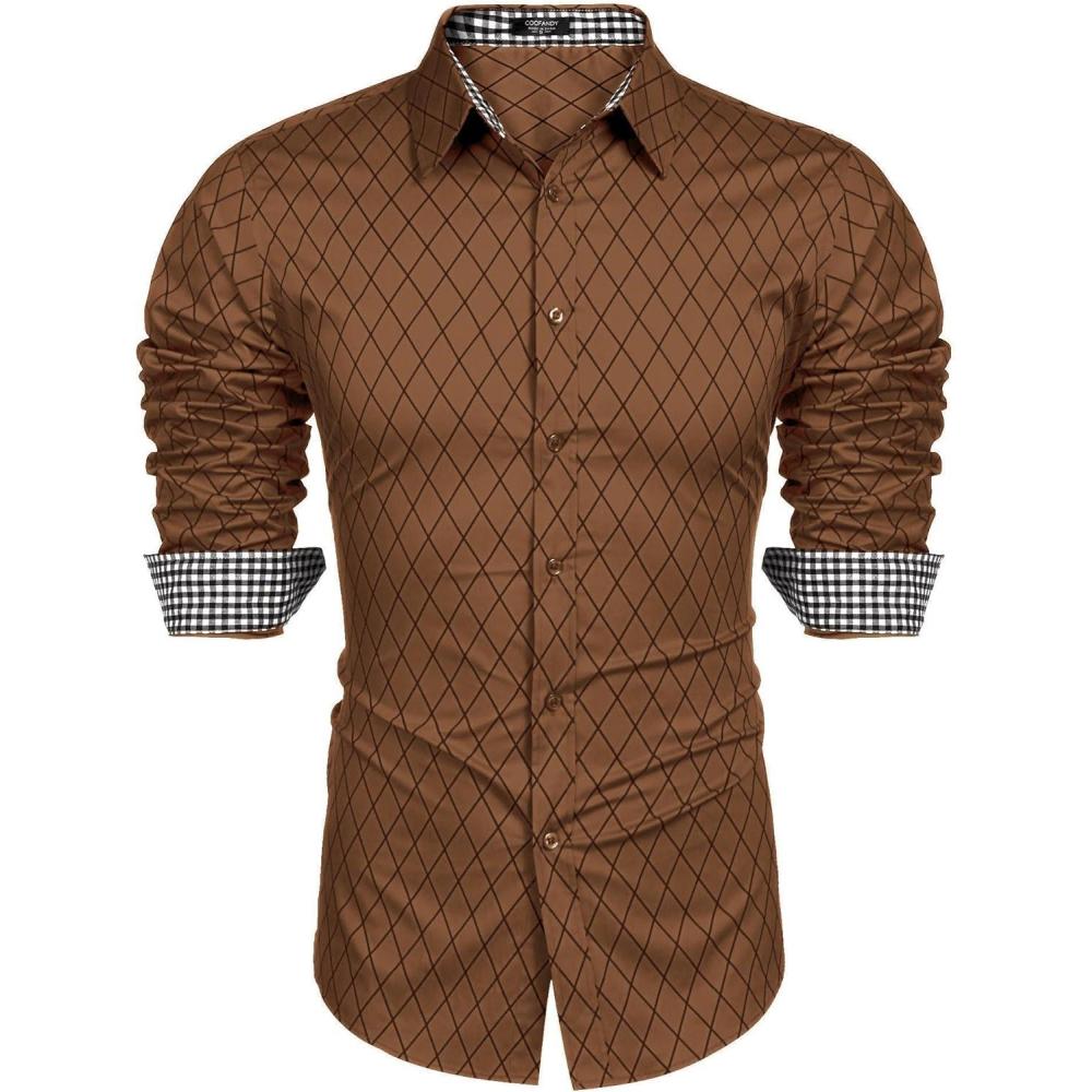 COOFANDY Men's Business Dress Shirt Long Sleeve Slim Fit Casual Button Down Shirt(Brown)