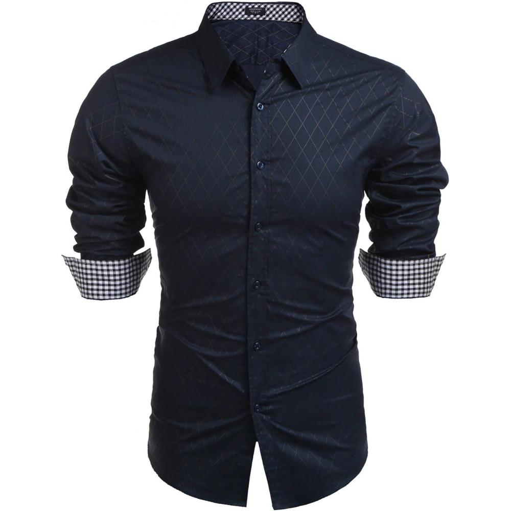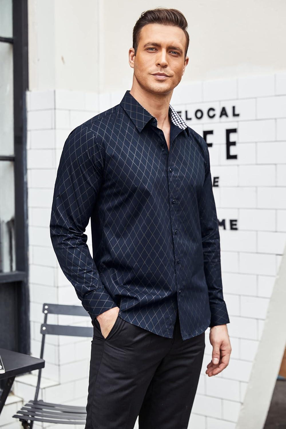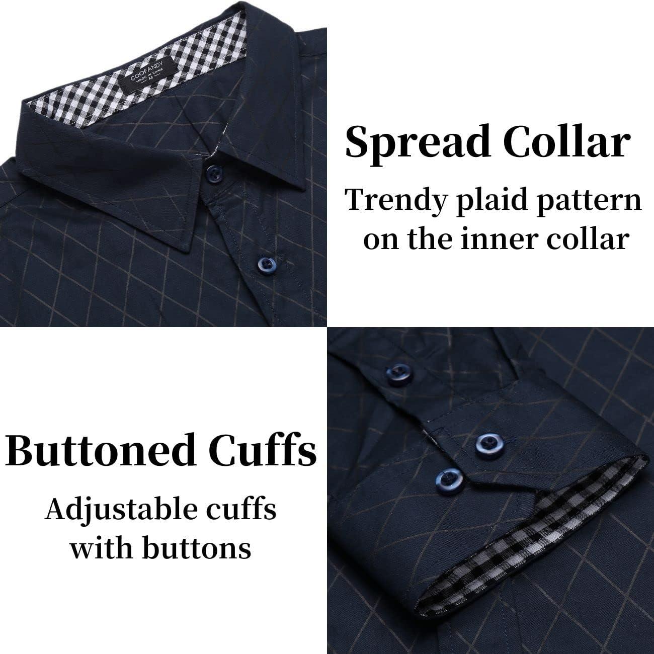 COOFANDY Men's Business Dress Shirt Long Sleeve Slim Fit Casual Button Down Shirt(Dark Blue)