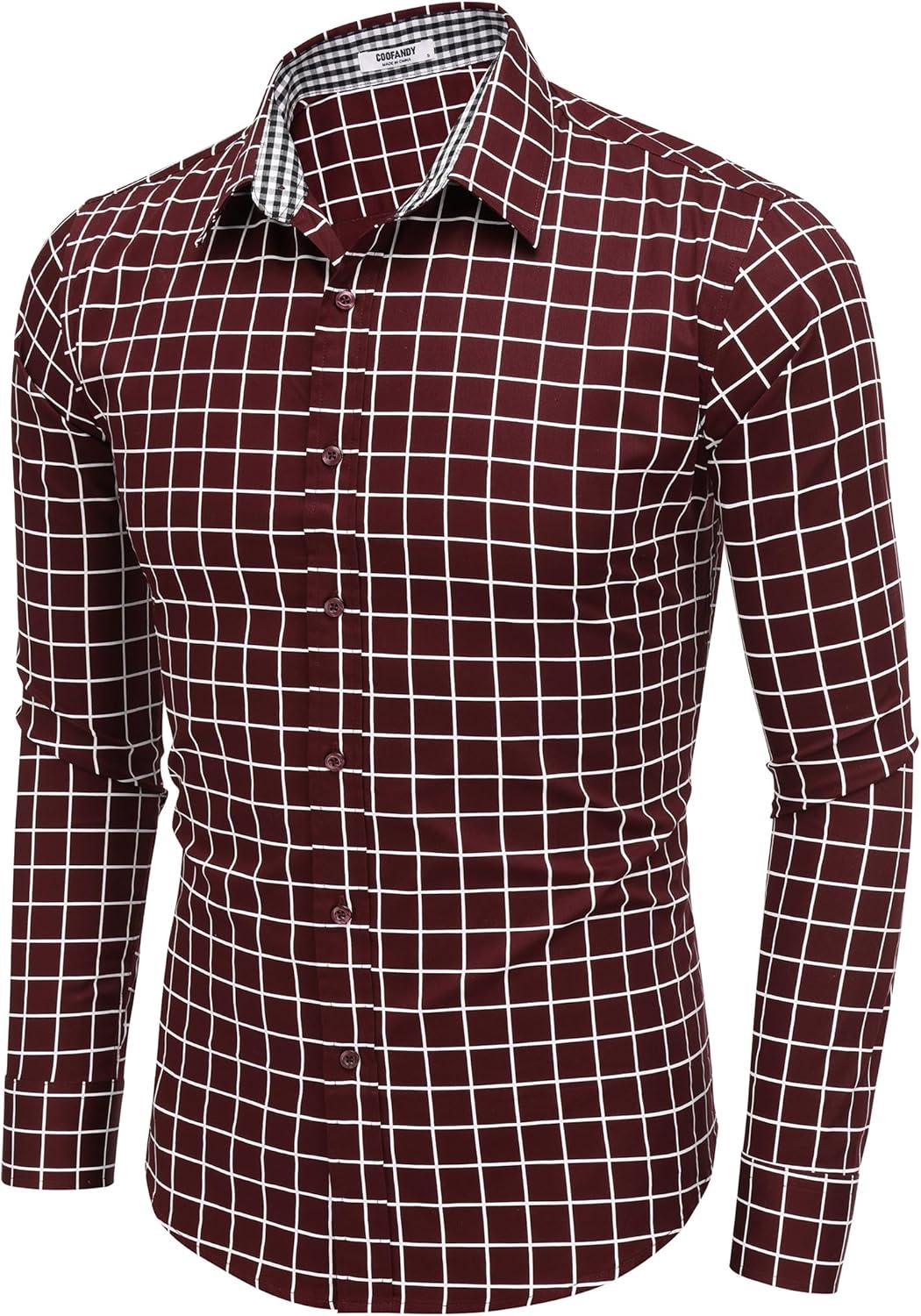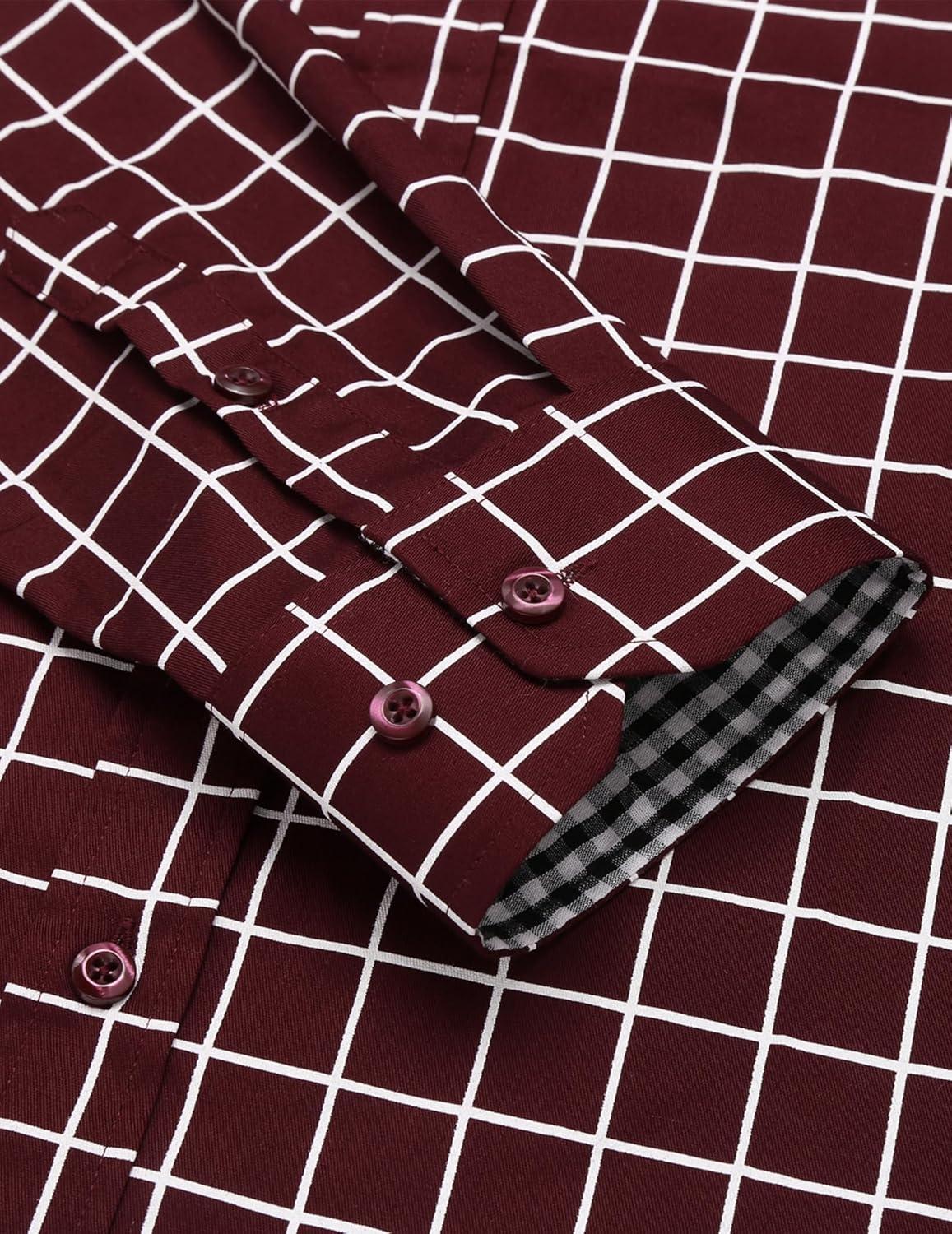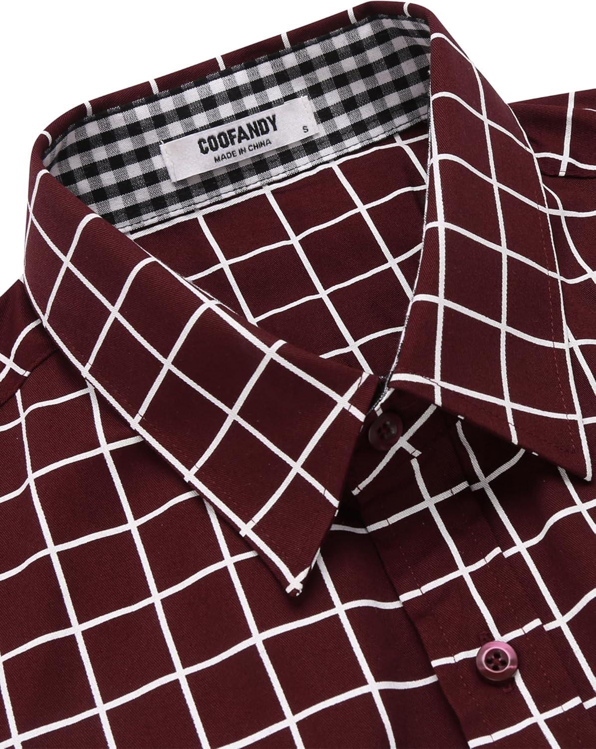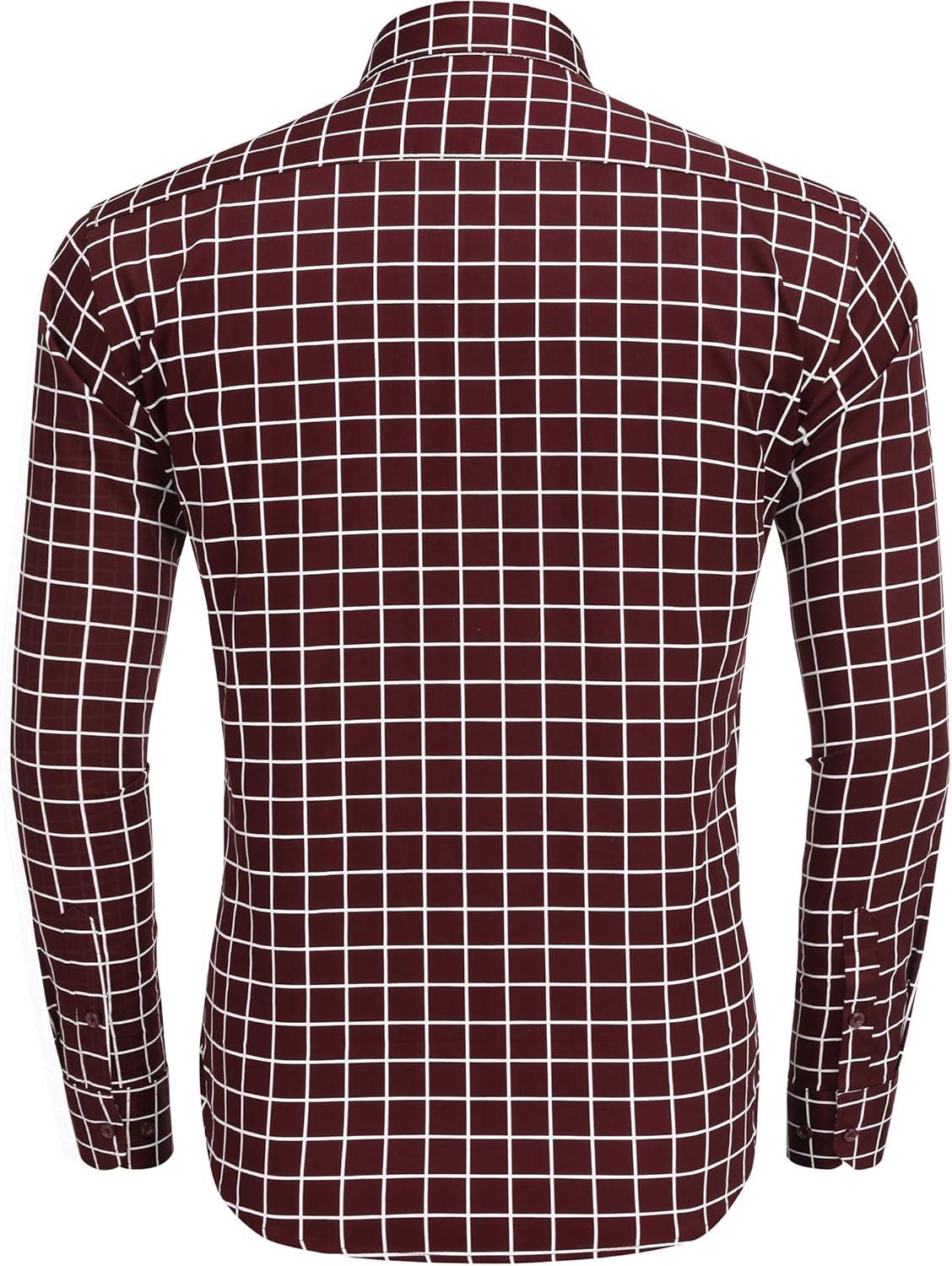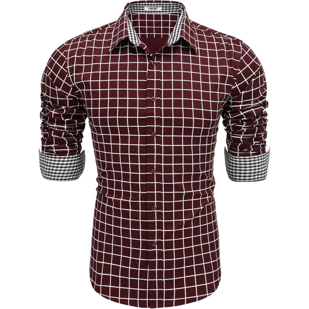 COOFANDY Men's Business Dress Shirt Long Sleeve Slim Fit Casual Button Down Shirt(Wine Red - Windowpane)
