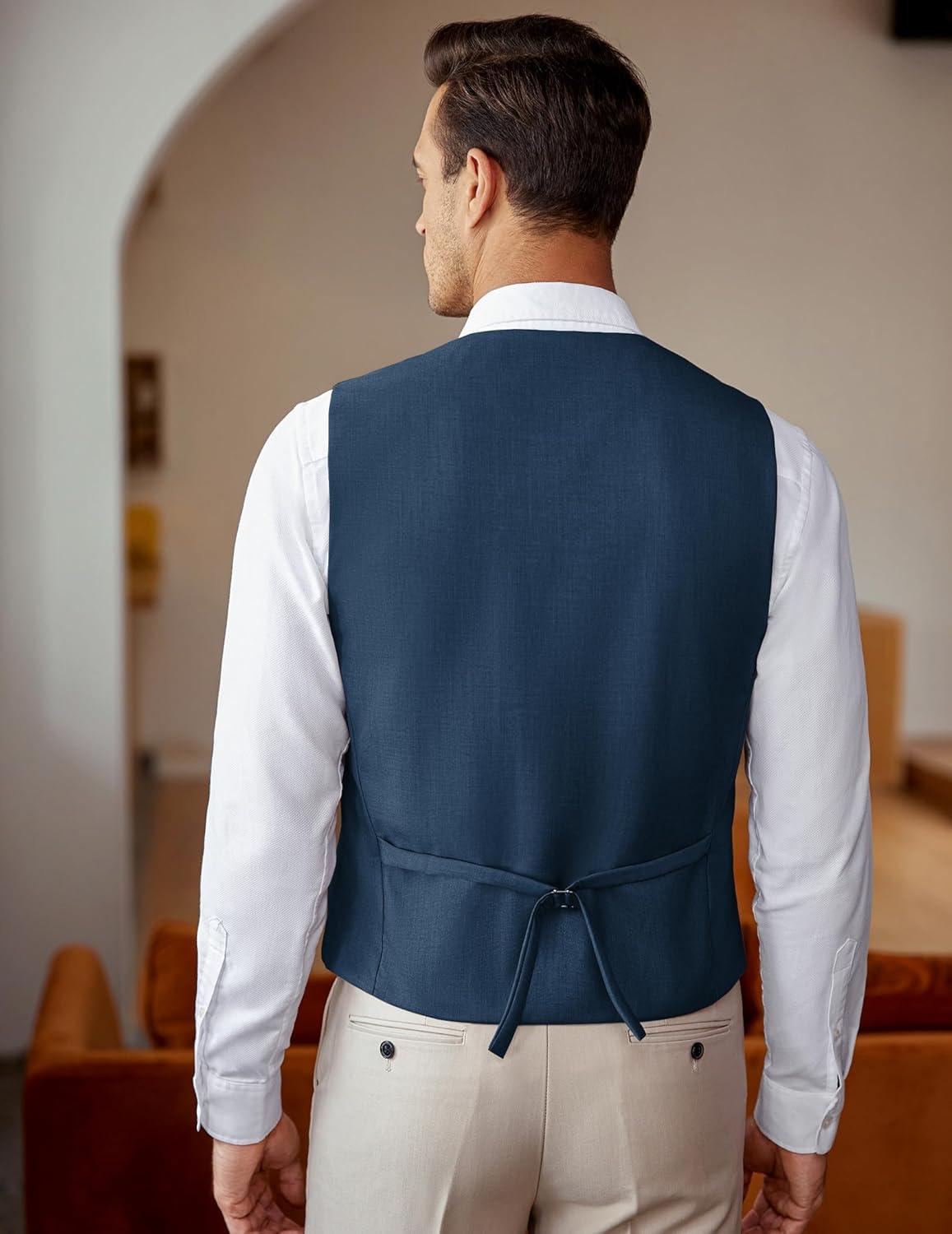 COOFANDY Men’s Business Suit Vest Slim Fit Dress Vest Wedding Waistcoat(Blue)