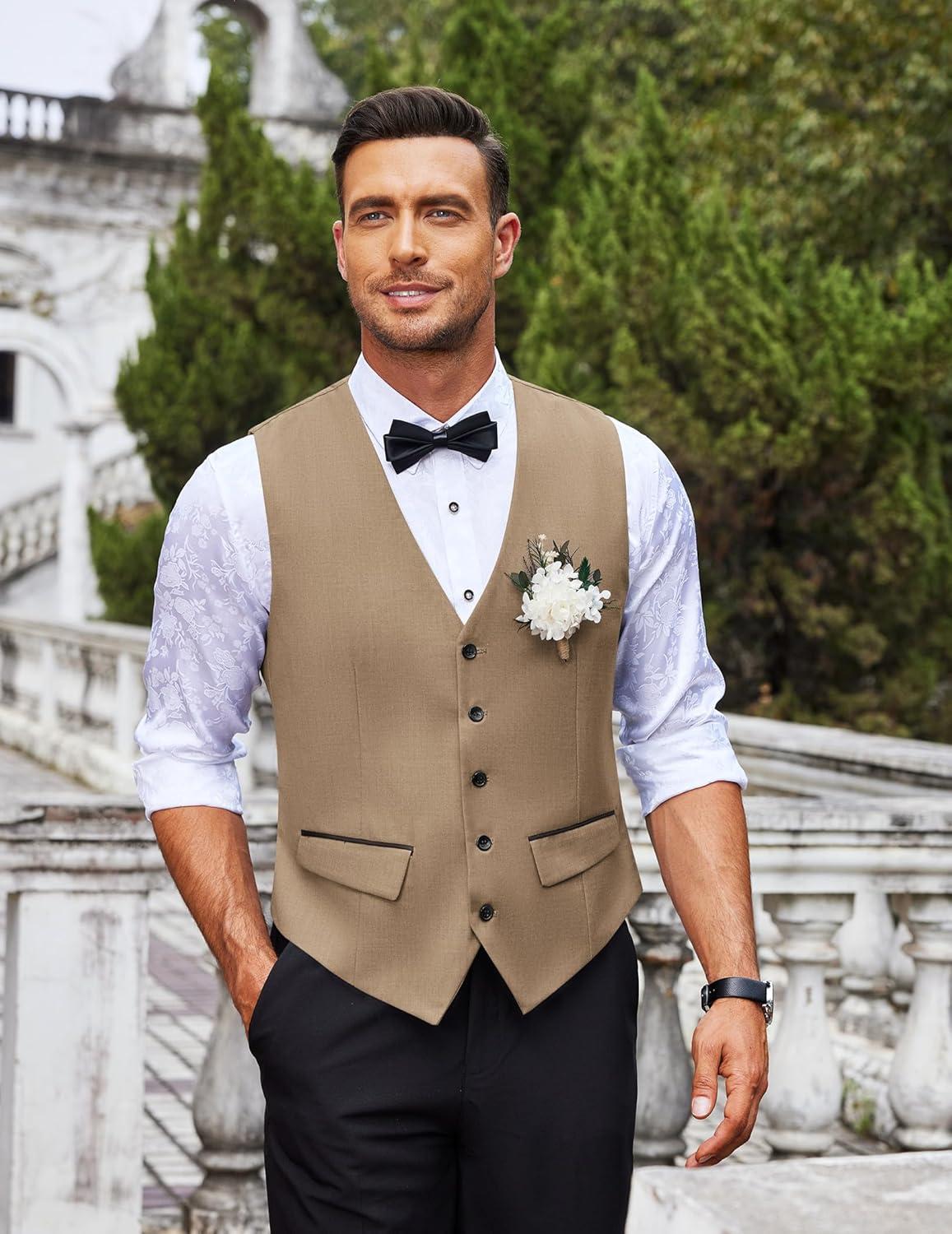 COOFANDY Men's Business Suit Vest Slim Fit Dress Vest Wedding Waistcoat(Khaki)