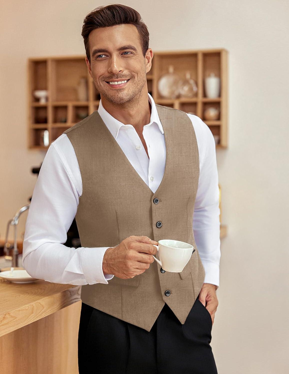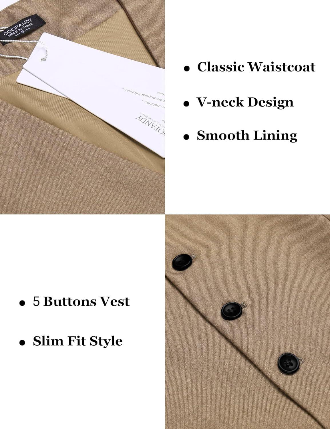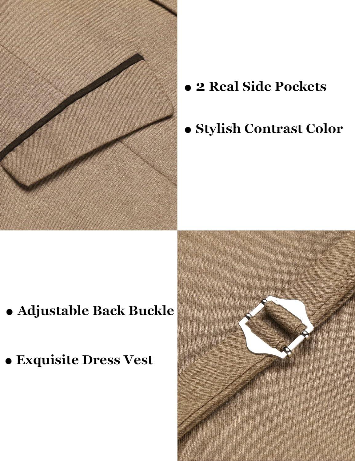 COOFANDY Men’s Business Suit Vest Slim Fit Dress Vest Wedding Waistcoat(Khaki)