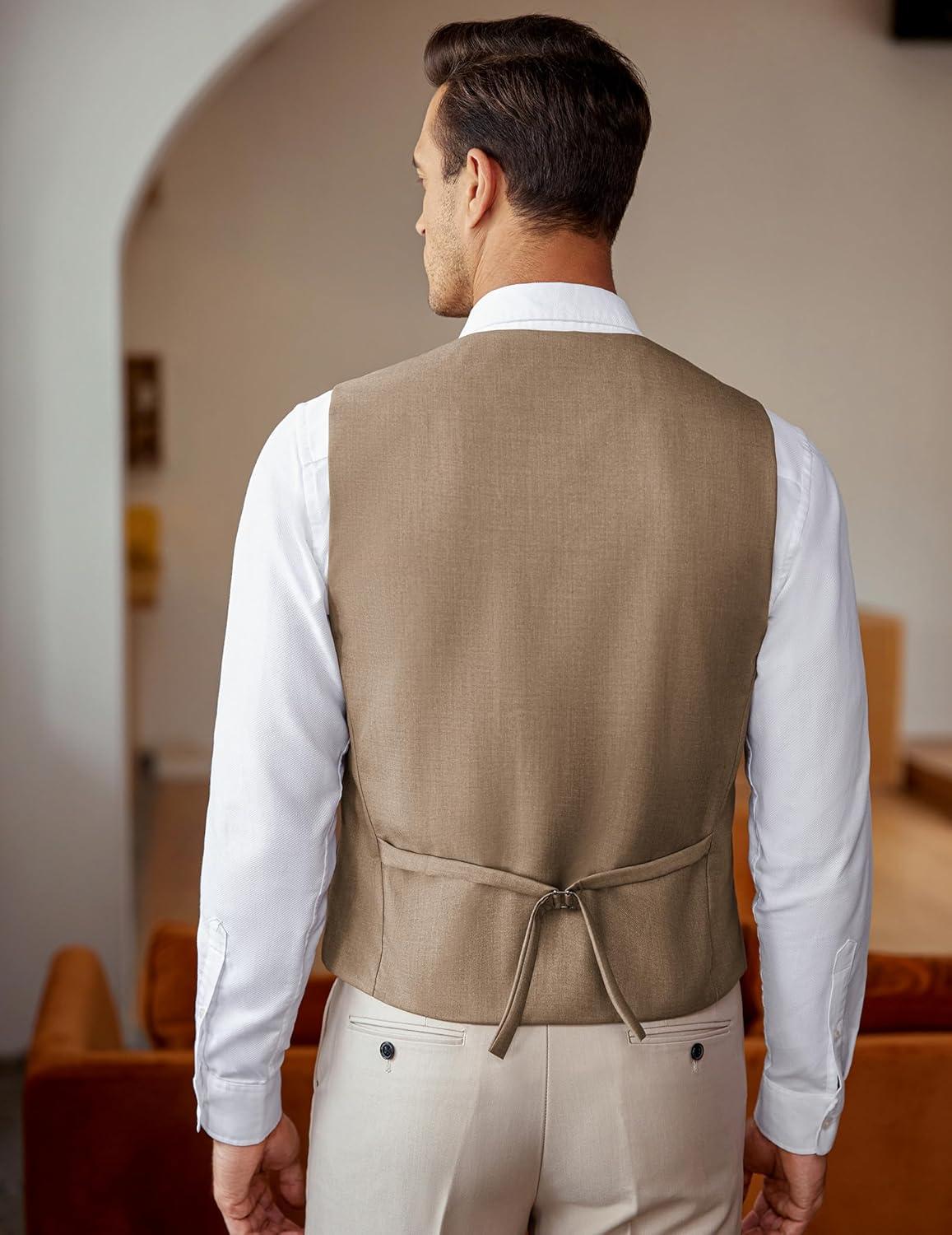 imageCOOFANDY Mens Business Suit Vest Slim Fit Dress Vest Wedding WaistcoatKhaki