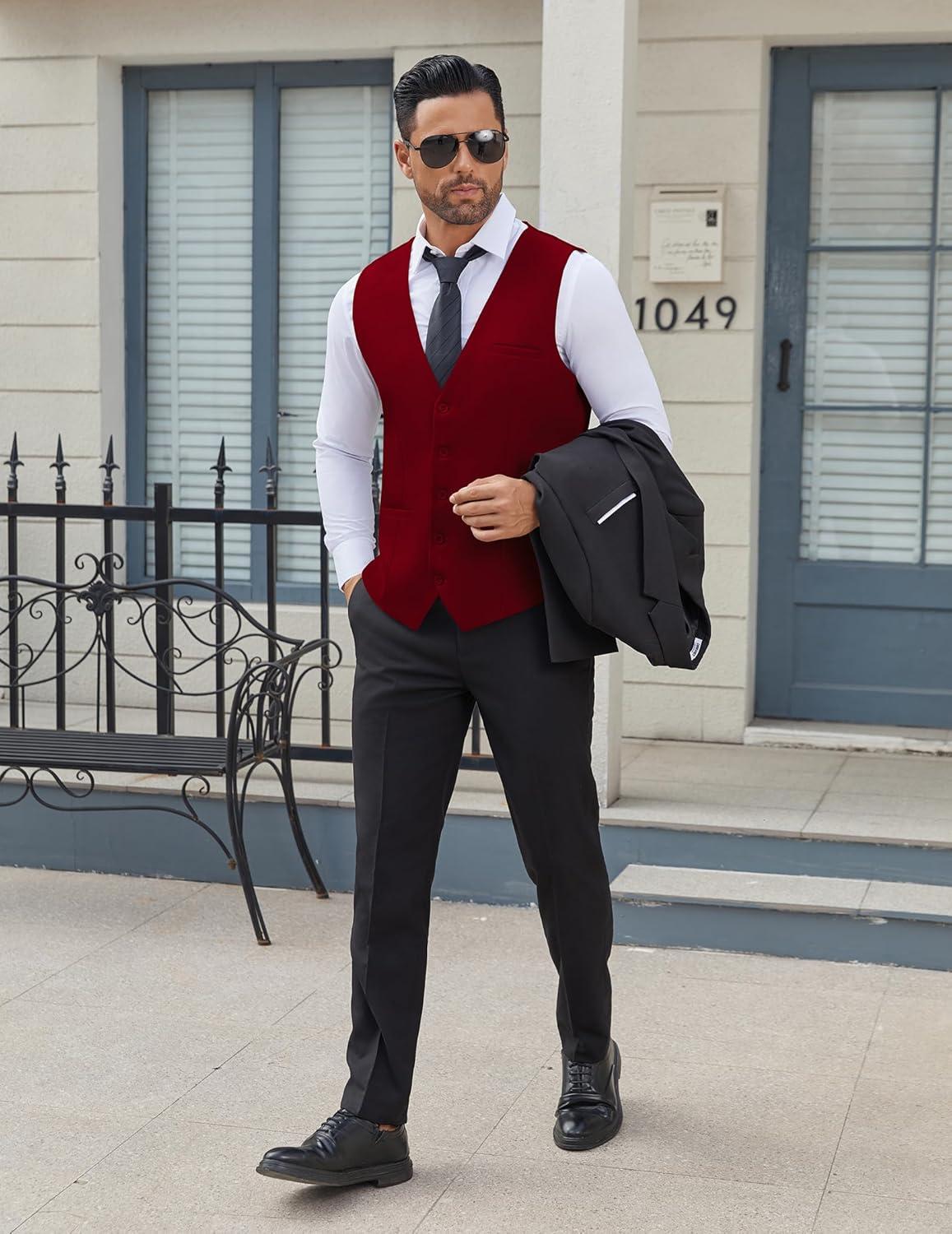COOFANDY Men's Business Suit Vests Slim Fit Formal Dress Waistcoat Groomsman Vest For Wedding(Wine Red)
