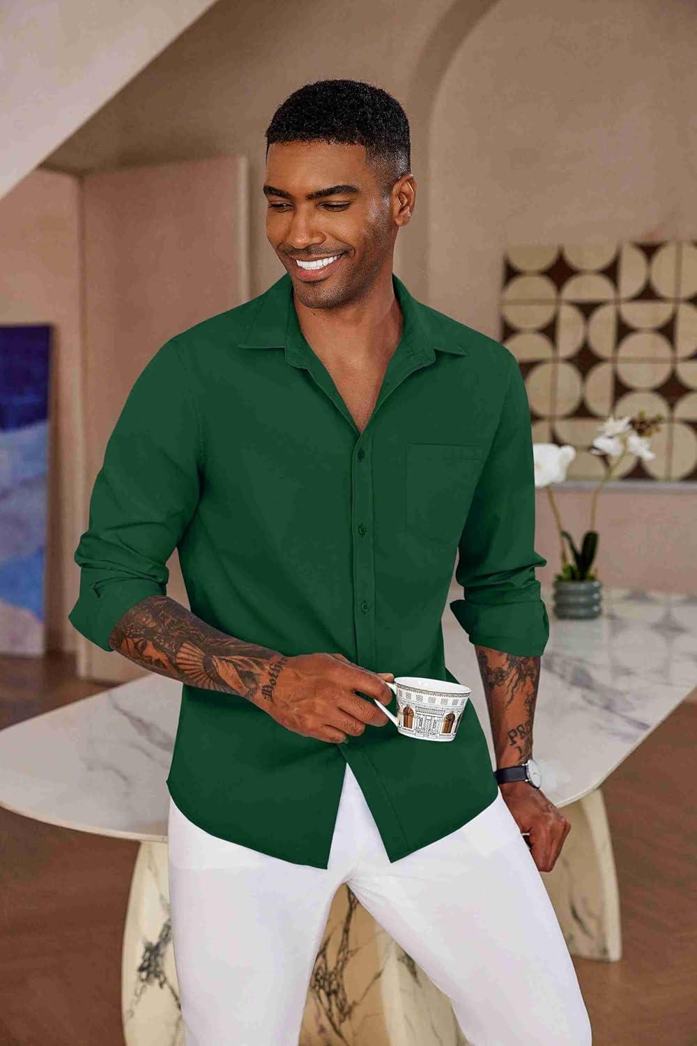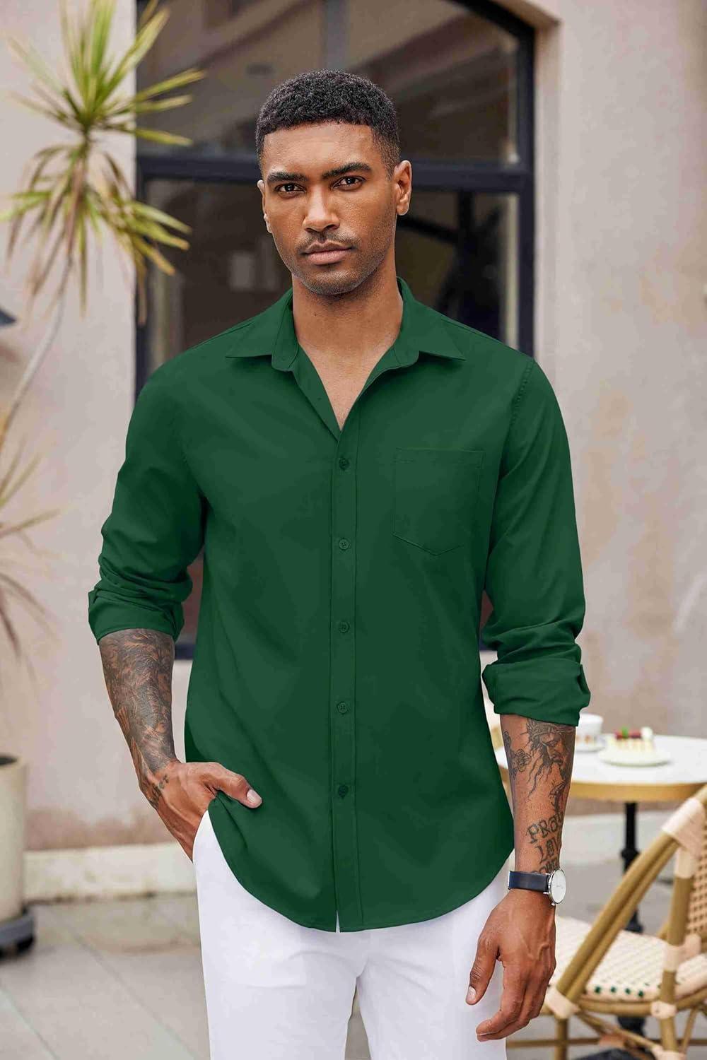 COOFANDY Men’s Button Down Long Sleeve Shirt Casual Untucked Dress Shirt Regular Fit Wedding Shirts(Evergreen)