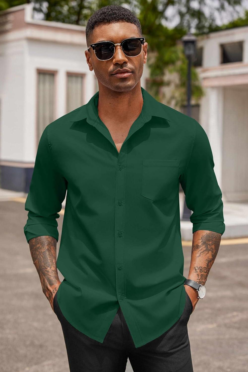 COOFANDY Men's Button Down Long Sleeve Shirt Casual Untucked Dress Shirt Regular Fit Wedding Shirts(Evergreen)