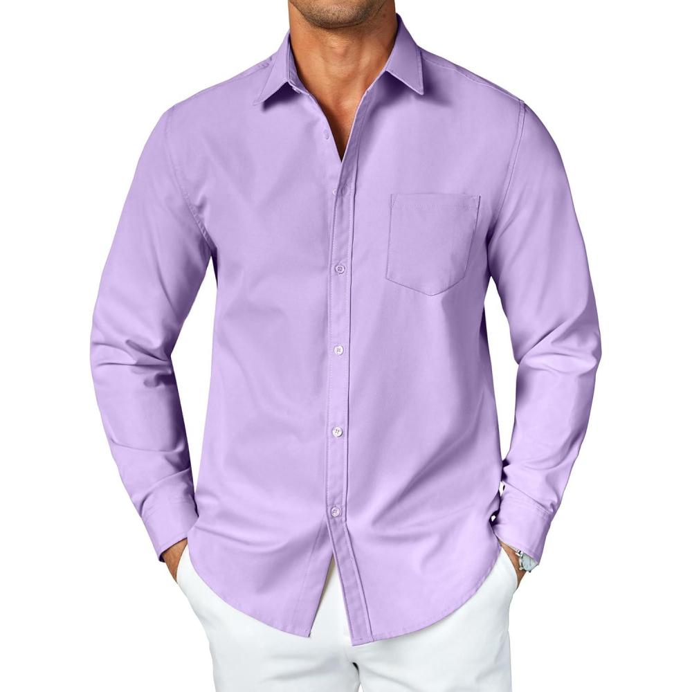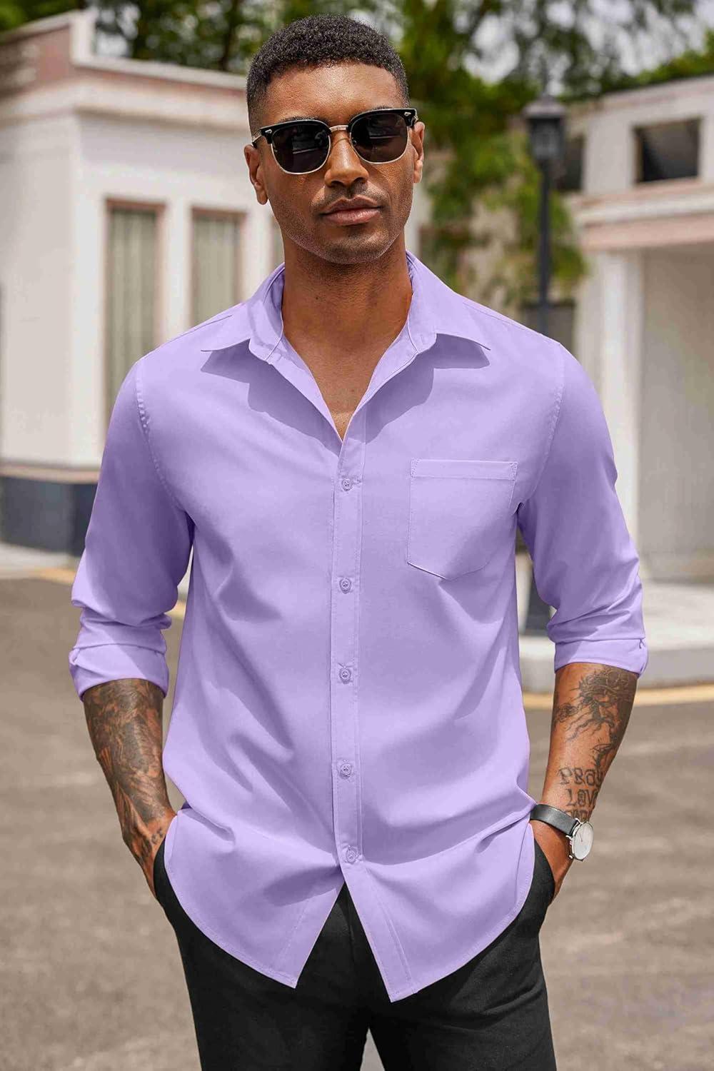 COOFANDY Men's Button Down Long Sleeve Shirt Casual Untucked Dress Shirt Regular Fit Wedding Shirts(Purple Rose)