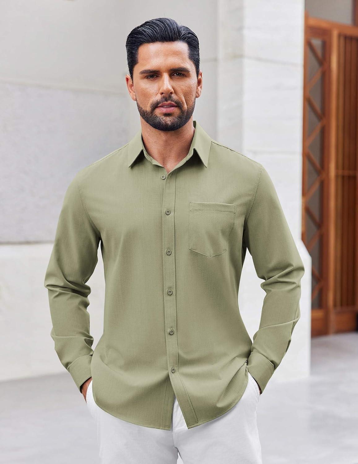 COOFANDY Mens Button Down Shirt Casual Untucked Shirts Long Sleeve Dress Shirt with Pocket(Army Green)