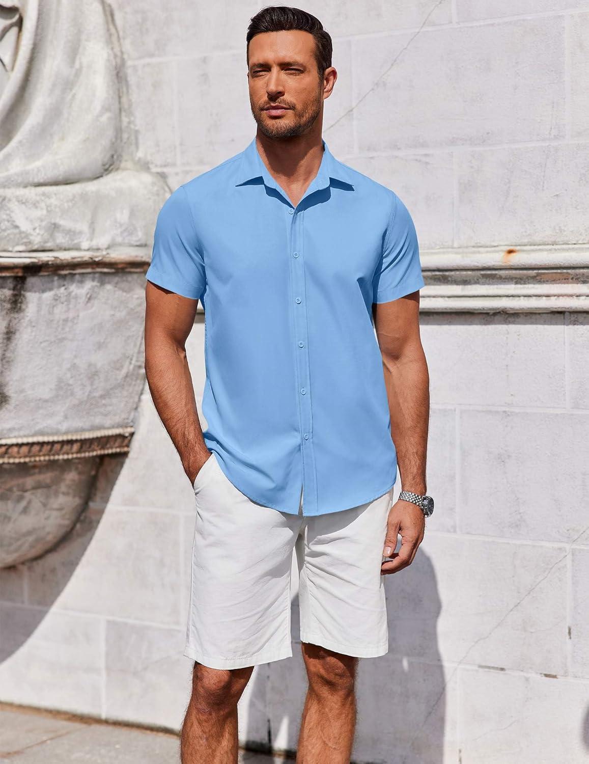 COOFANDY Men’s Button Down Shirt Short Sleeve Casual Shirt for Men Summer Business Casual Dress Shirt(Clear Blue)