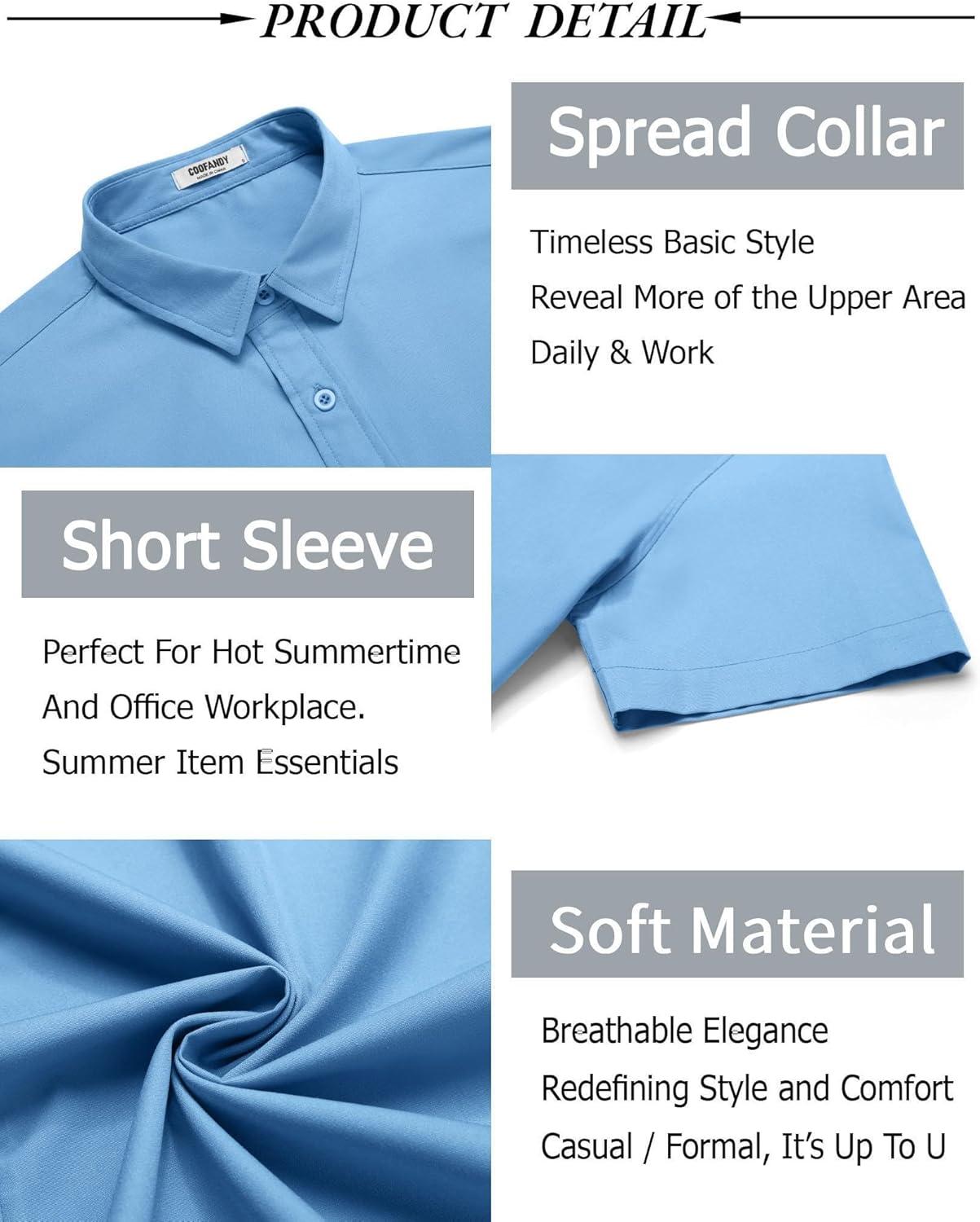 COOFANDY Men's Button Down Shirt Short Sleeve Casual Shirt for Men Summer Business Casual Dress Shirt(Blue)