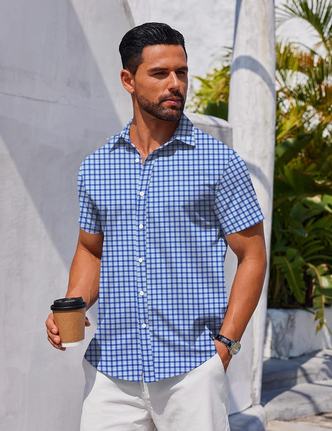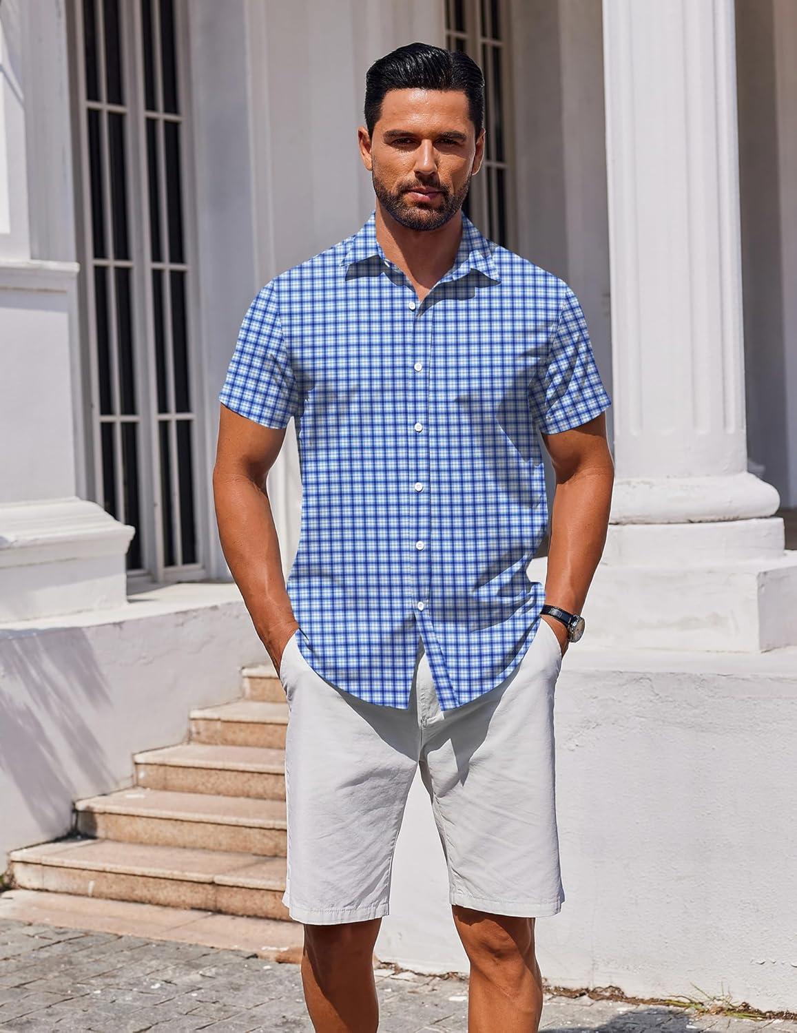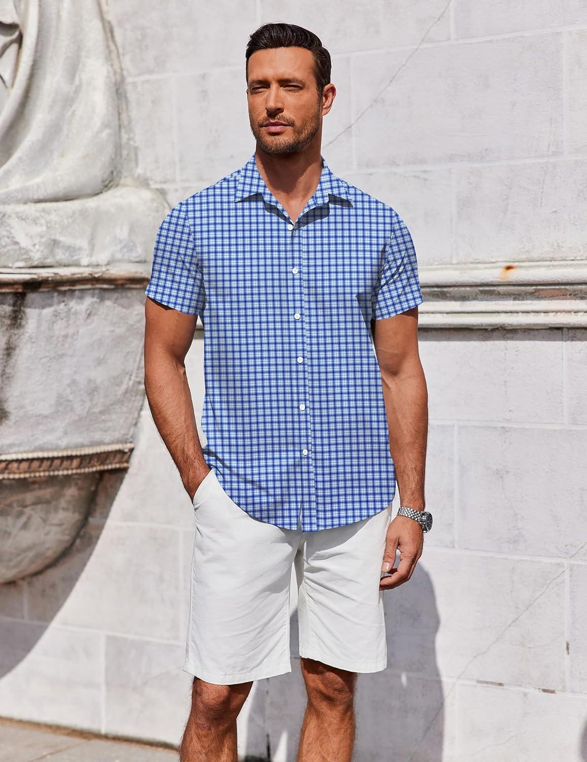 COOFANDY Men's Button Down Shirt Short Sleeve Casual Shirt for Men Summer Business Casual Dress Shirt(Gw511)
