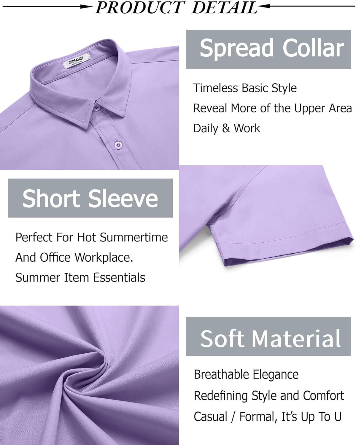 COOFANDY Men's Button Down Shirt Short Sleeve Casual Shirt for Men Summer Business Casual Dress Shirt(Lilac)