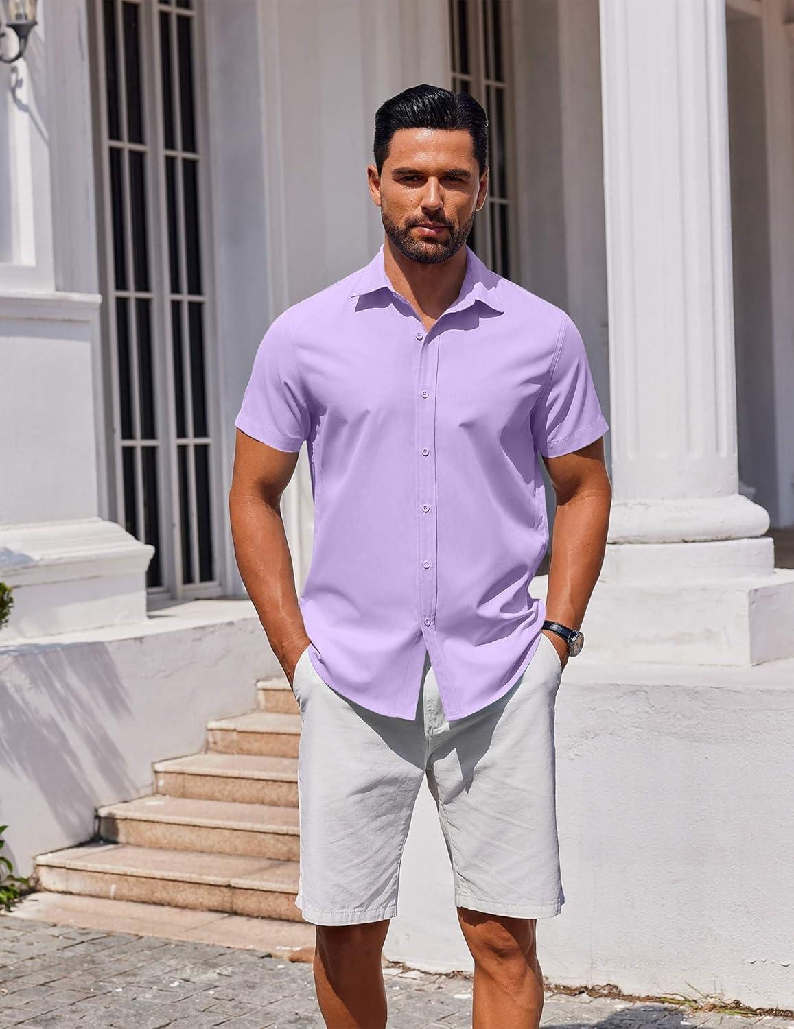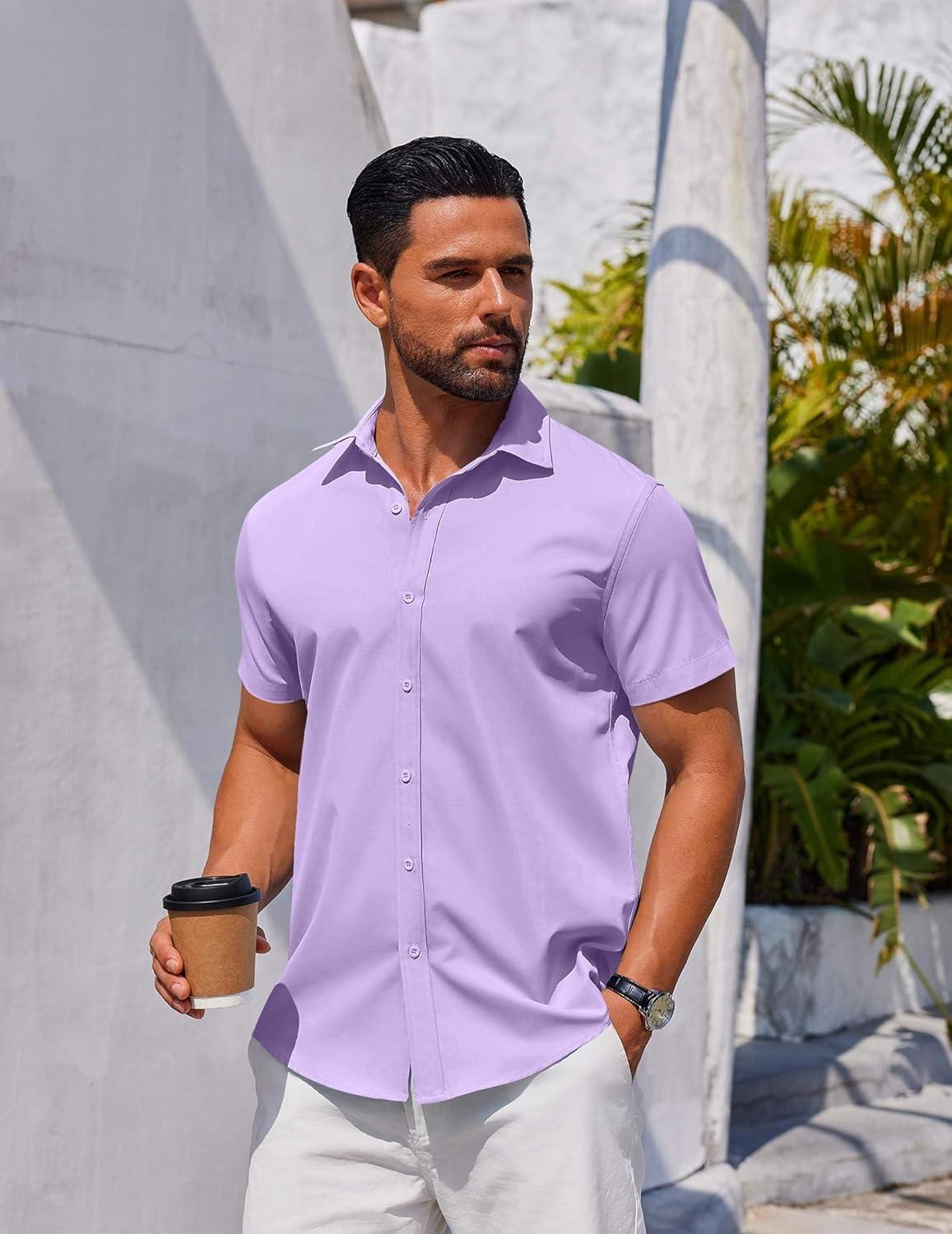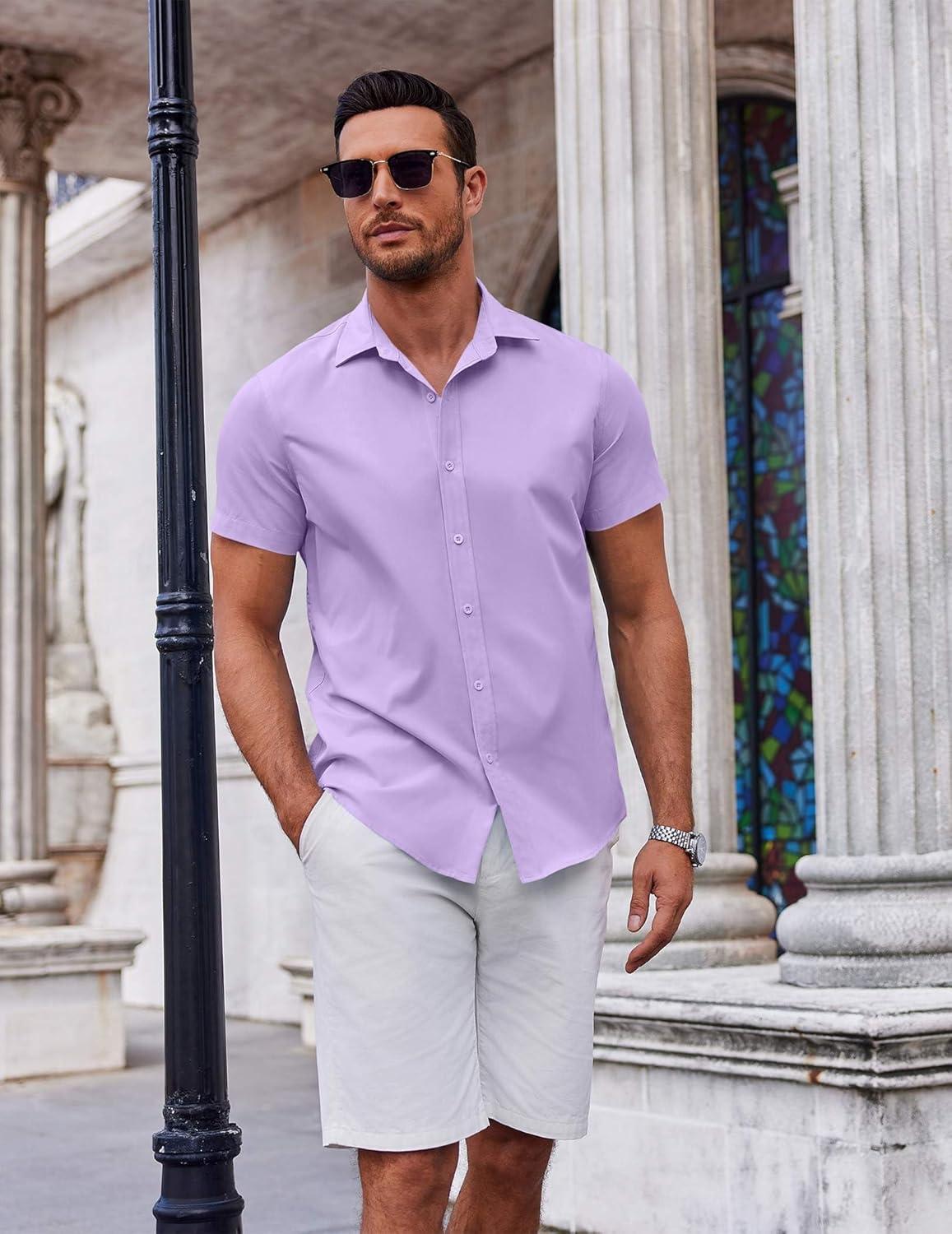 COOFANDY Men’s Button Down Shirt Short Sleeve Casual Shirt for Men Summer Business Casual Dress Shirt(Lilac)