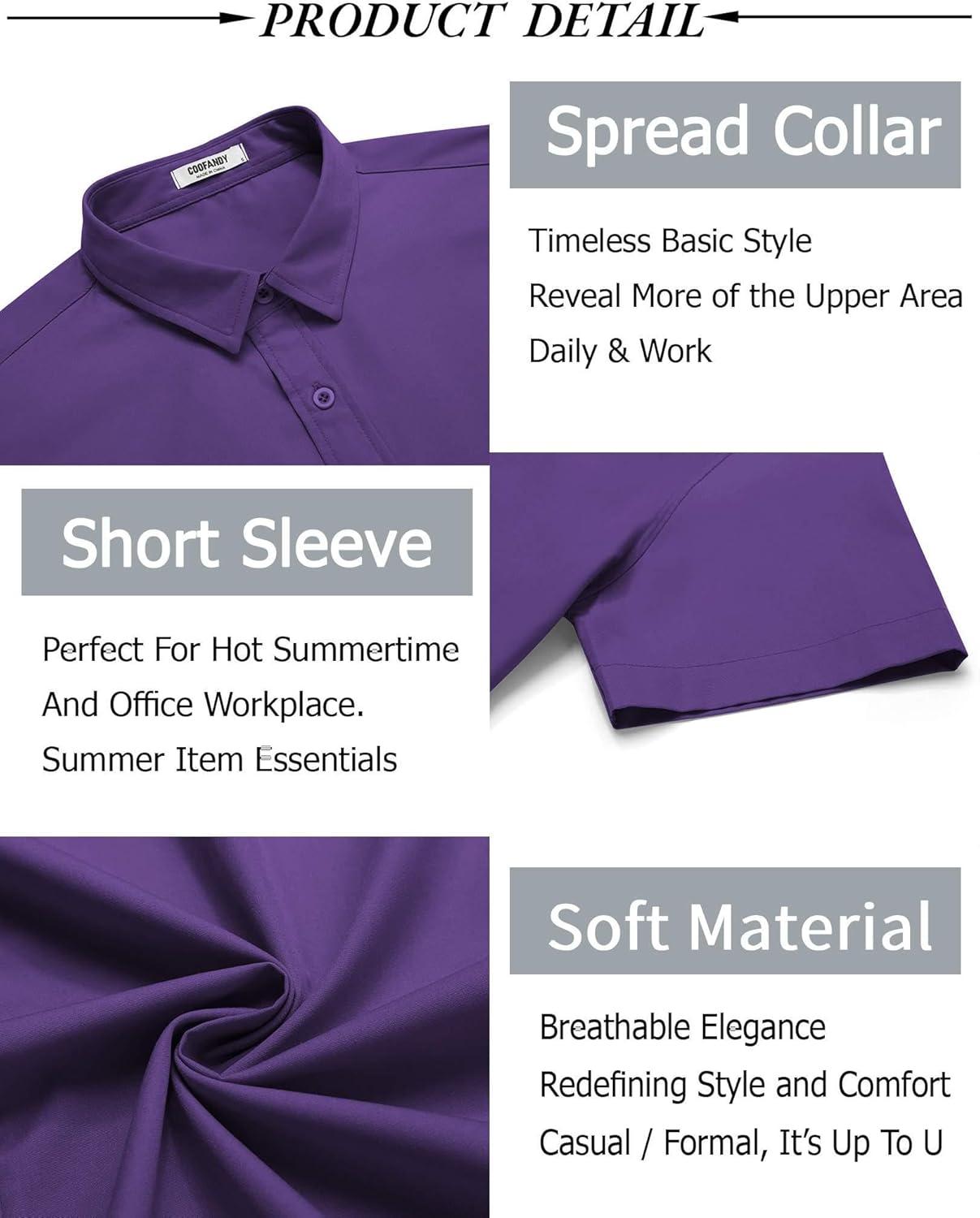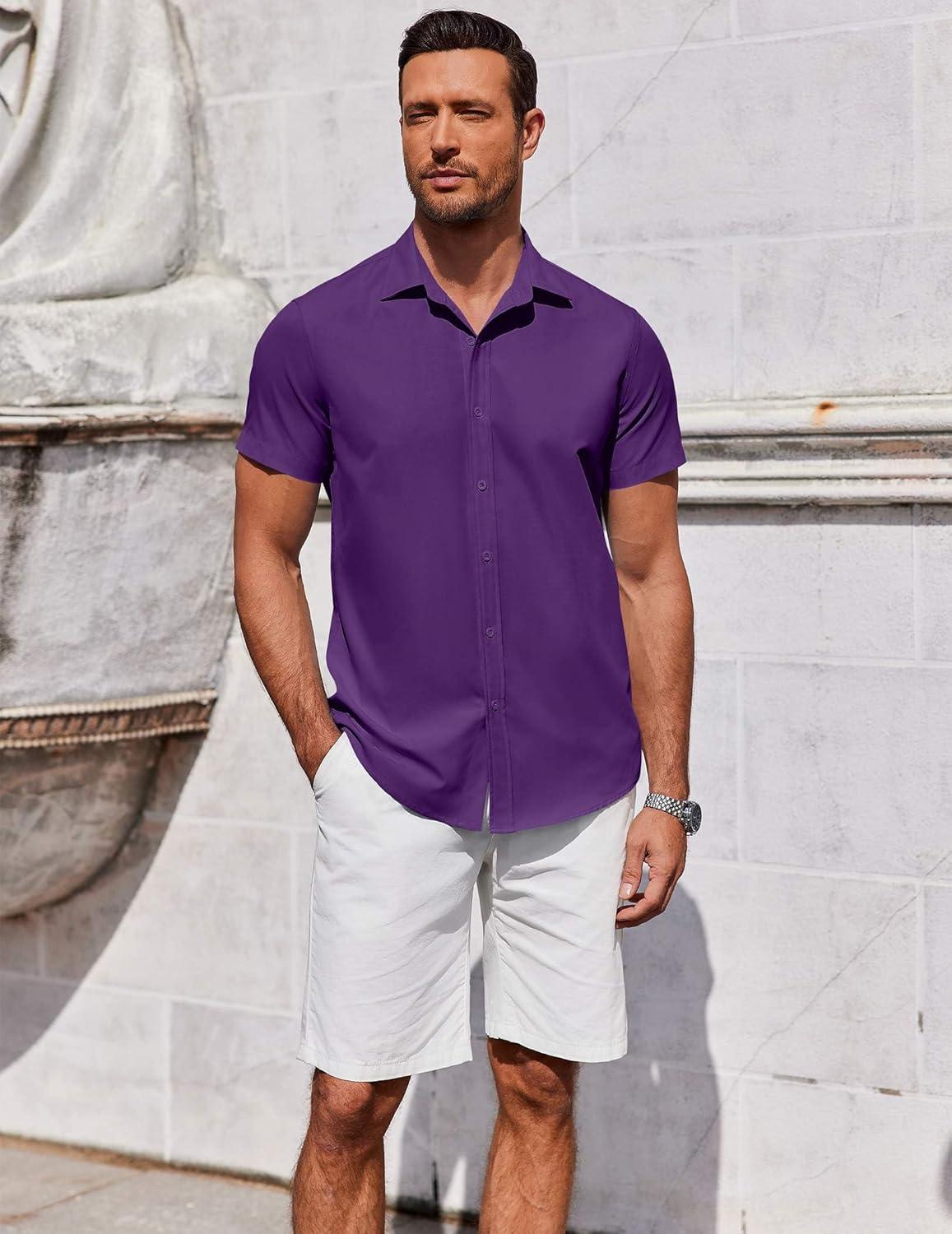 COOFANDY Men’s Button Down Shirt Short Sleeve Casual Shirt for Men Summer Business Casual Dress Shirt(Violet)