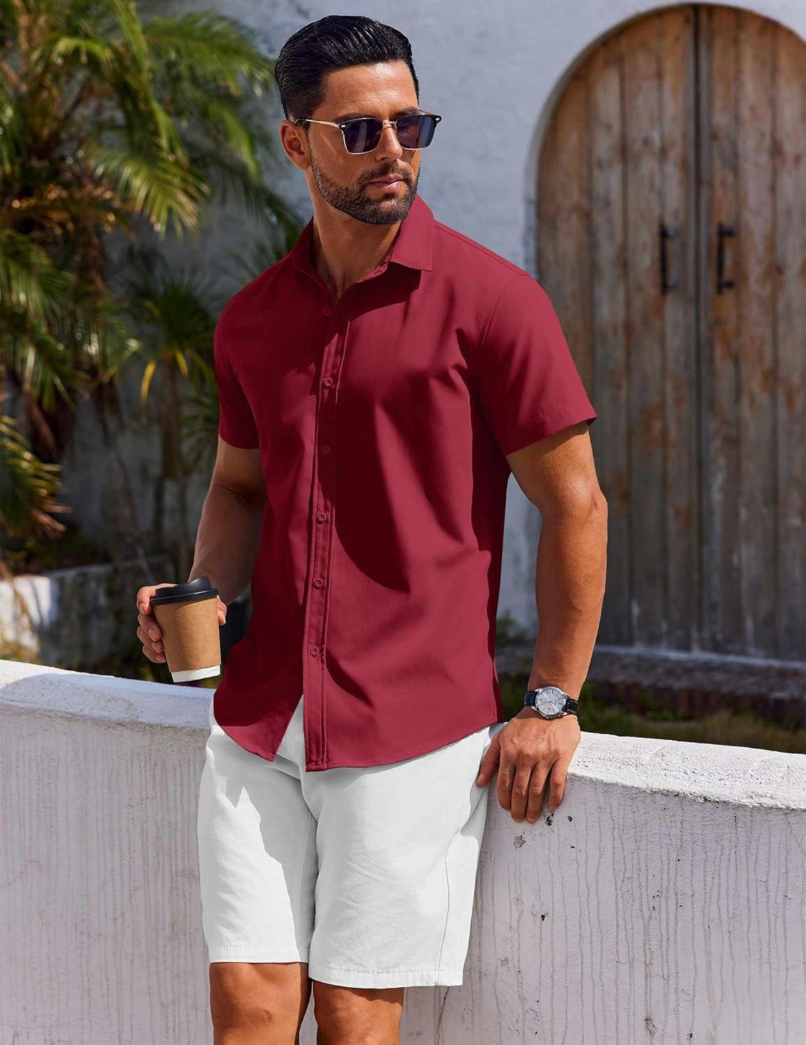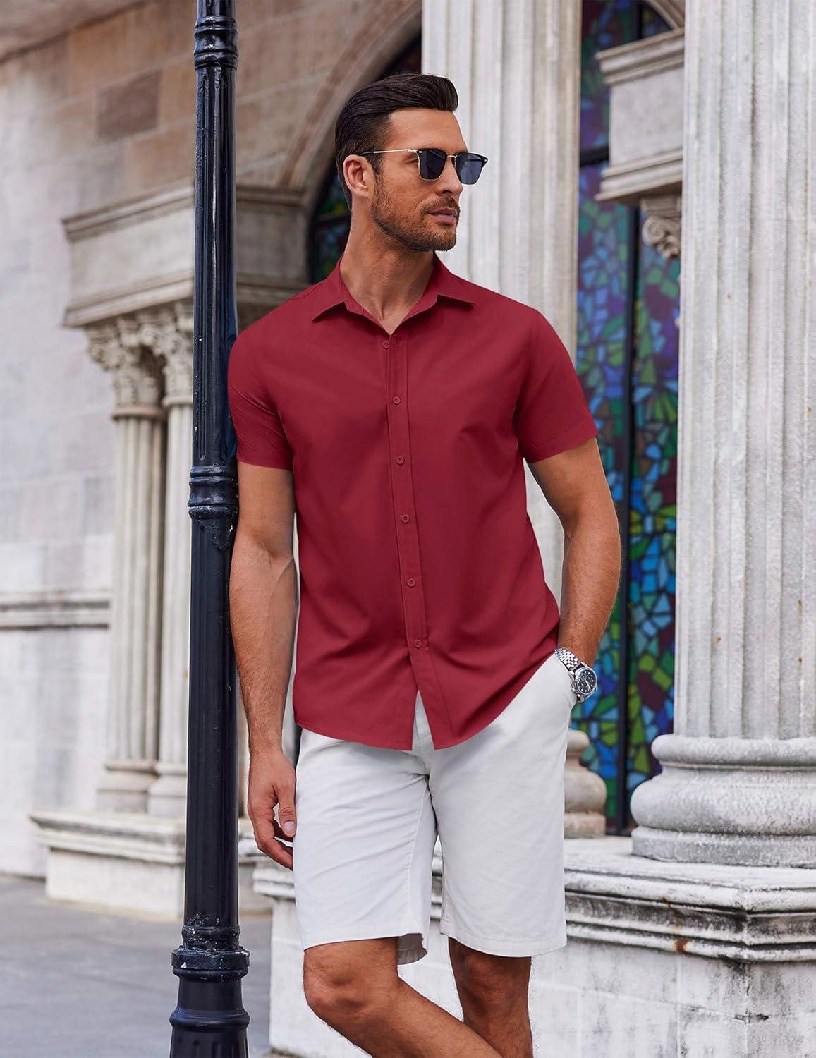 COOFANDY Men’s Button Down Shirt Short Sleeve Casual Shirt for Men Summer Business Casual Dress Shirt(Wine Red)