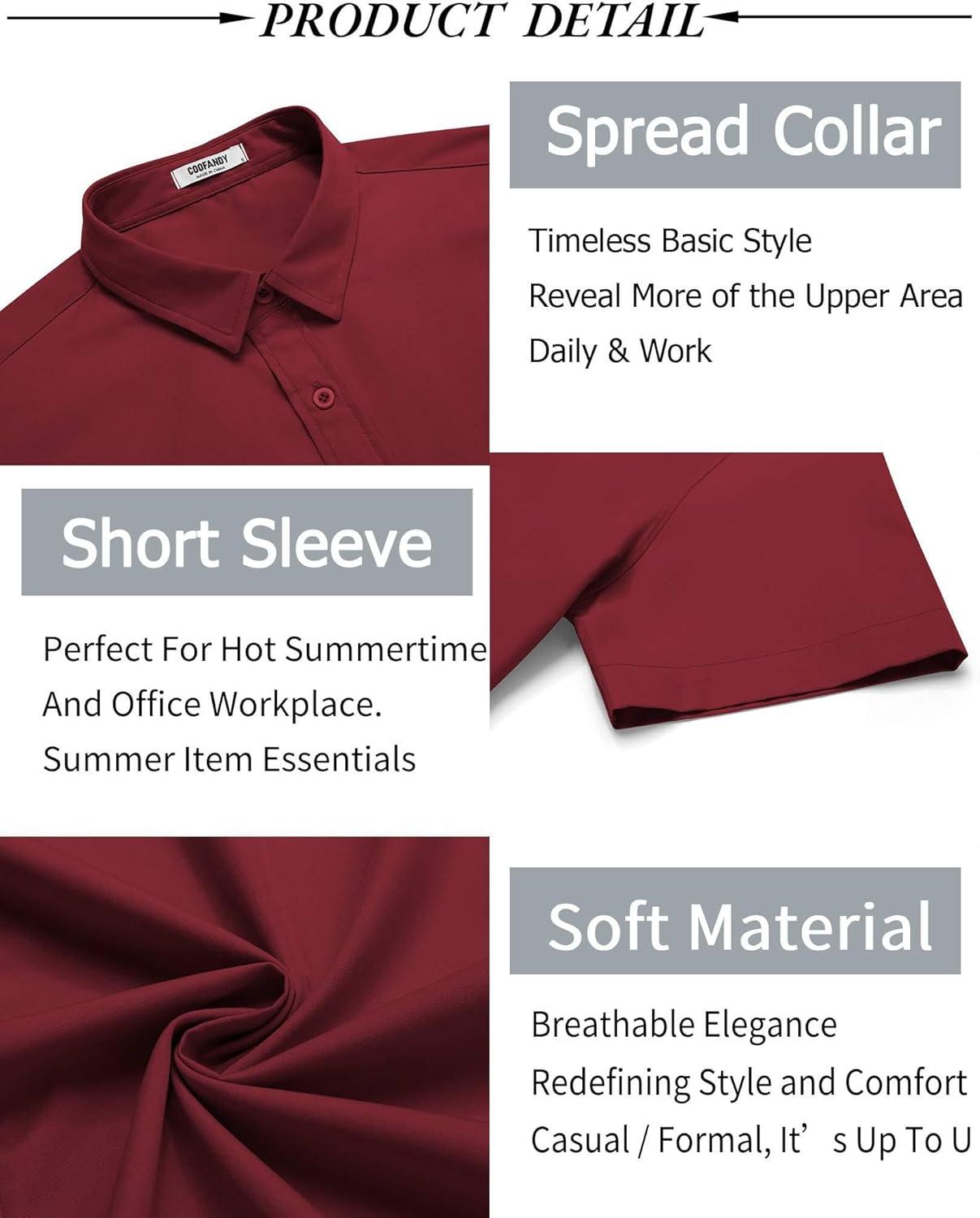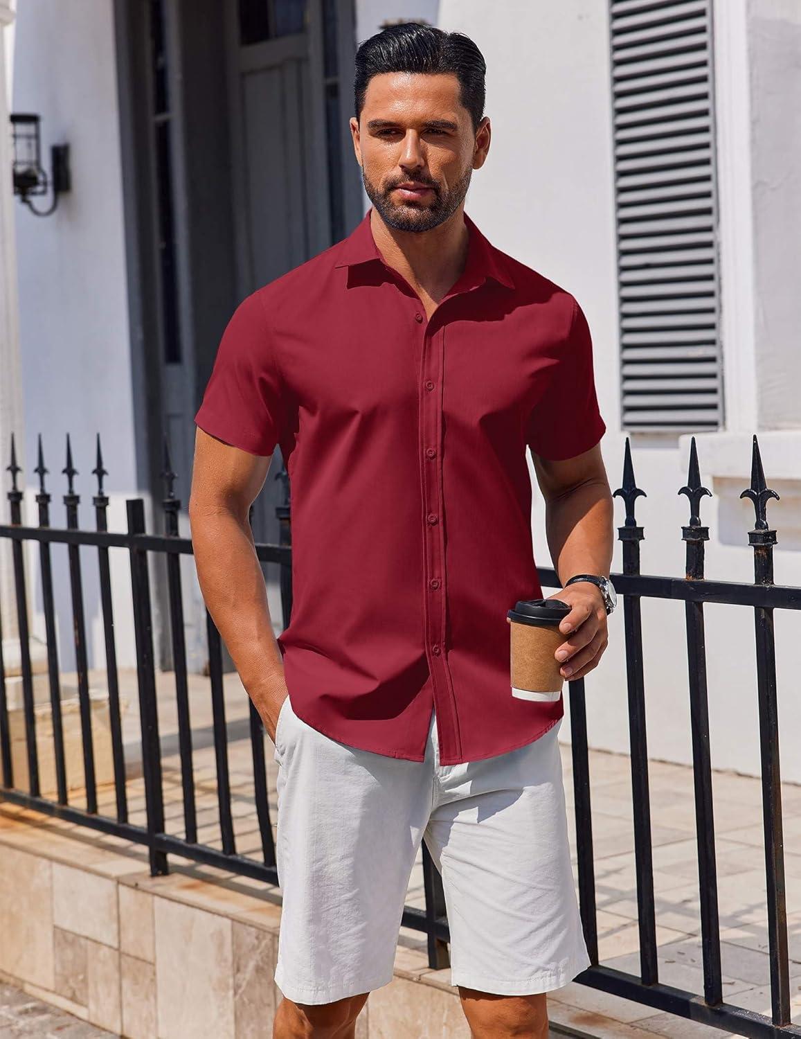 COOFANDY Men's Button Down Shirt Short Sleeve Casual Shirt for Men Summer Business Casual Dress Shirt(Wine Red)