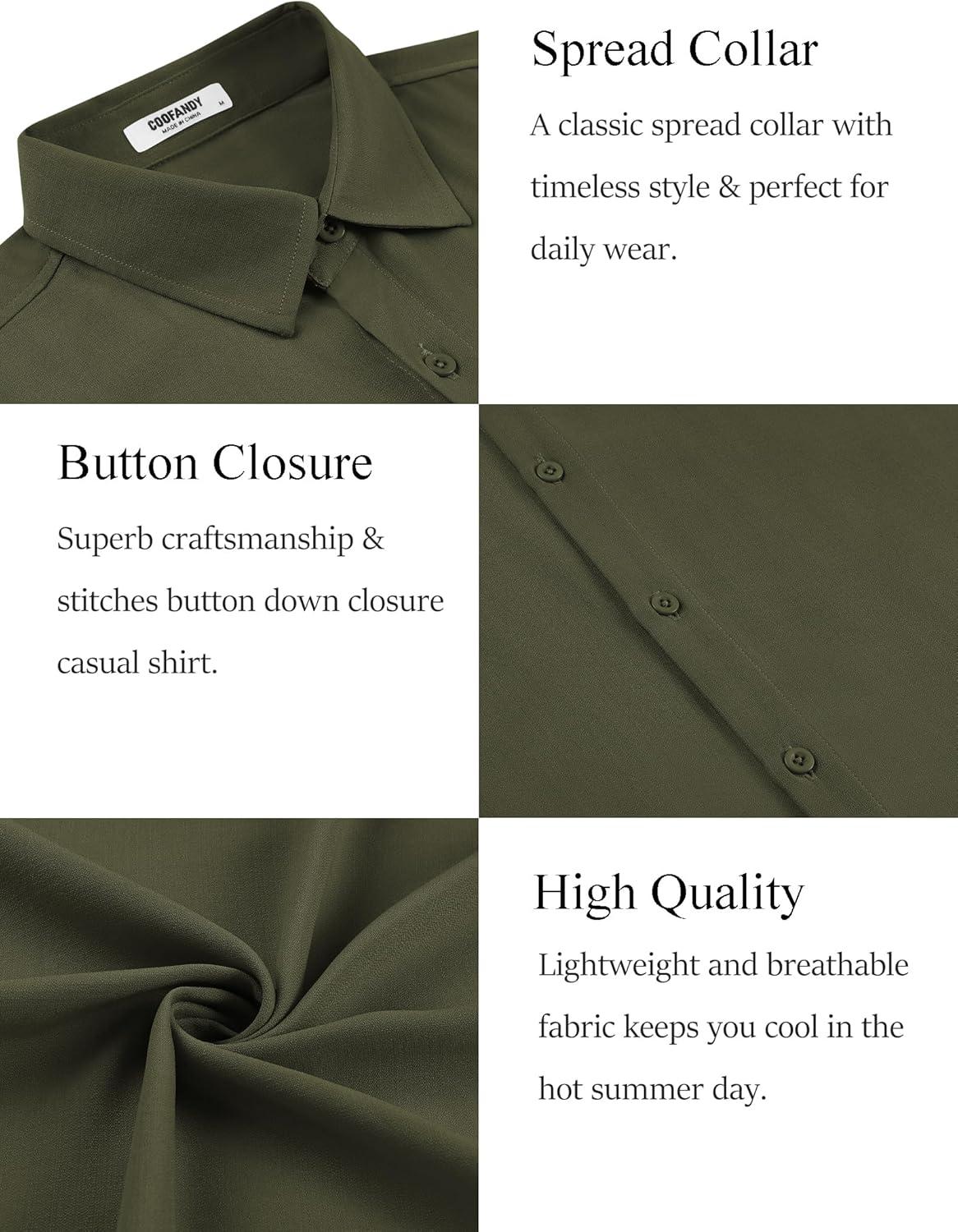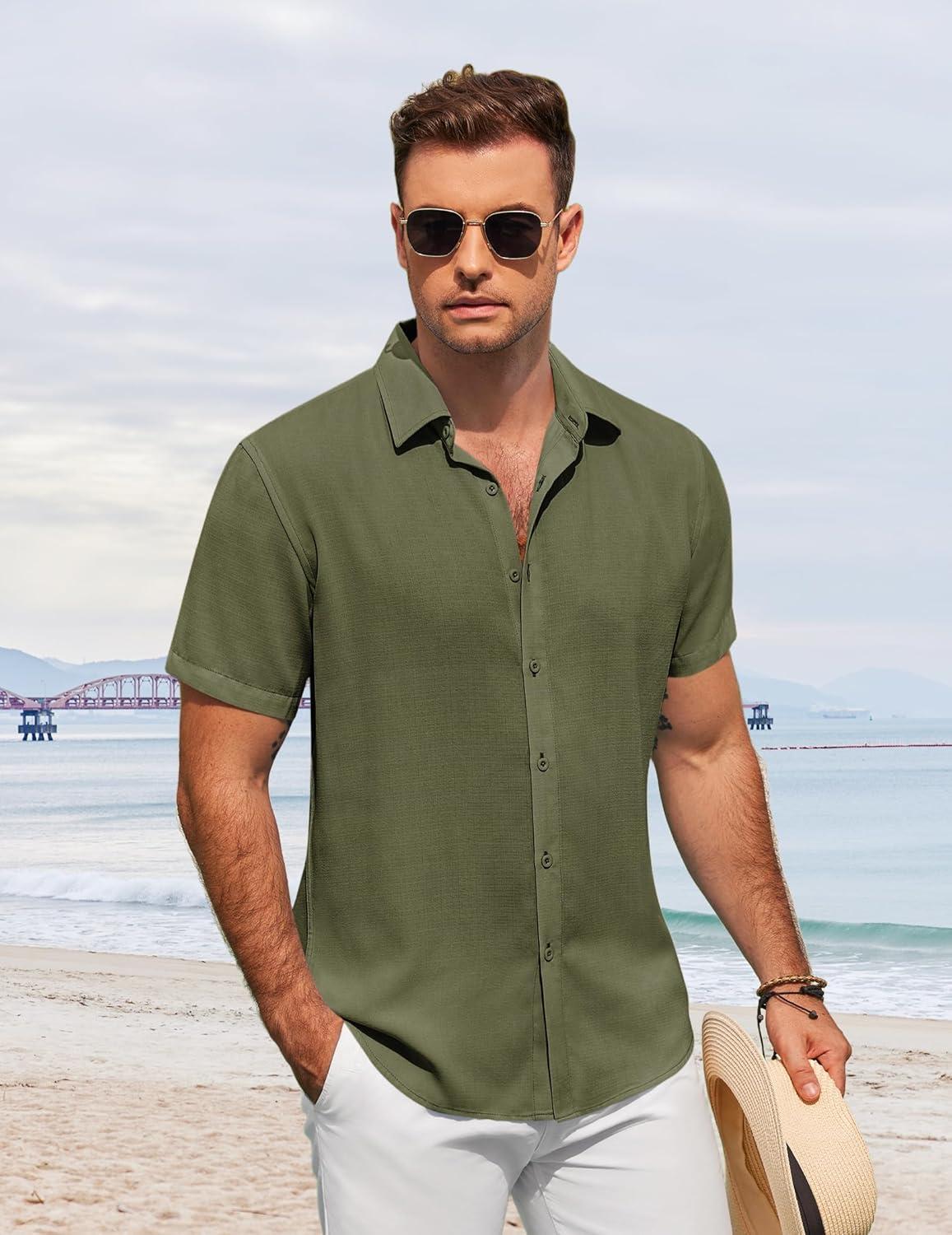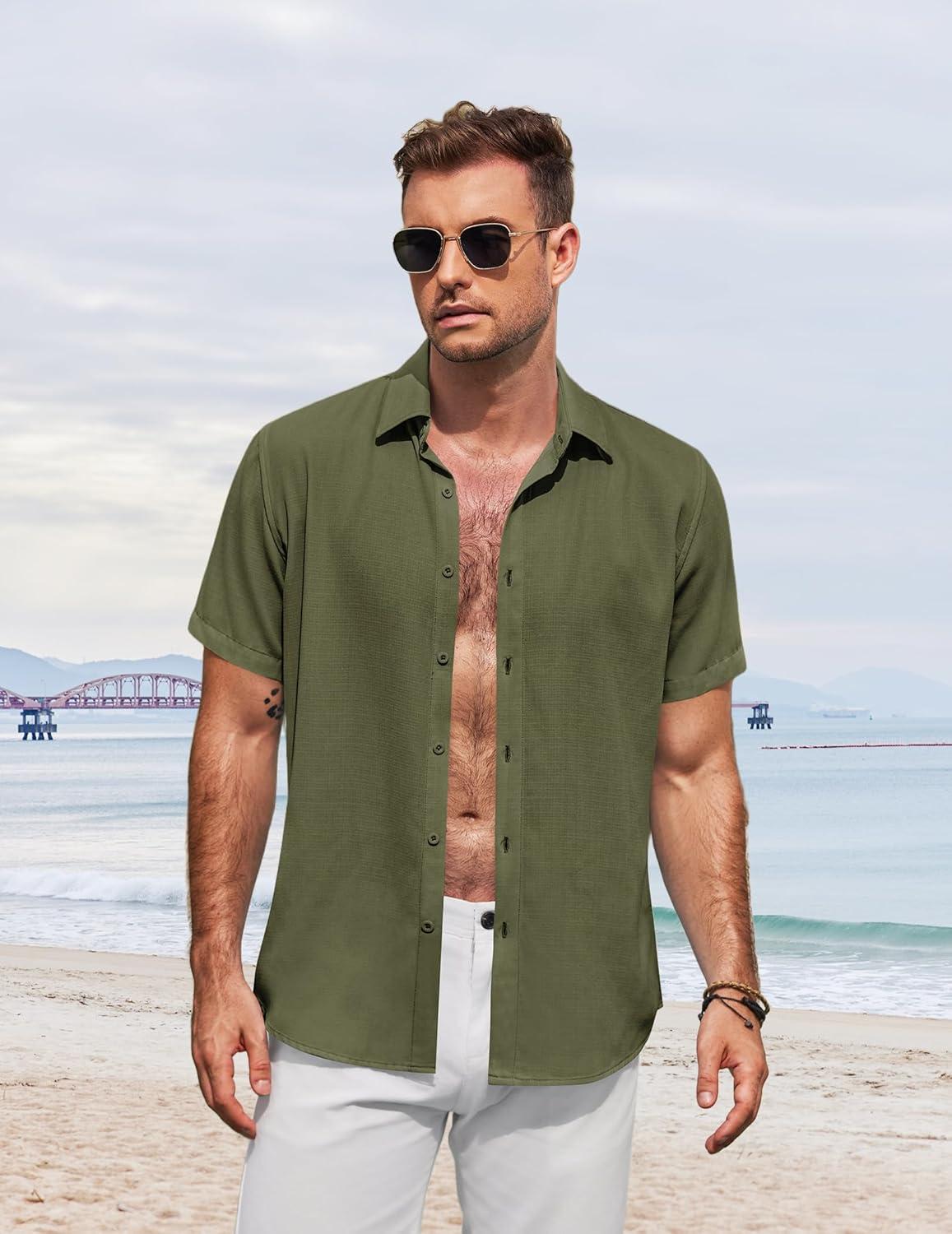 COOFANDY Men's Button Down Shirt Short Sleeve Casual Shirts for Summer Beach Vacation Shirts(Army Green)