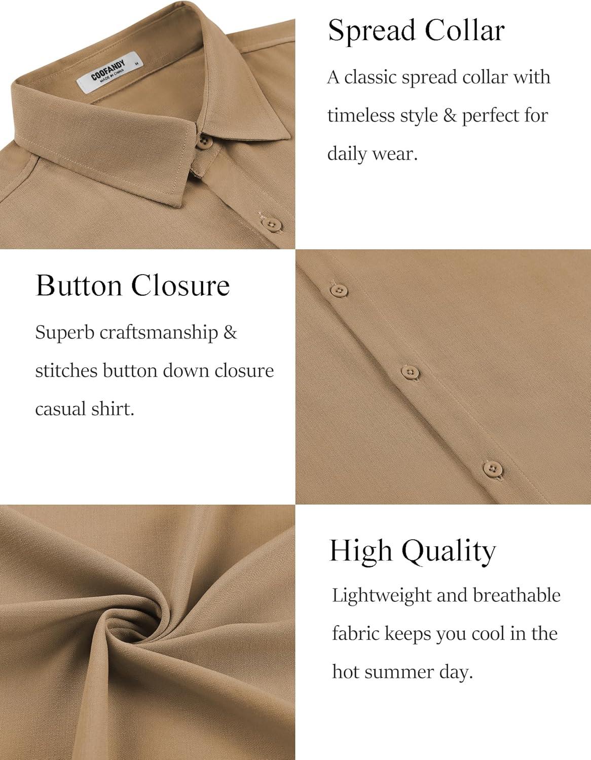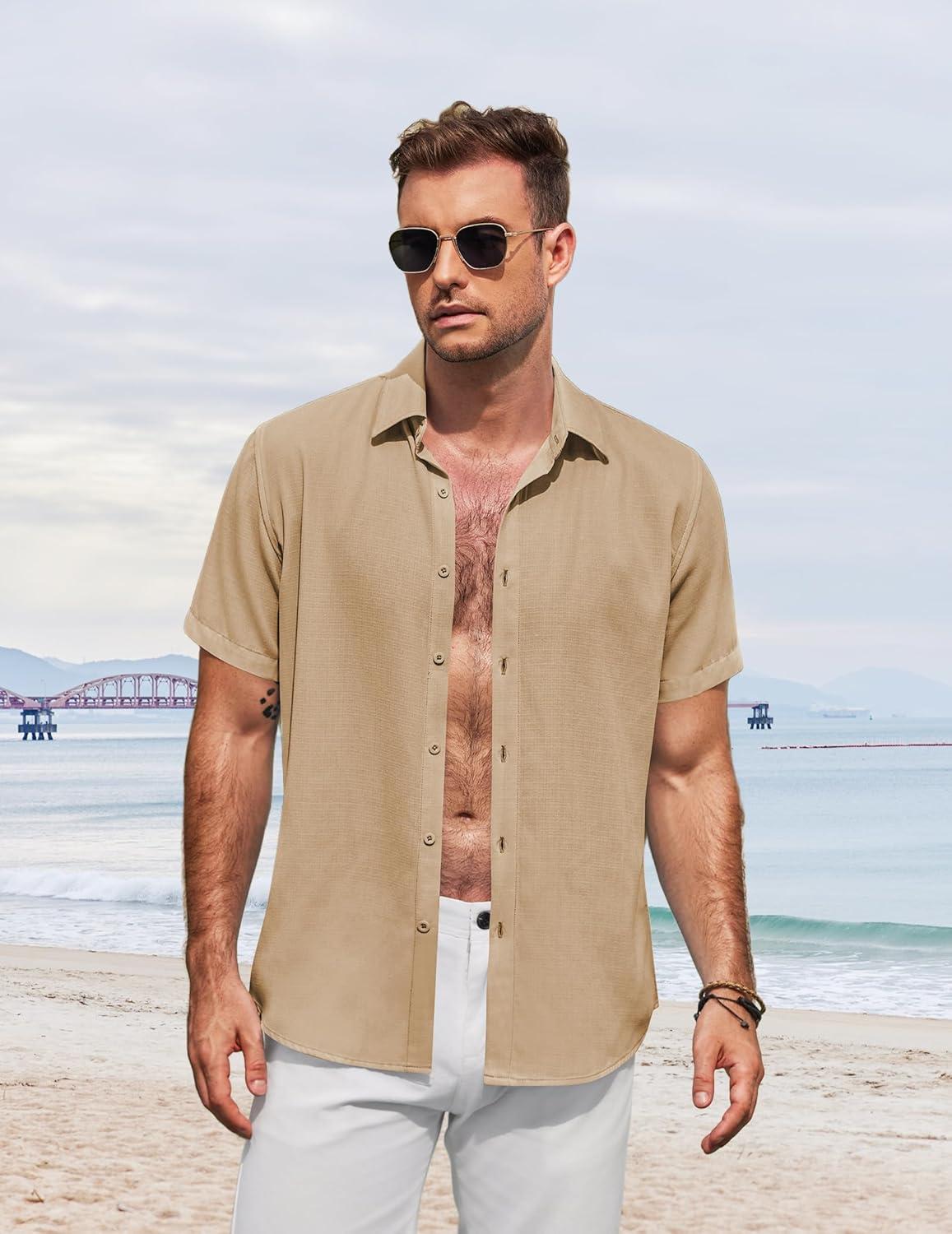 Get up to 70% off on COOFANDY Men’s Button Down Shirt Short Sleeve Casual Shirts for Summer Beach Vacation Shirts(Khaki) styles during our end-of-season clearance event.