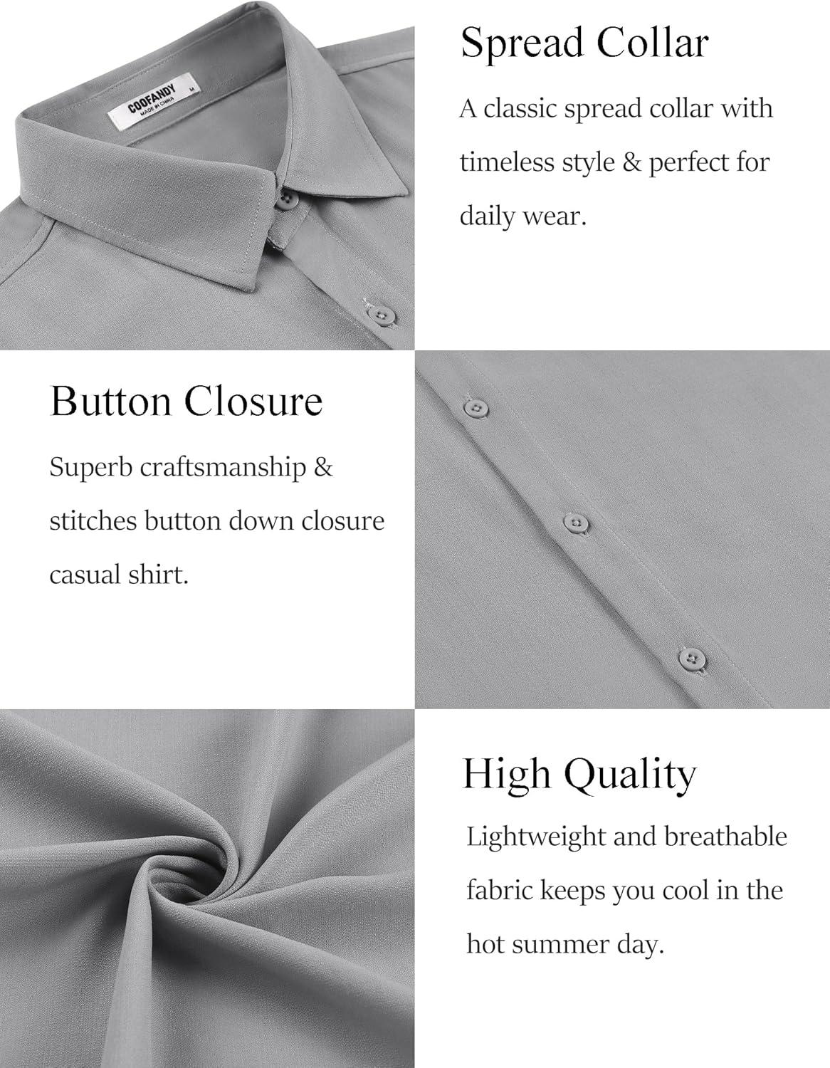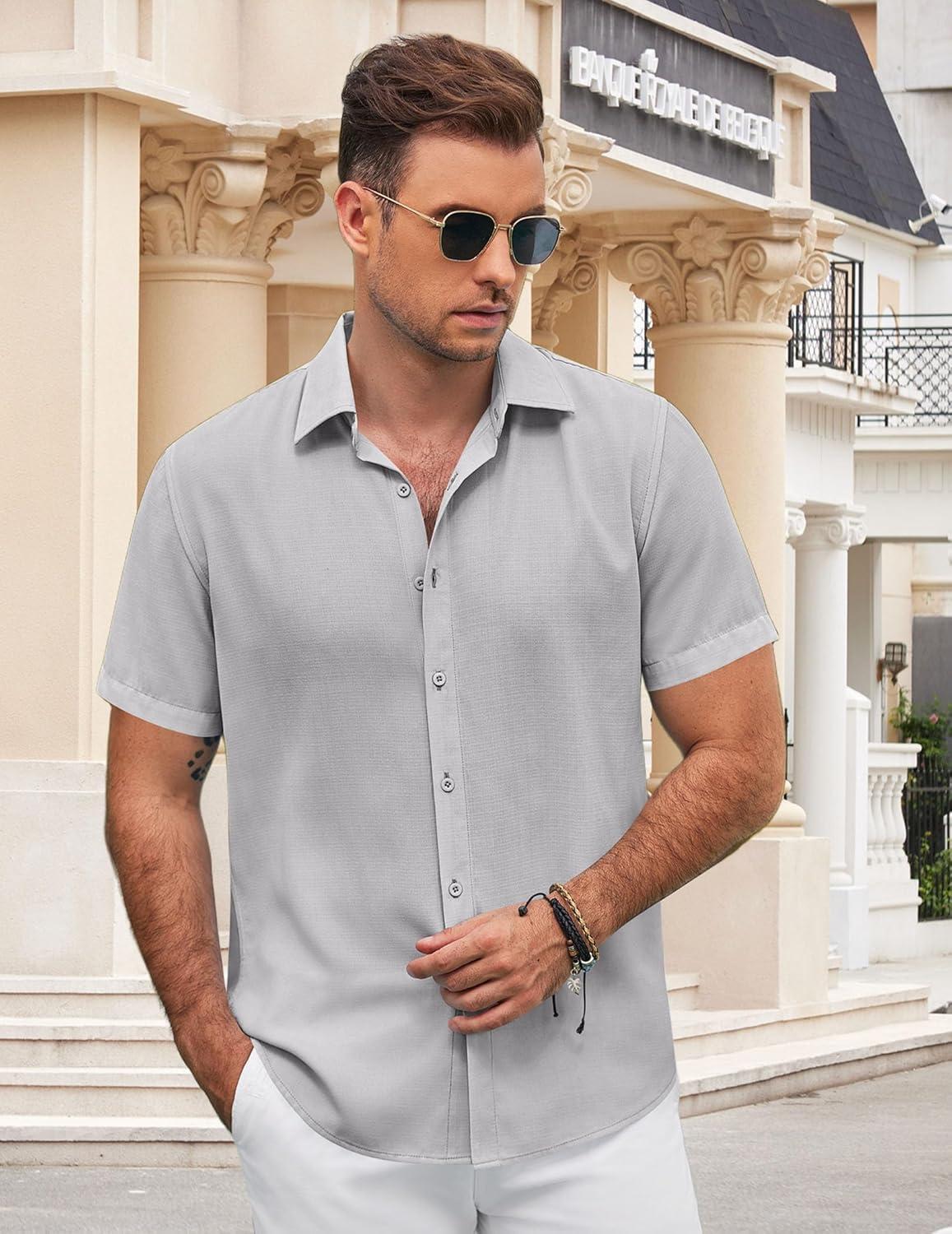 COOFANDY Men's Button Down Shirt Short Sleeve Casual Shirts for Summer Beach Vacation Shirts(Light Grey)