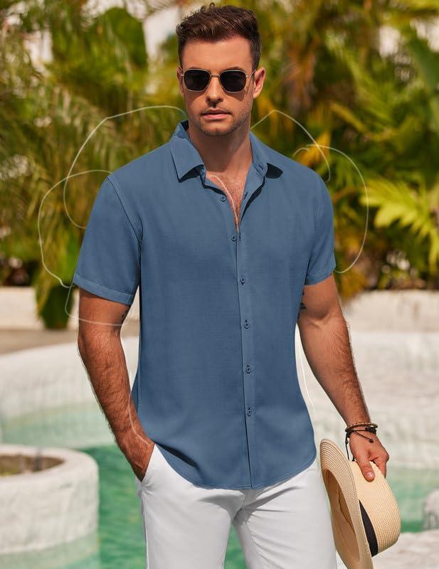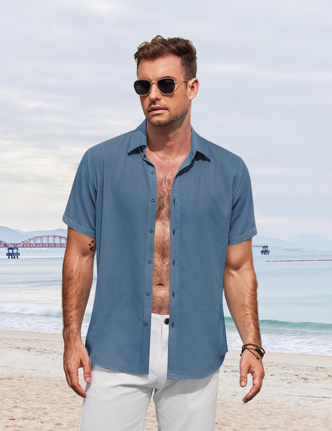 COOFANDY Men's Button Down Shirt Short Sleeve Casual Shirts for Summer Beach Vacation Shirts(Slate Blue)