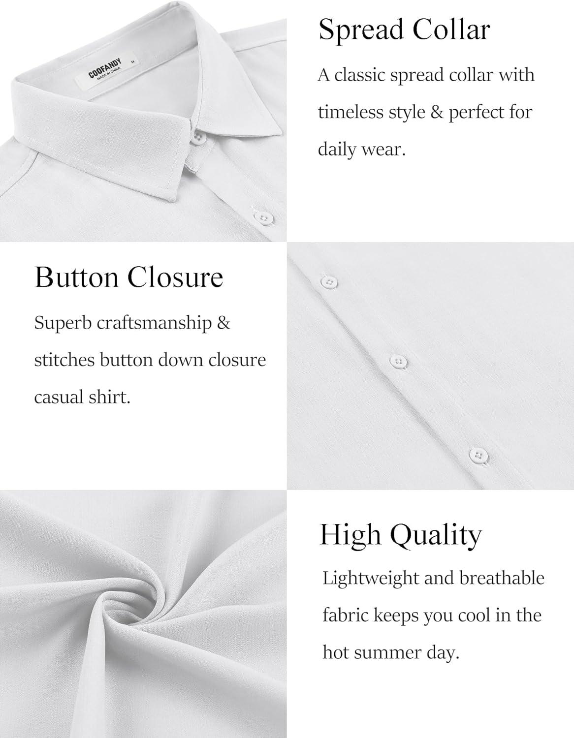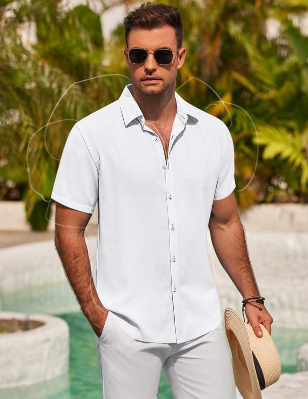 COOFANDY Men’s Button Down Shirt Short Sleeve Casual Shirts for Summer Beach Vacation Shirts(White)