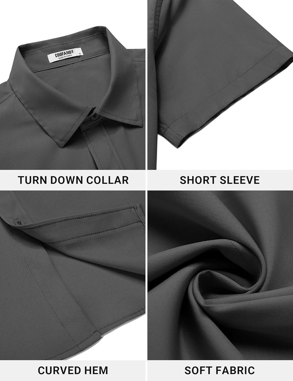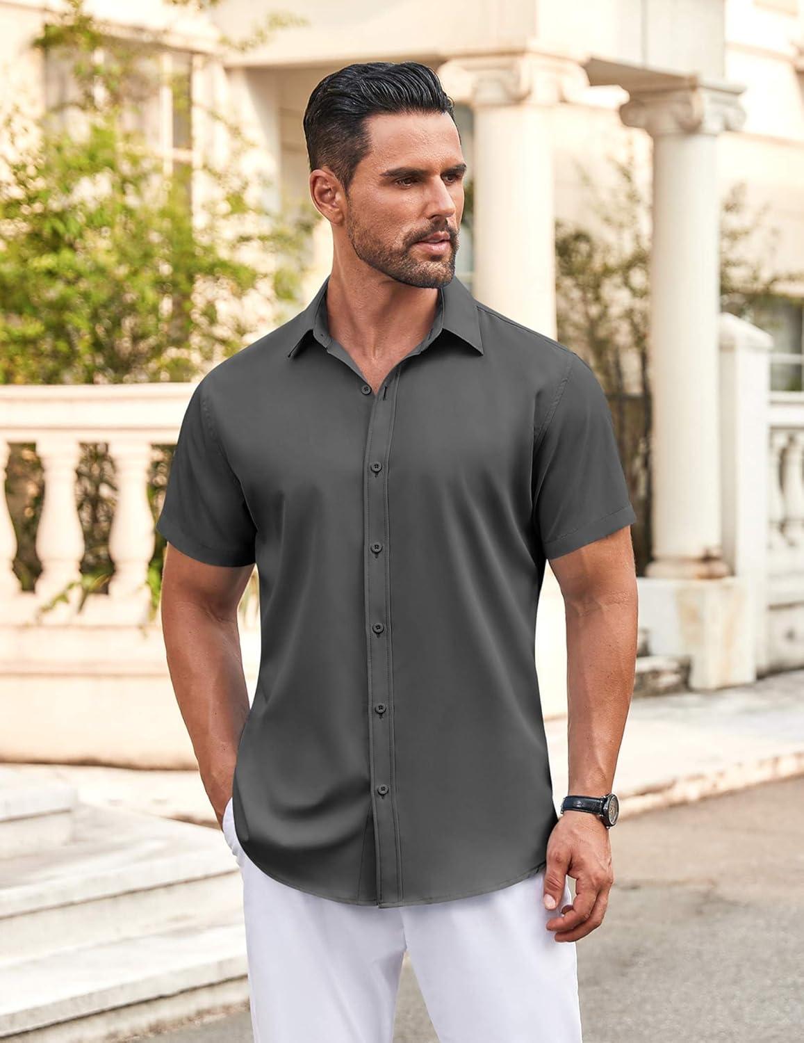 COOFANDY Men's Button Down Shirt Short Sleeve Dress Shirt Casual Beach Summer Wedding Shirt(Dark Grey)