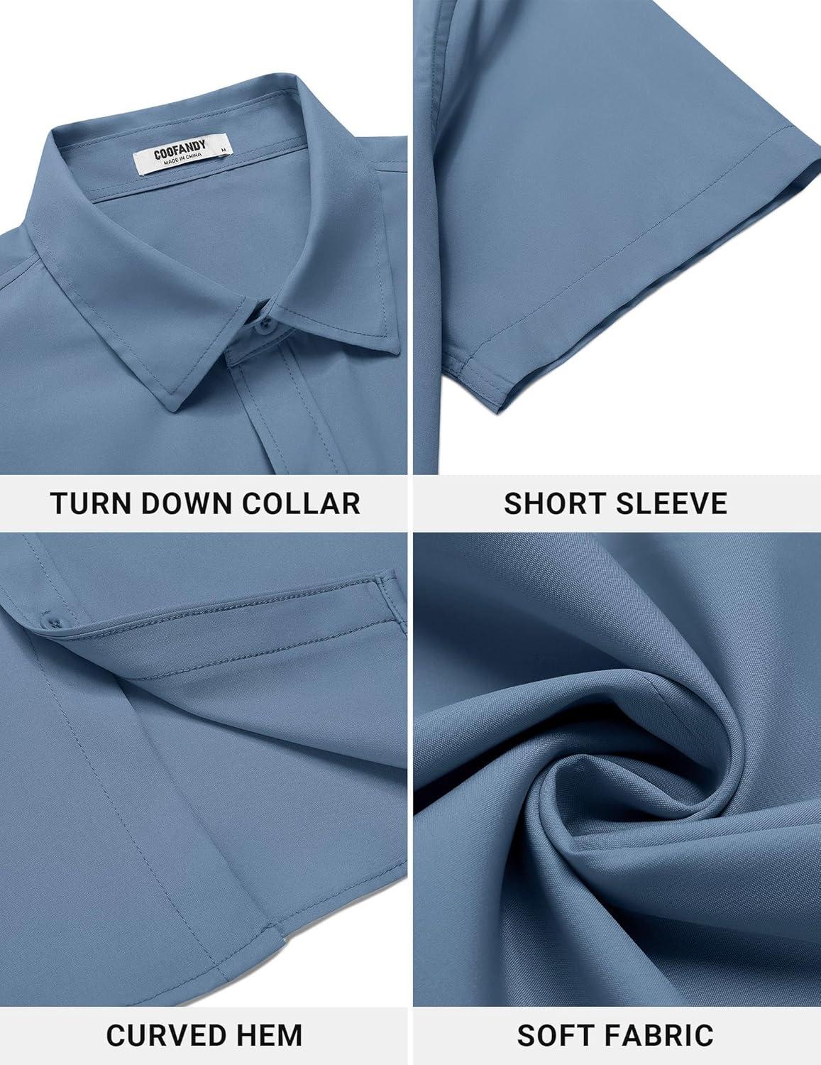 COOFANDY Men's Button Down Shirt Short Sleeve Dress Shirt Casual Beach Summer Wedding Shirt(Grey Blue)