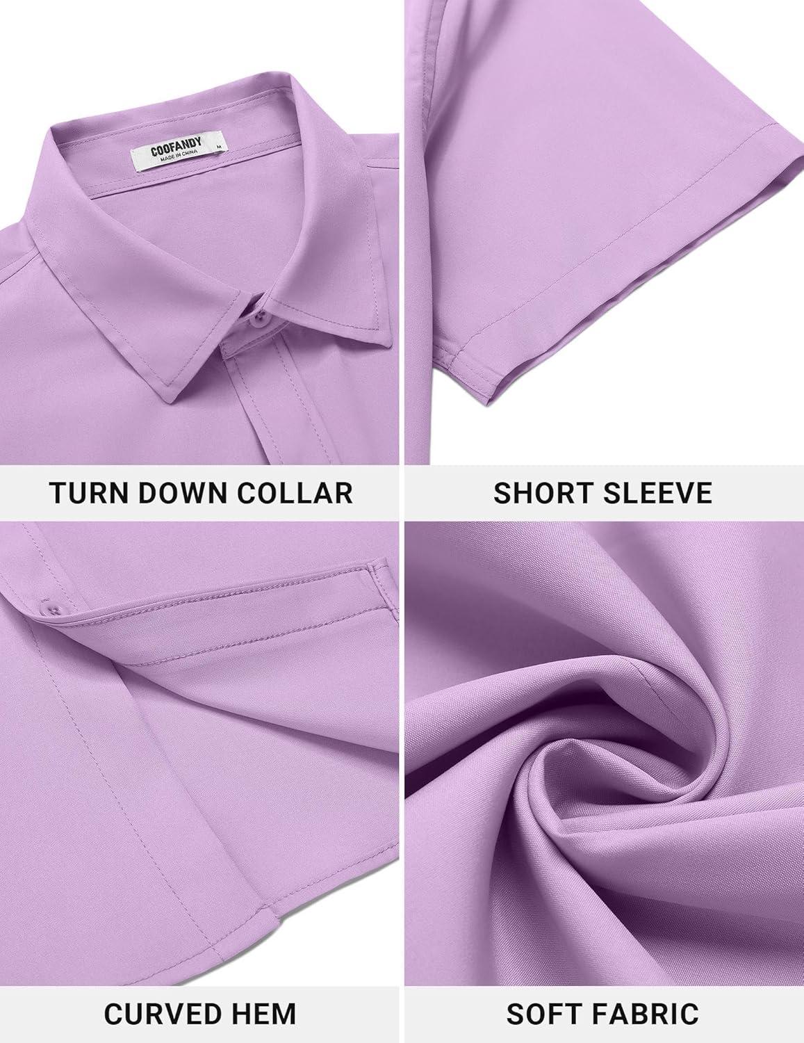 COOFANDY Men's Button Down Shirt Short Sleeve Dress Shirt Casual Beach Summer Wedding Shirt(Lavender)
