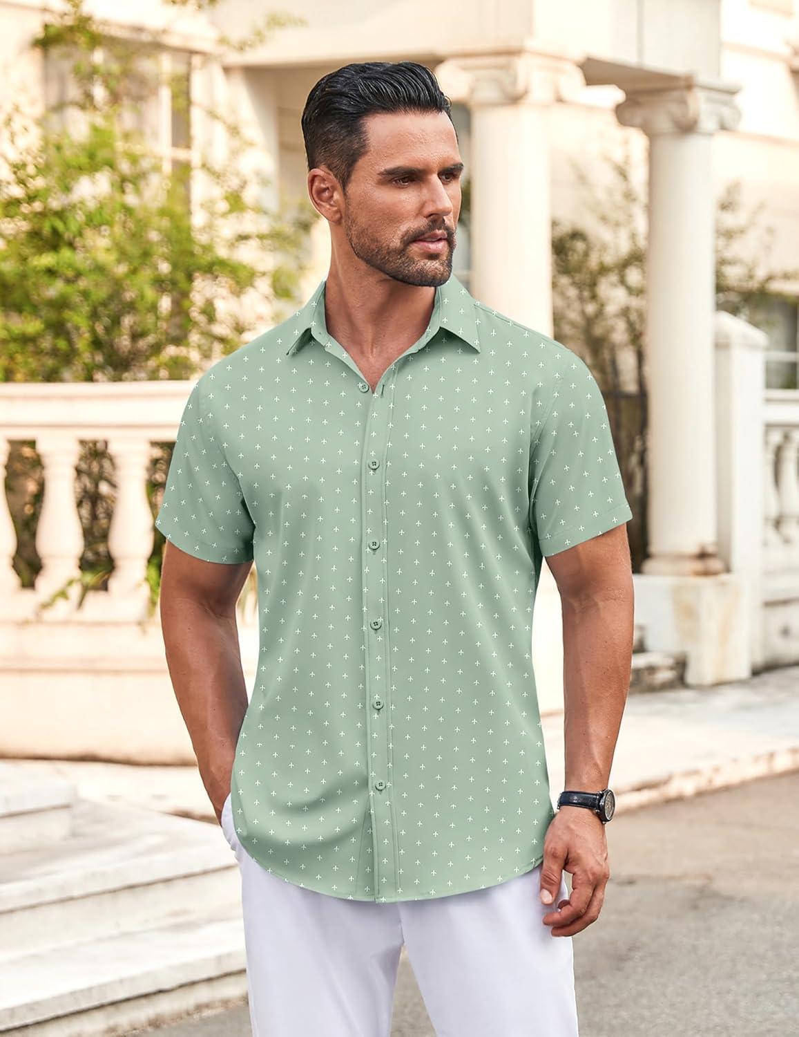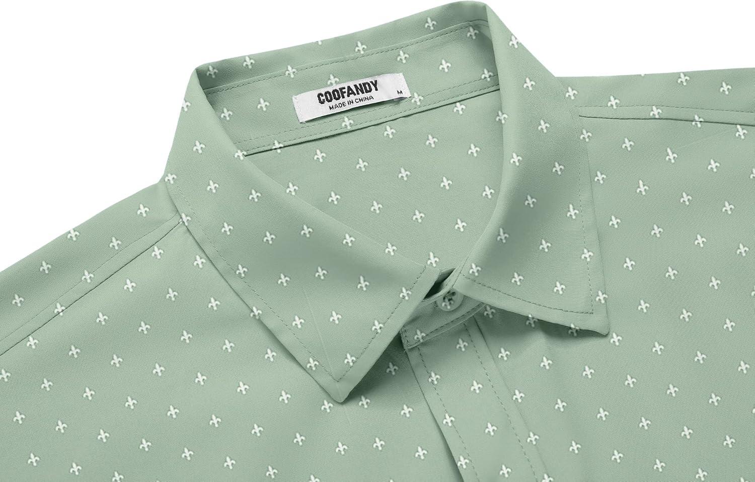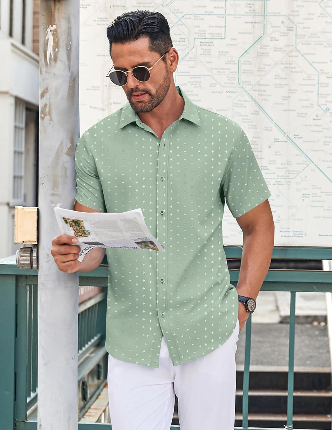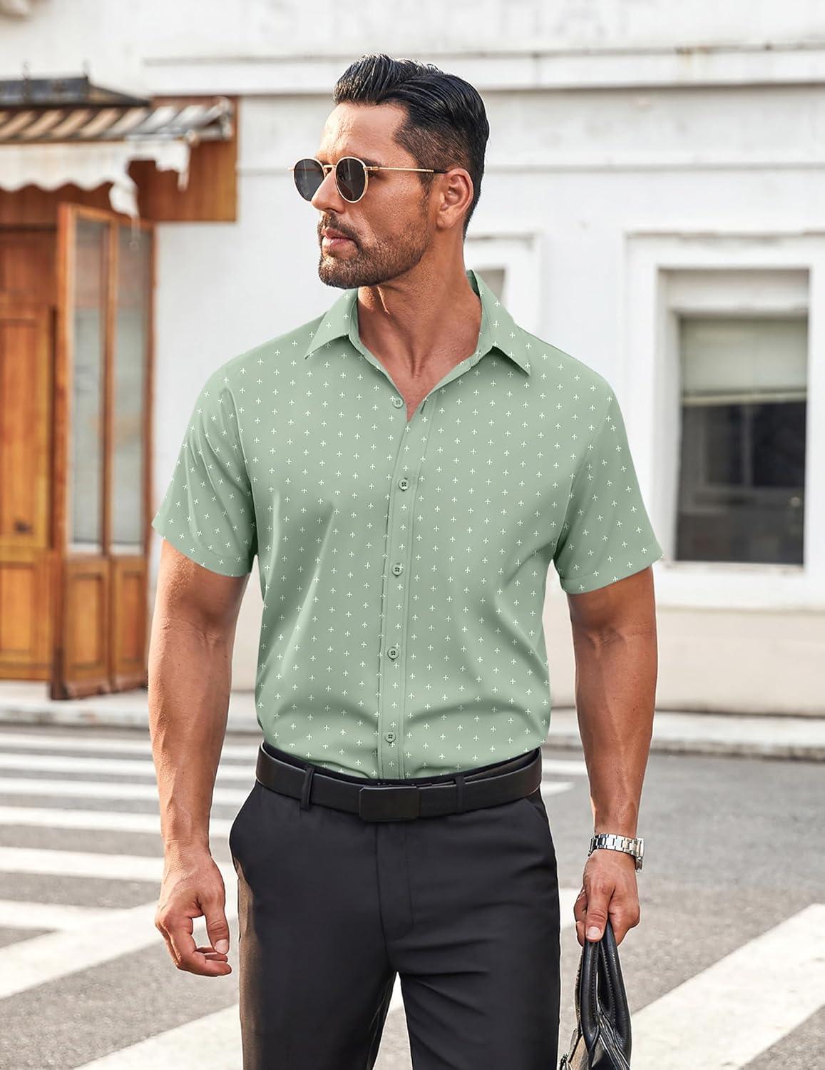 COOFANDY Men's Button Down Shirt Short Sleeve Dress Shirt Casual Beach Summer Wedding Shirt(Light Green-flower)