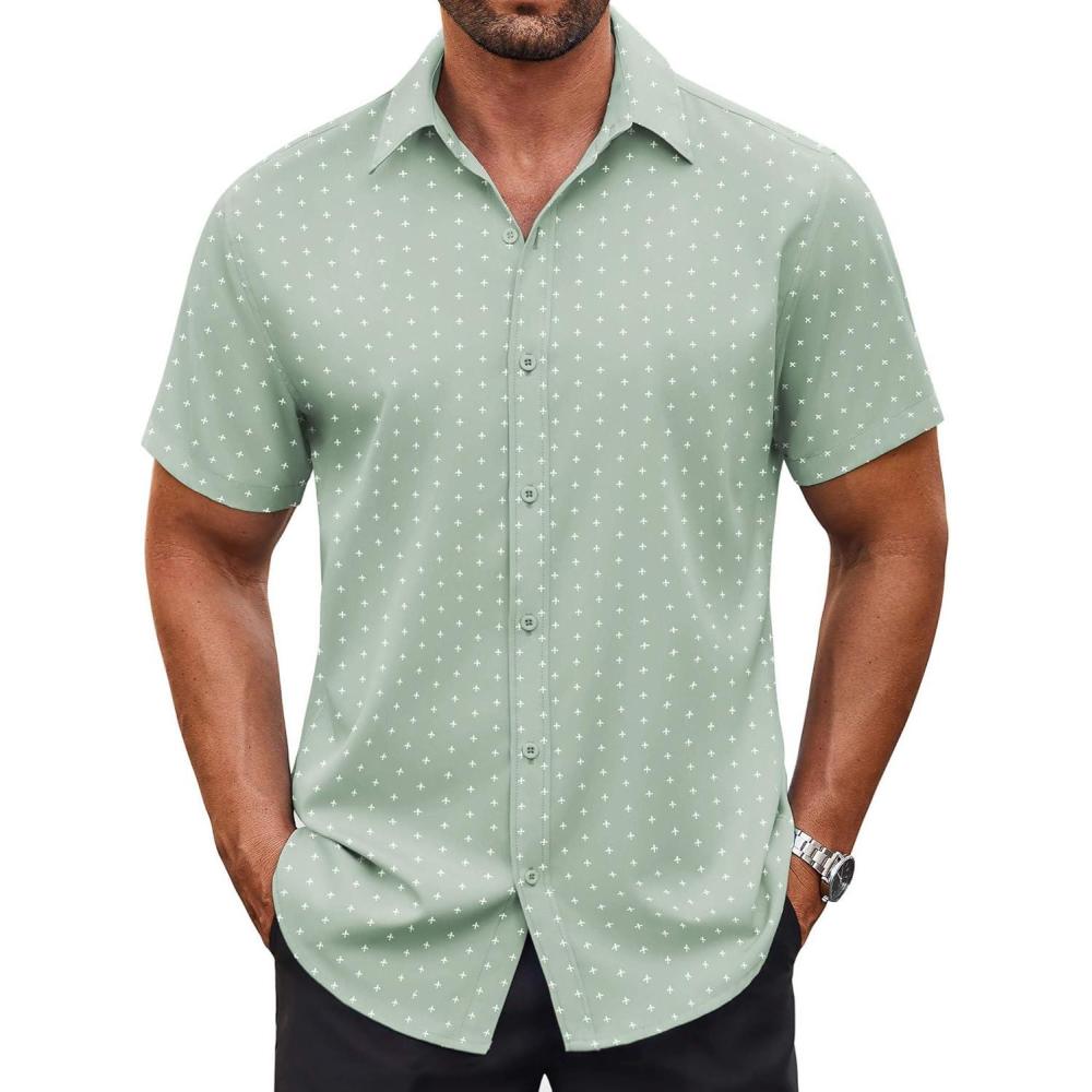 imageCOOFANDY Mens Button Down Shirt Short Sleeve Dress Shirt Casual Beach Summer Wedding ShirtLight Greenflower