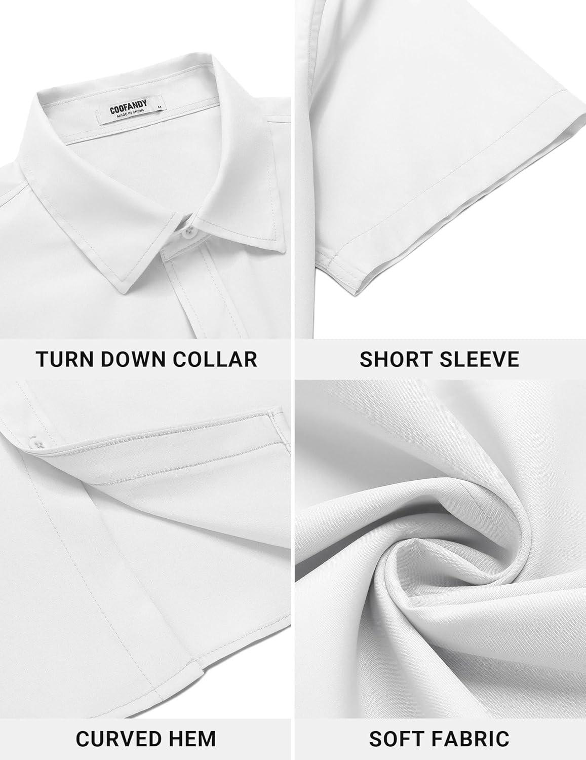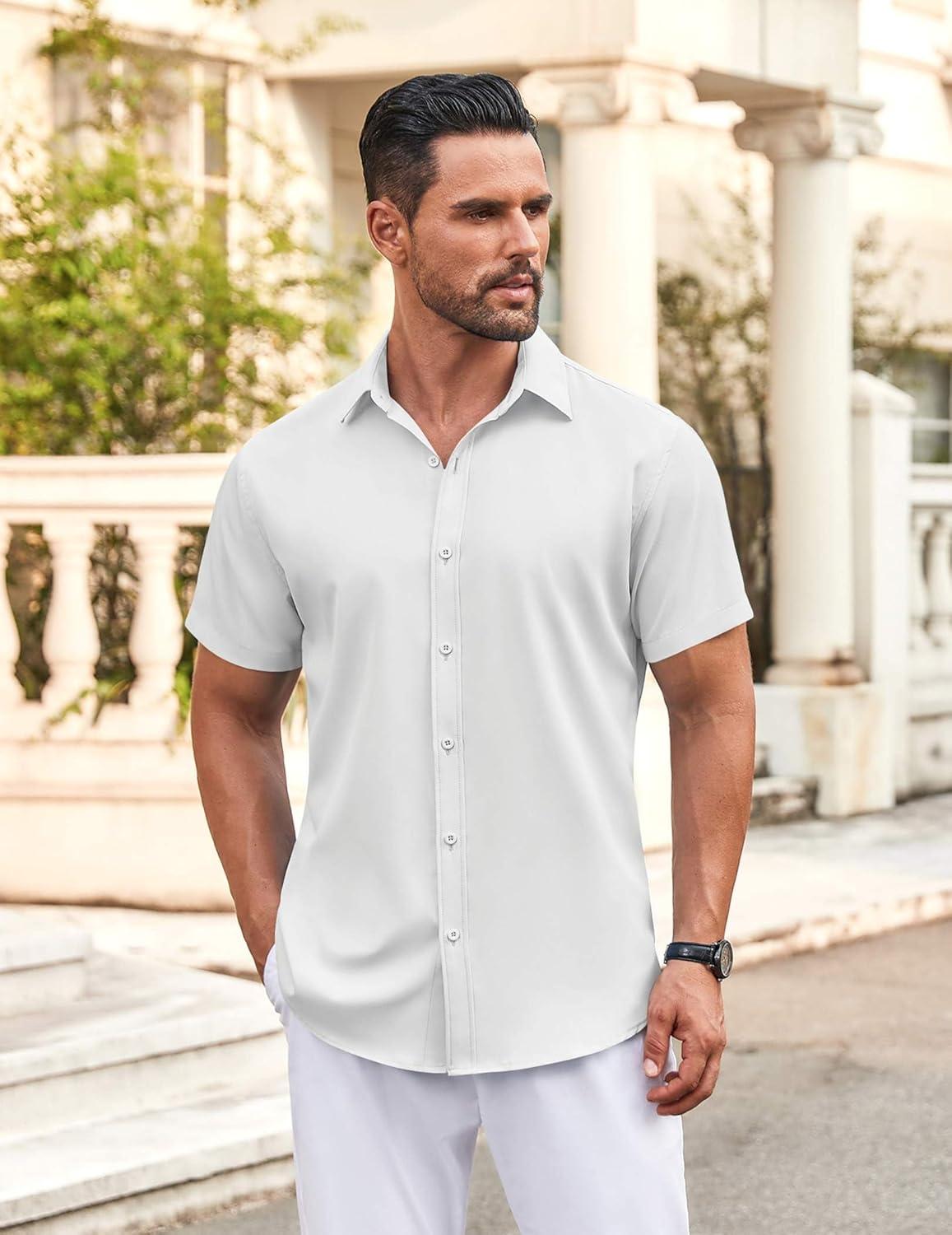 COOFANDY Men's Button Down Shirt Short Sleeve Dress Shirt Casual Beach Summer Wedding Shirt(White)
