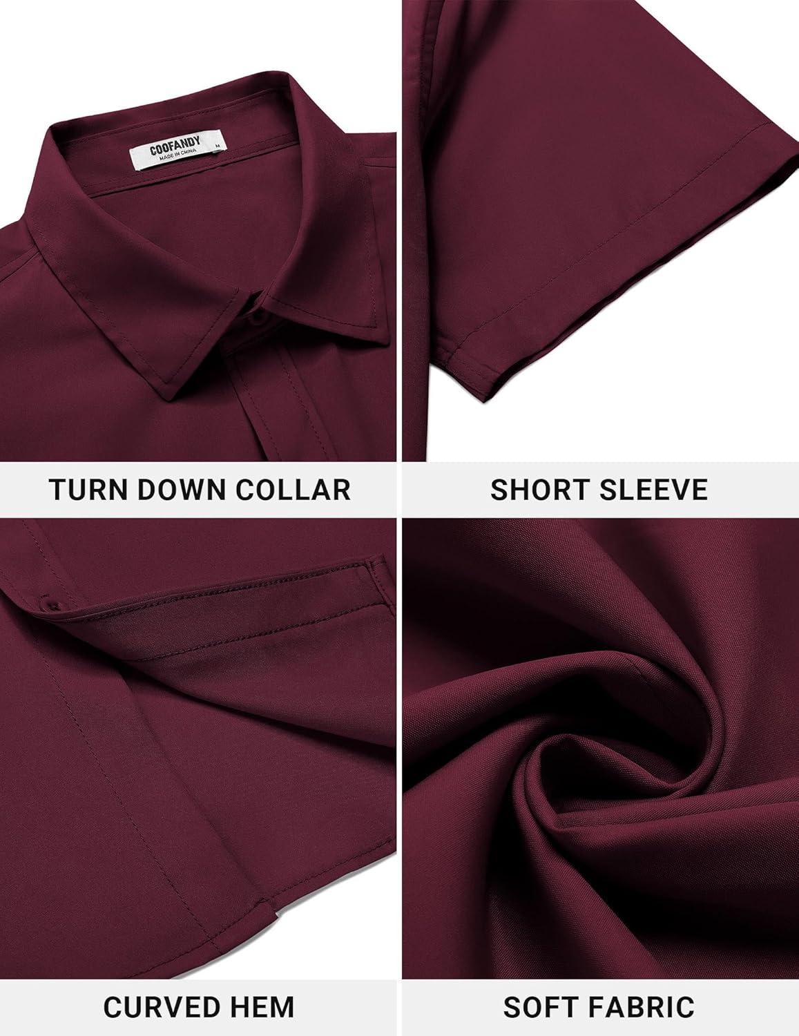 COOFANDY Men's Button Down Shirt Short Sleeve Dress Shirt Casual Beach Summer Wedding Shirt(Wine Red)