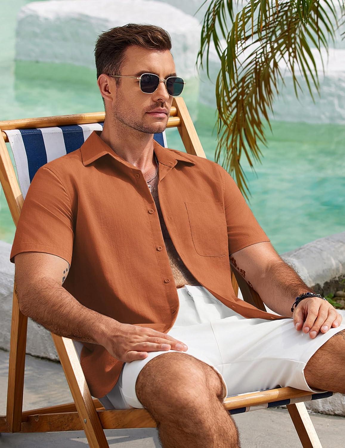 Save up to 40% on COOFANDY Mens Button Down Shirts Lightweight Breathable Short Sleeve Shirt Summer Beach Top(Caramel) styles during our end-of-season sale.