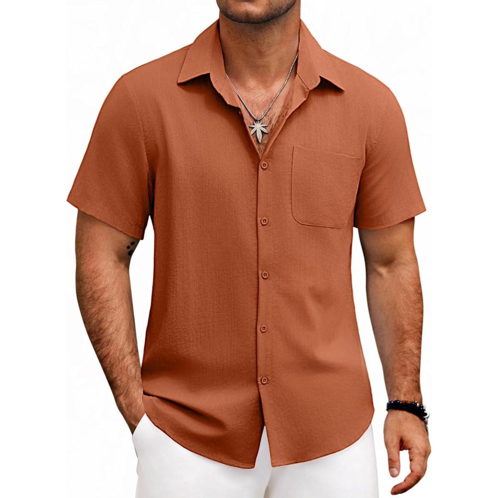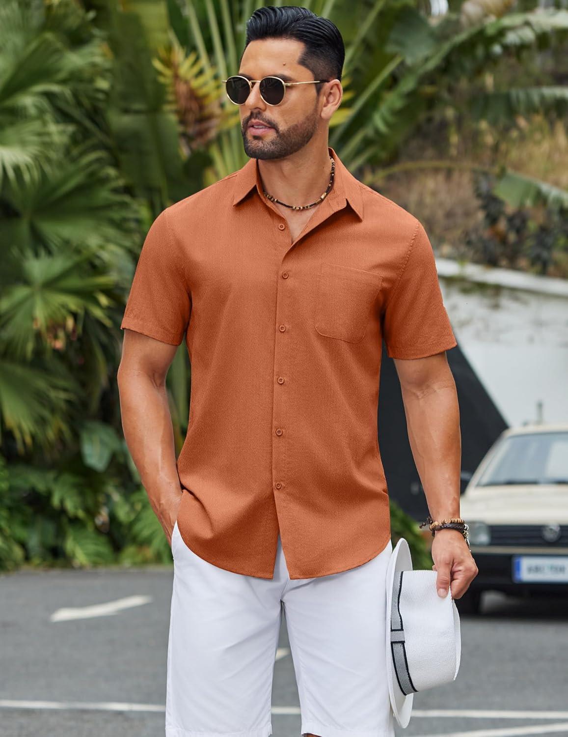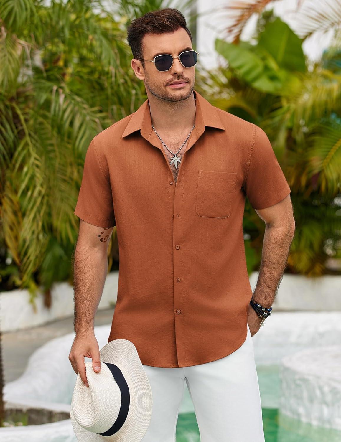 COOFANDY Mens Button Down Shirts Lightweight Breathable Short Sleeve Shirt Summer Beach Top(Caramel)