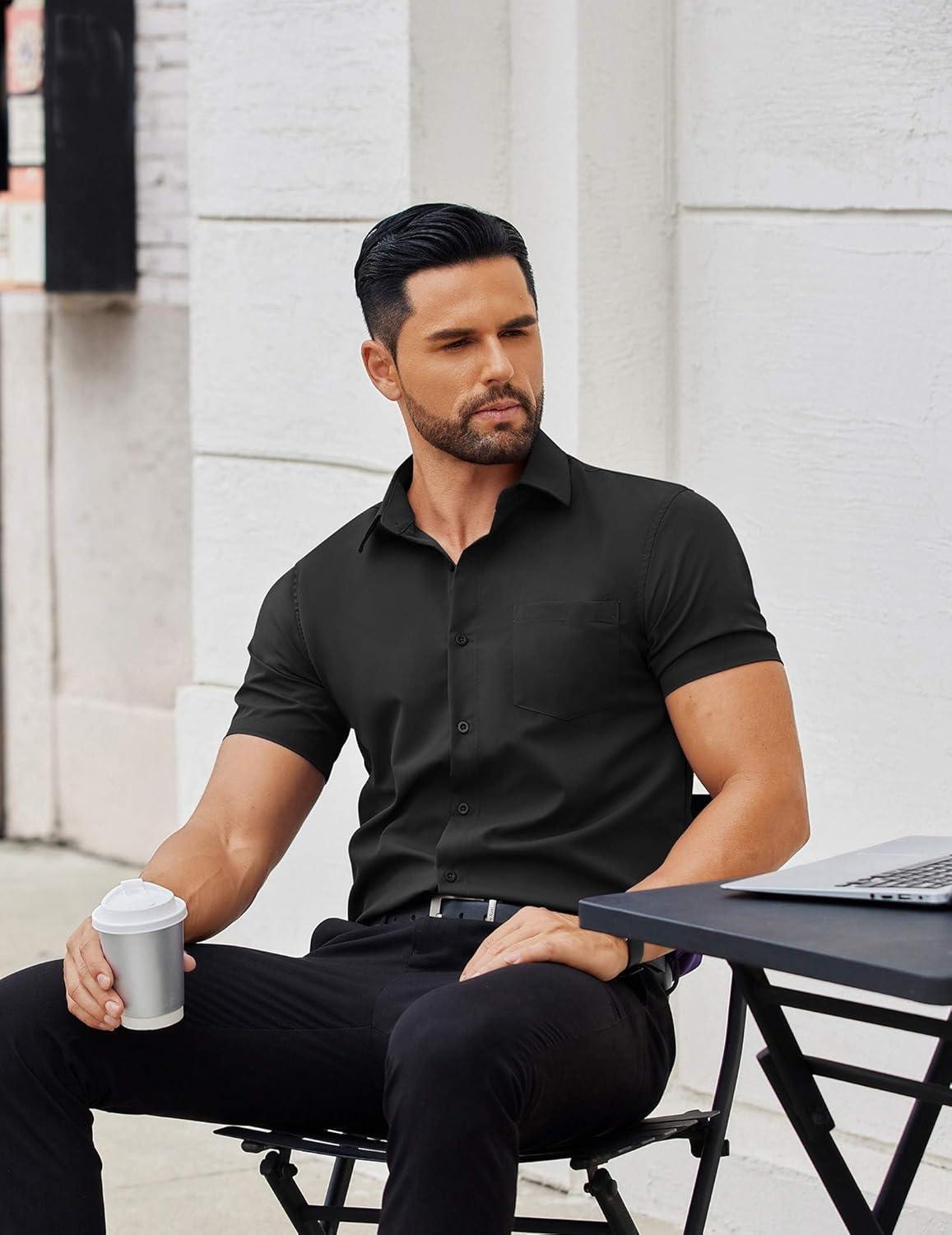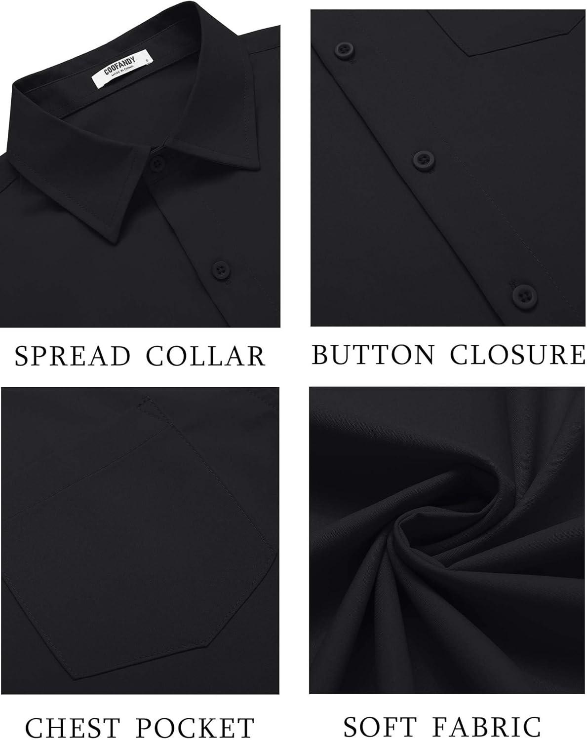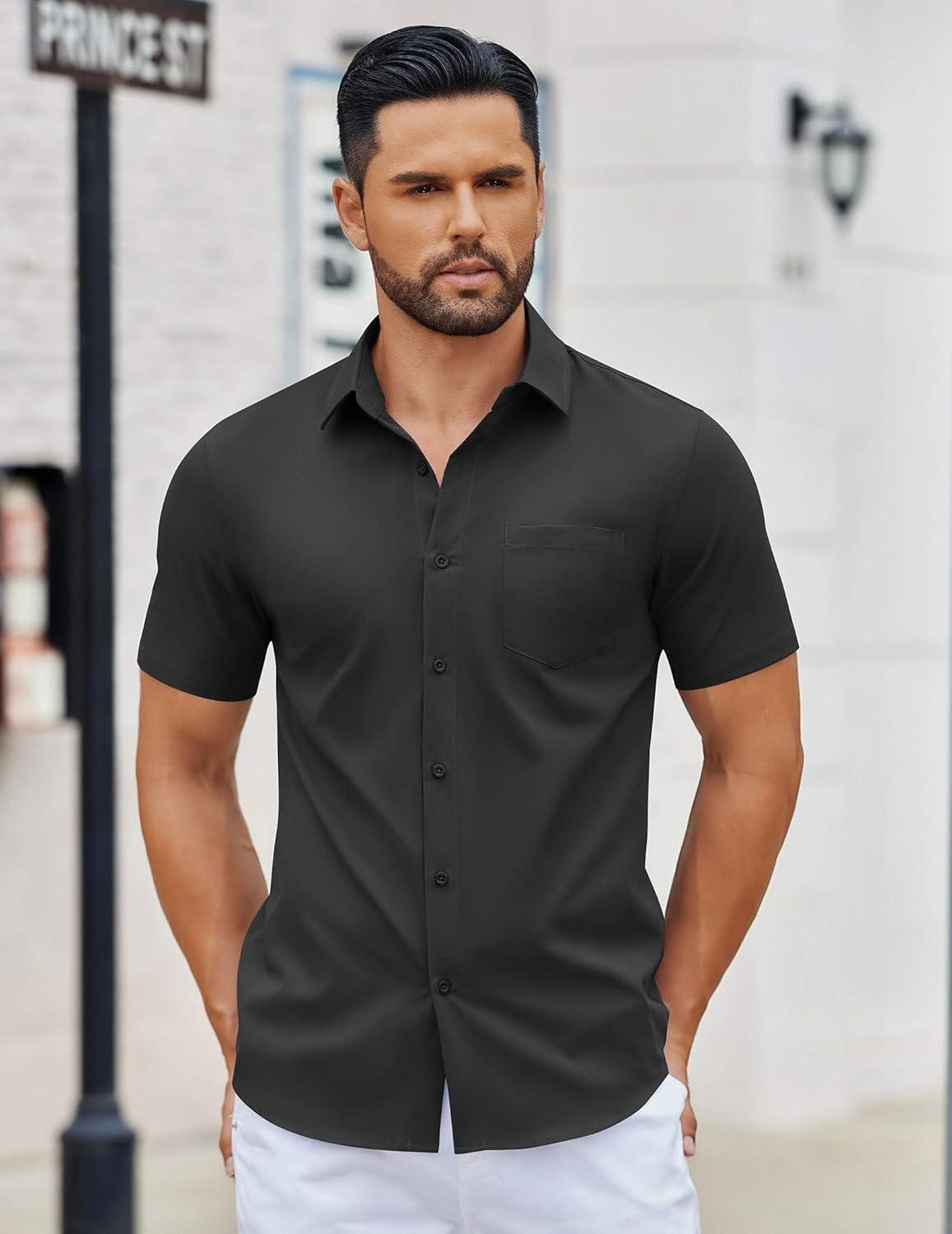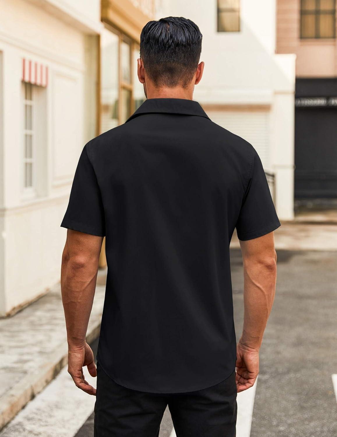 COOFANDY Men's Button Down Shirts Short Sleeve Casual Dress Shirts Untucked Summer Shirt with Pocket(Black)