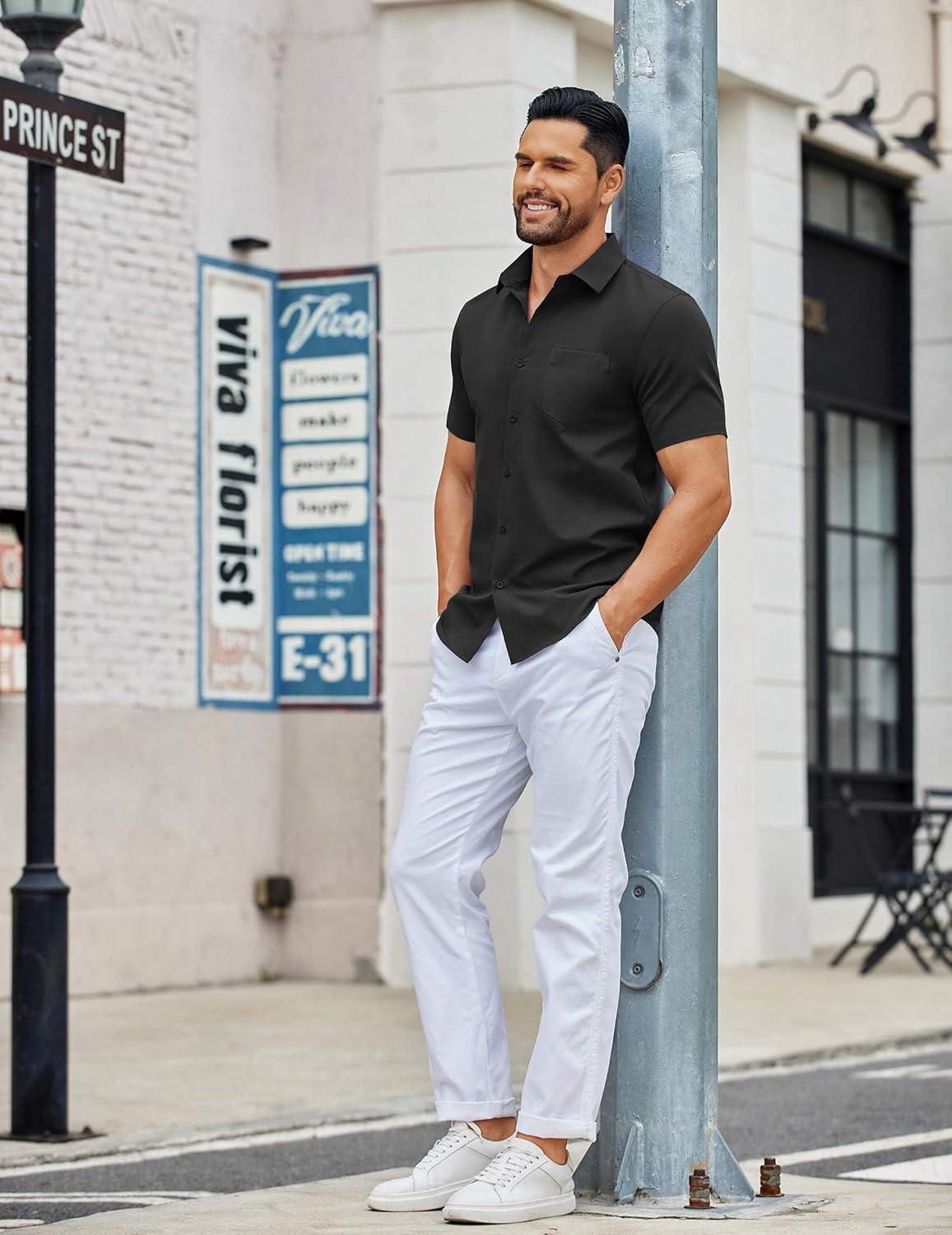COOFANDY Men’s Button Down Shirts Short Sleeve Casual Dress Shirts Untucked Summer Shirt with Pocket(Black)