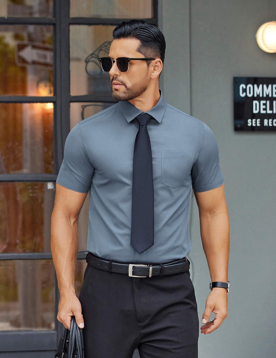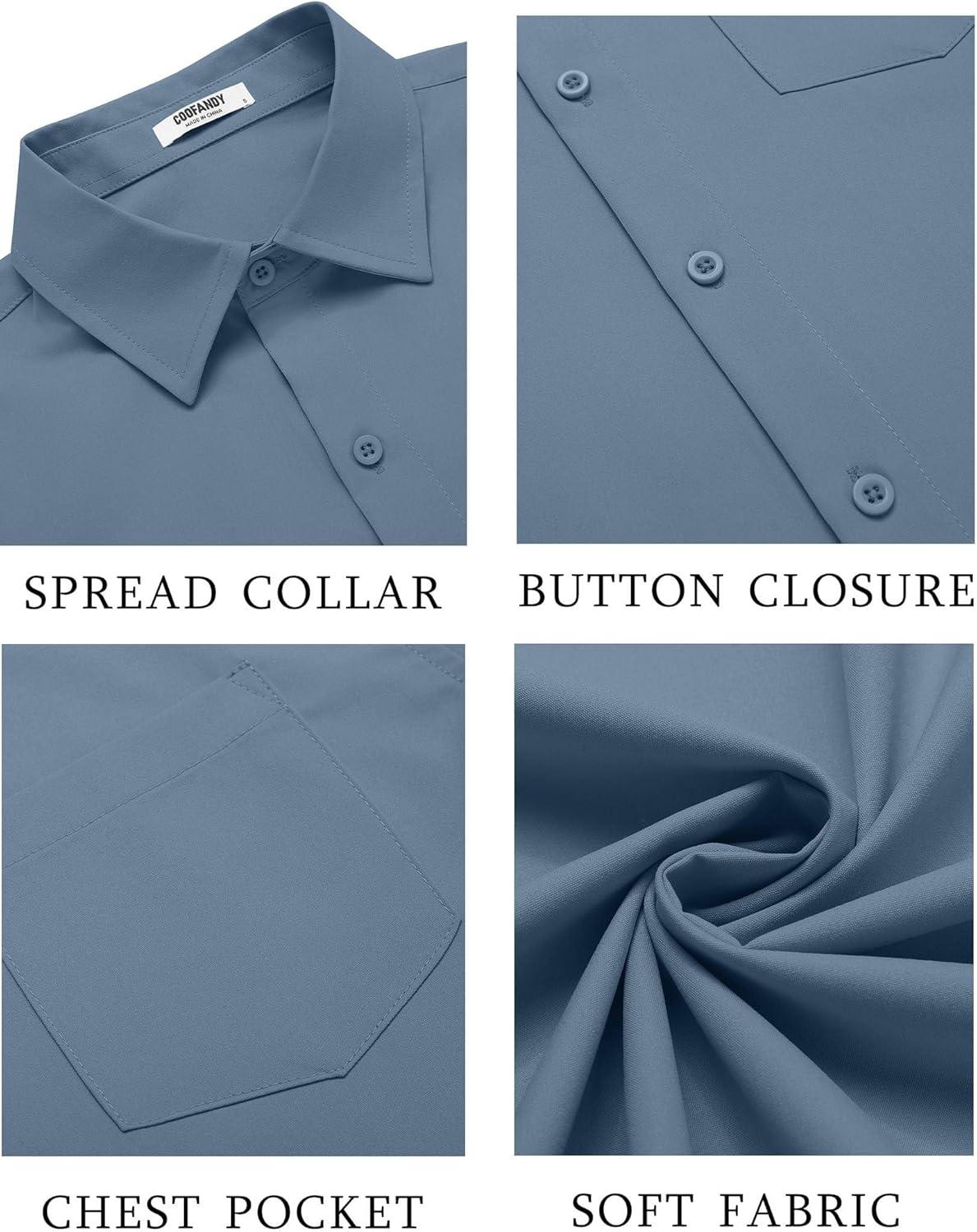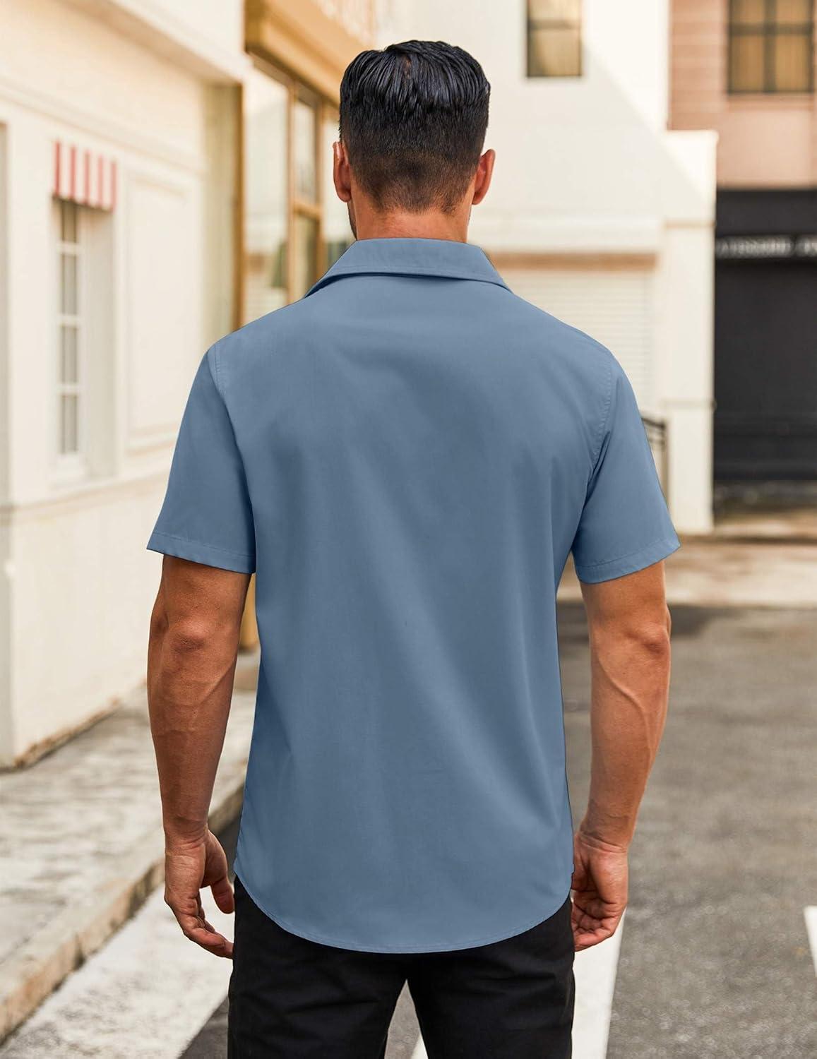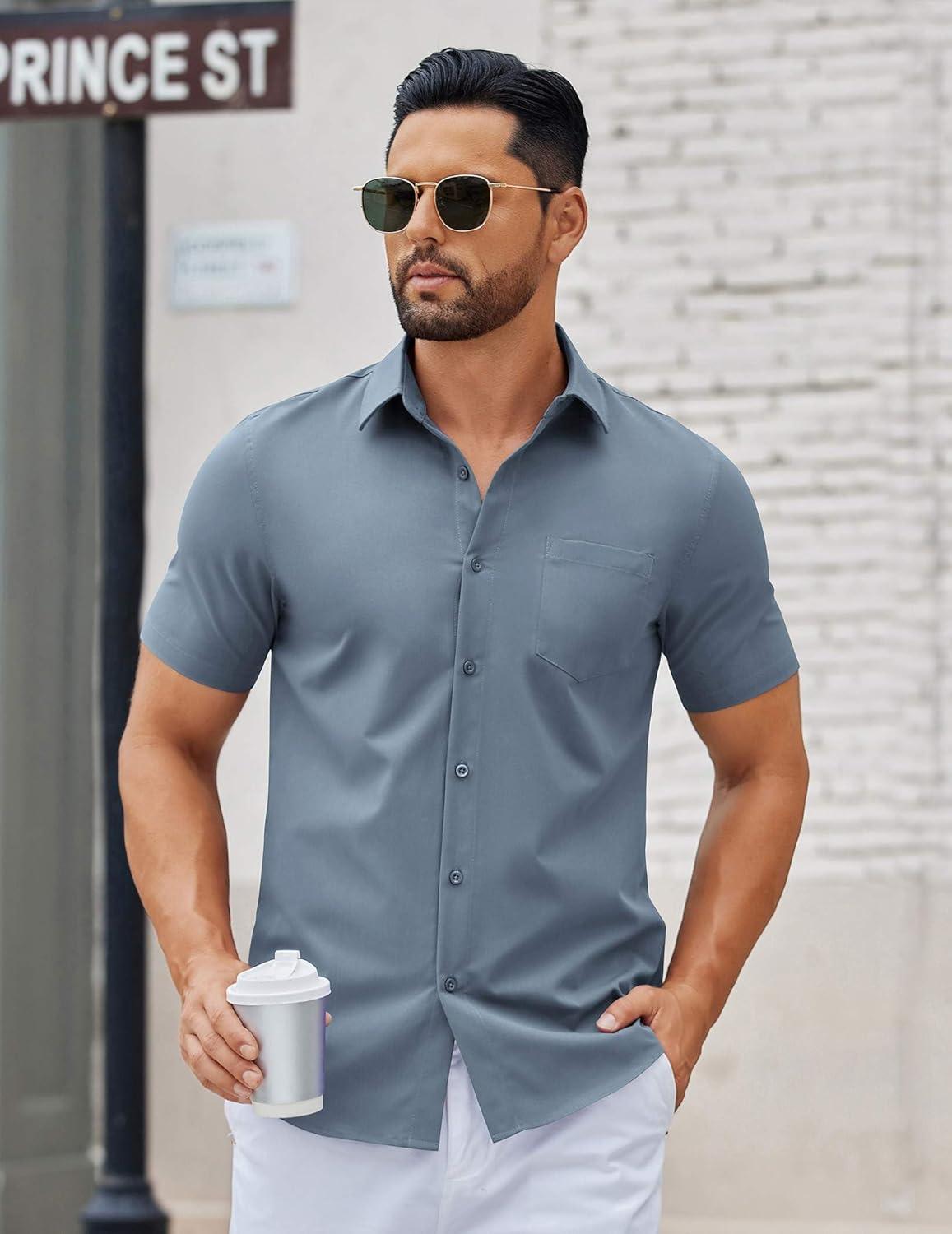 COOFANDY Men's Button Down Shirts Short Sleeve Casual Dress Shirts Untucked Summer Shirt with Pocket(Grey Blue)