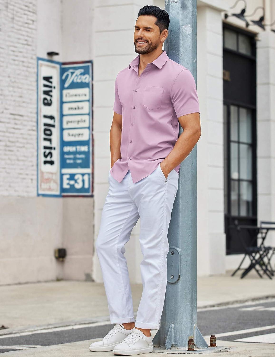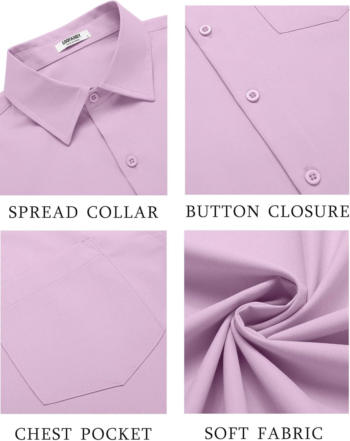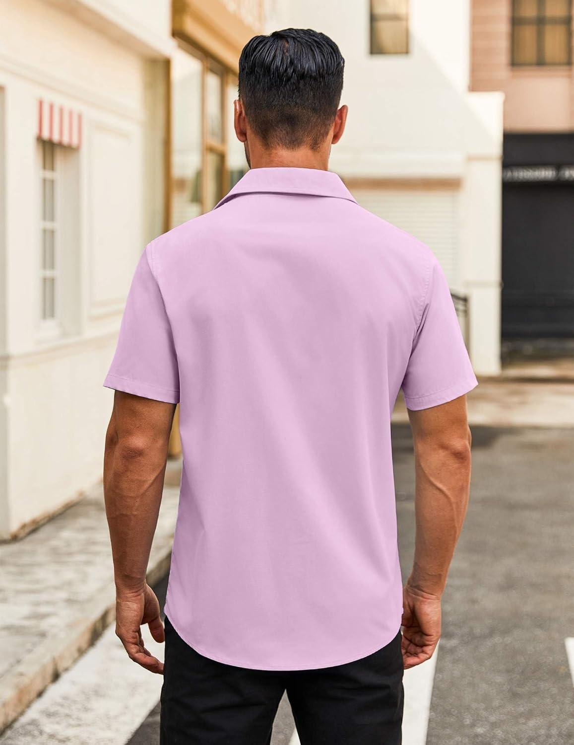 COOFANDY Men’s Button Down Shirts Short Sleeve Casual Dress Shirts Untucked Summer Shirt with Pocket(Lavender)