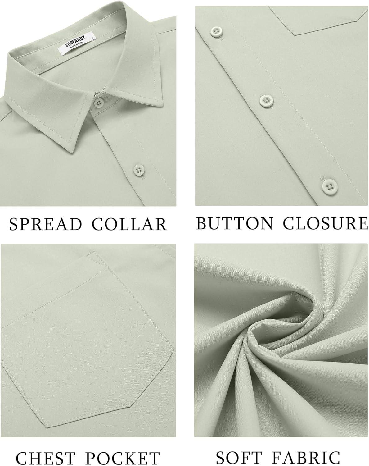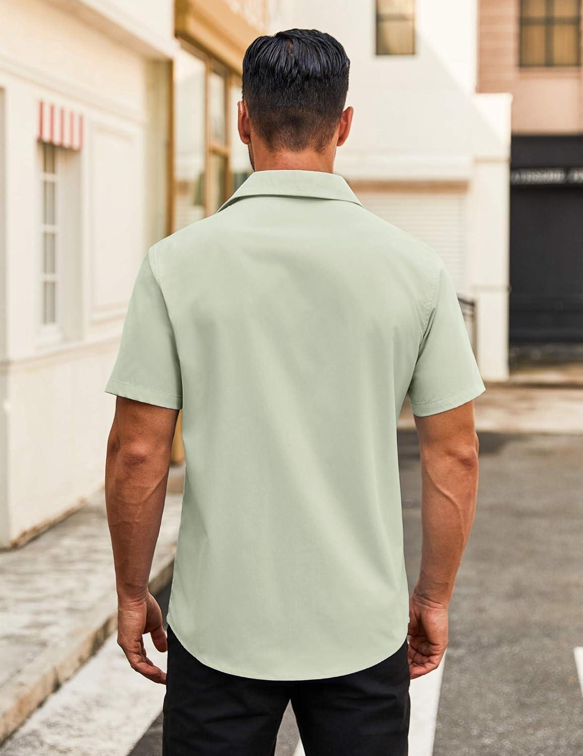 COOFANDY Men's Button Down Shirts Short Sleeve Casual Dress Shirts Untucked Summer Shirt with Pocket(Light Green)