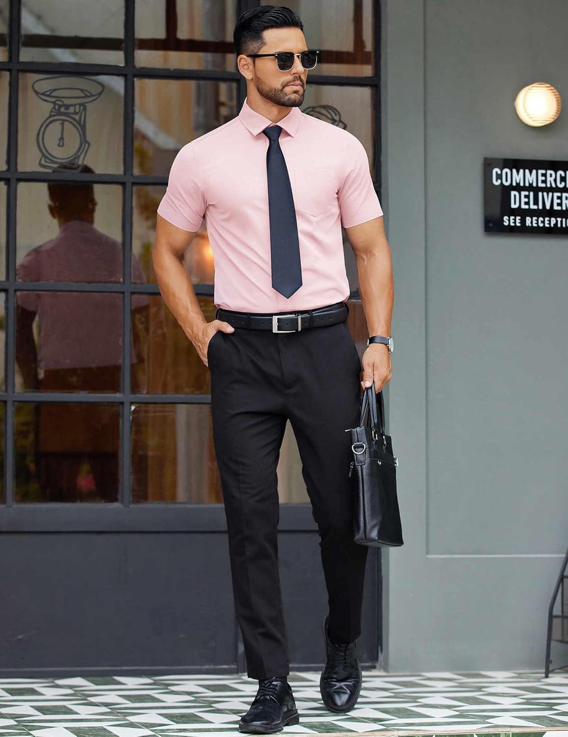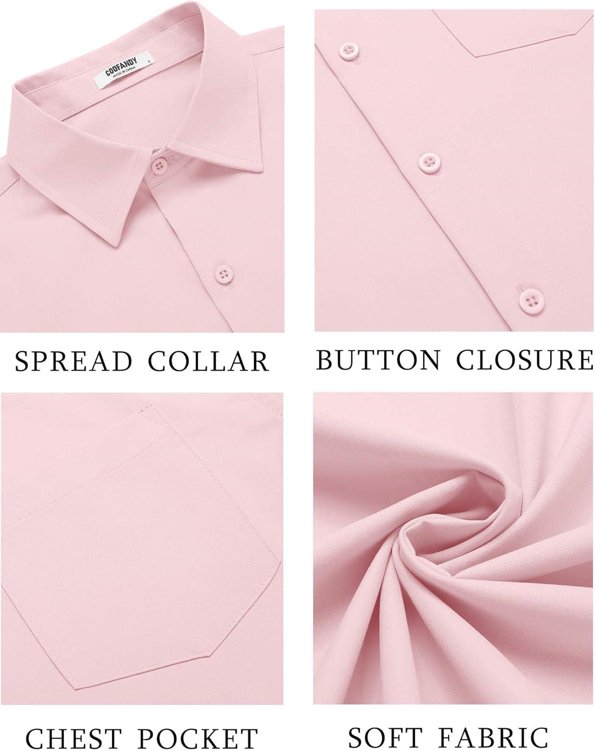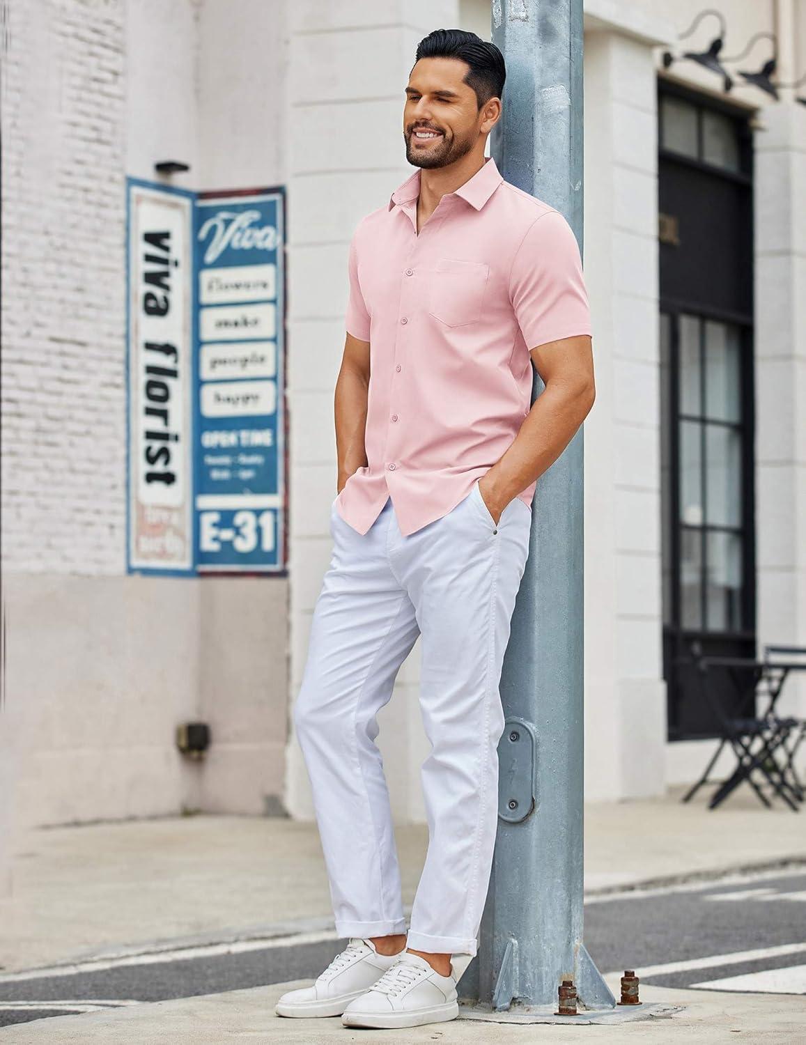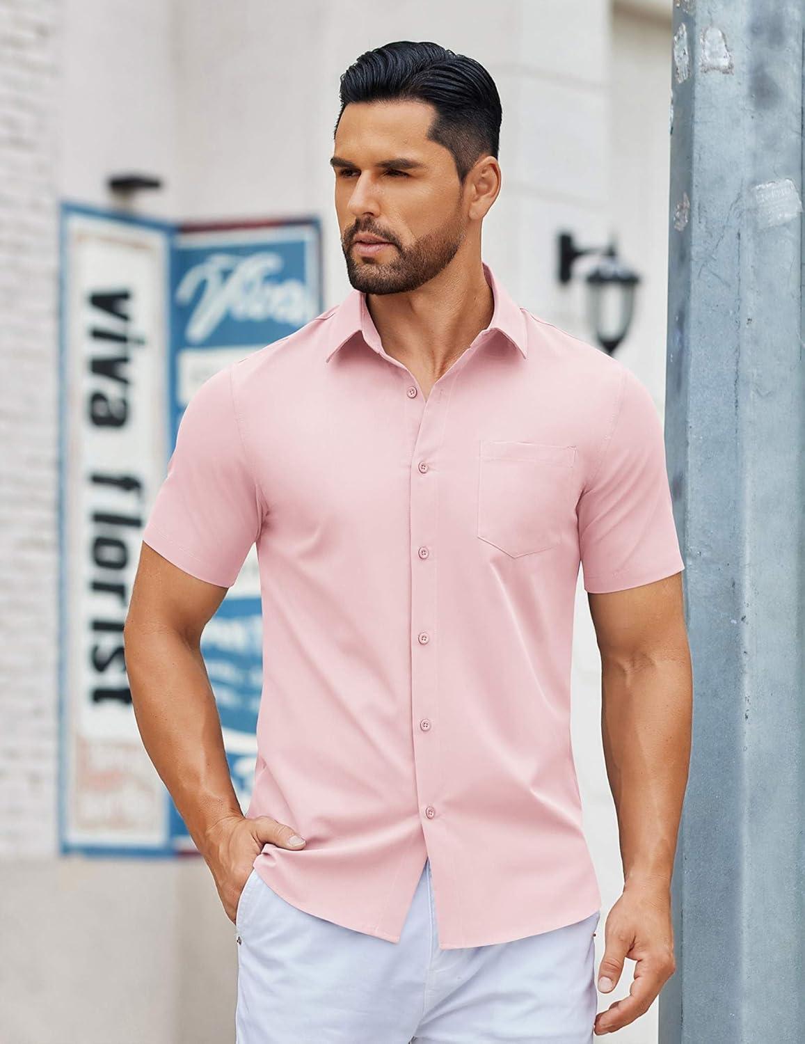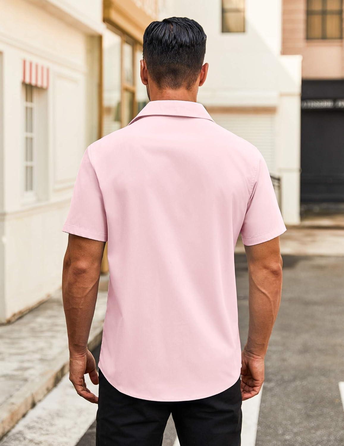 COOFANDY Men’s Button Down Shirts Short Sleeve Casual Dress Shirts Untucked Summer Shirt with Pocket(Light Pink)