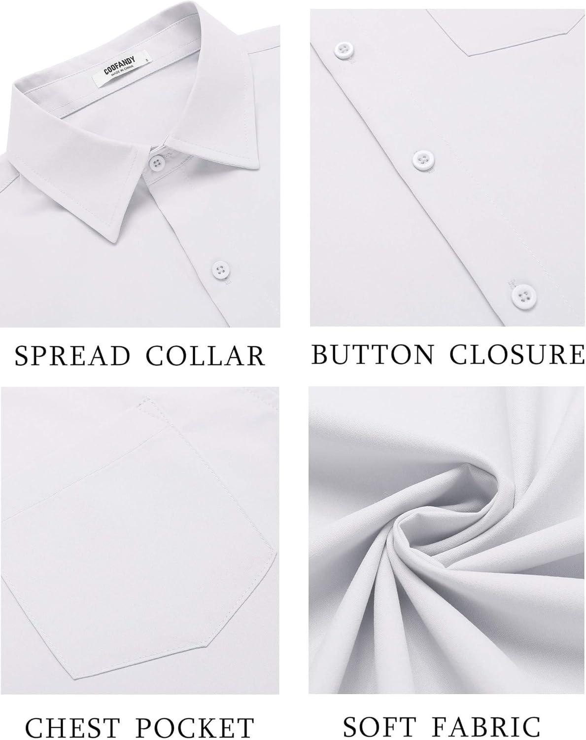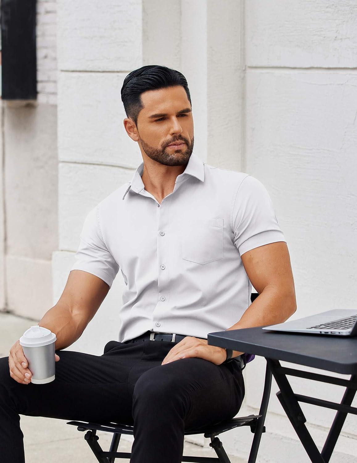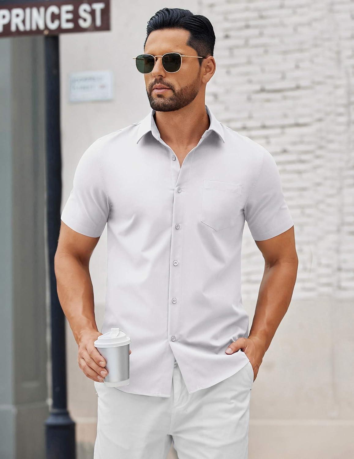 COOFANDY Men’s Button Down Shirts Short Sleeve Casual Dress Shirts Untucked Summer Shirt with Pocket(White)