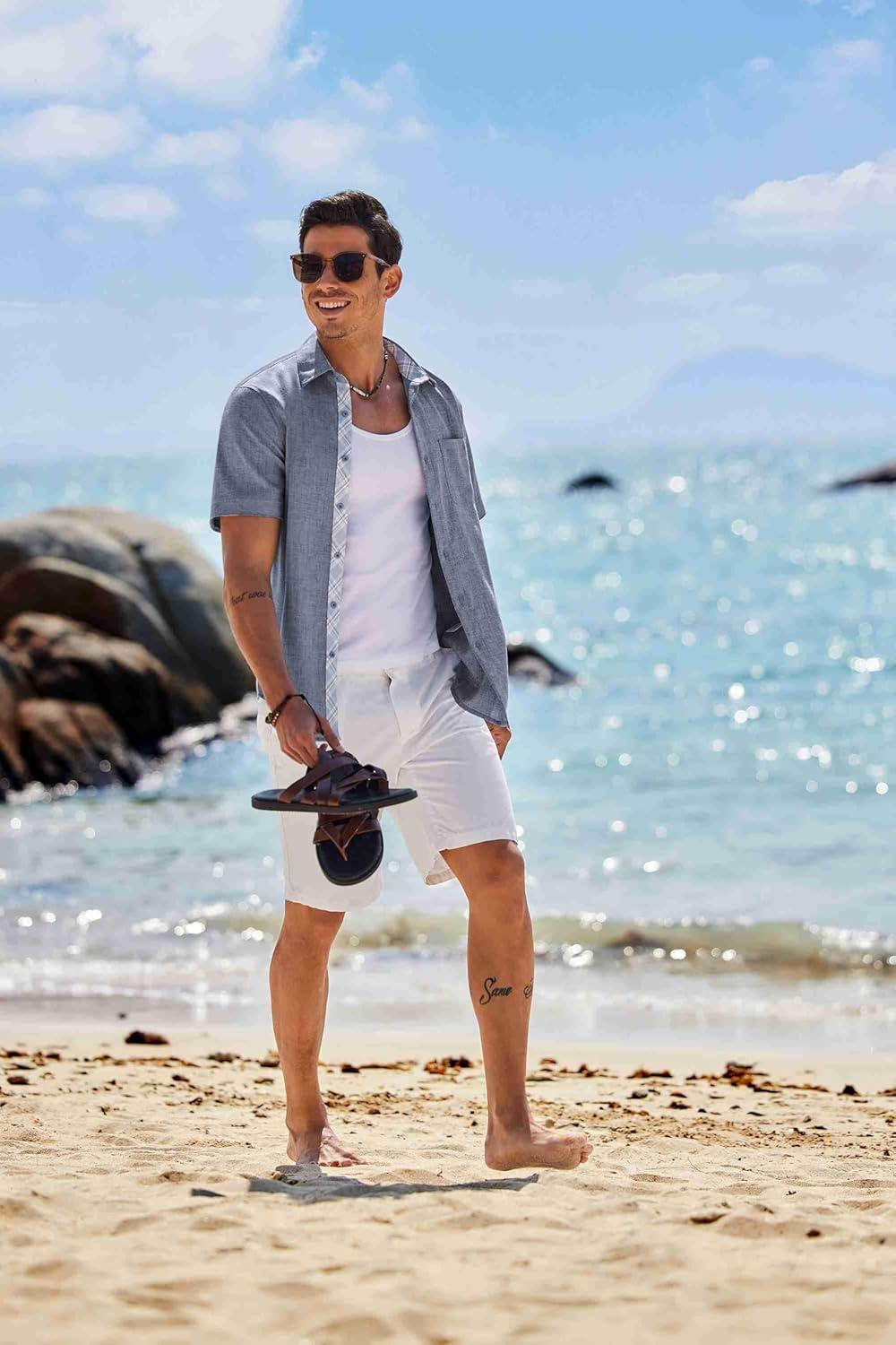 COOFANDY Mens Button Down Shirts Short Sleeve Casual Linen Shirts for Men Summer Beach Wedding Shirt(White)