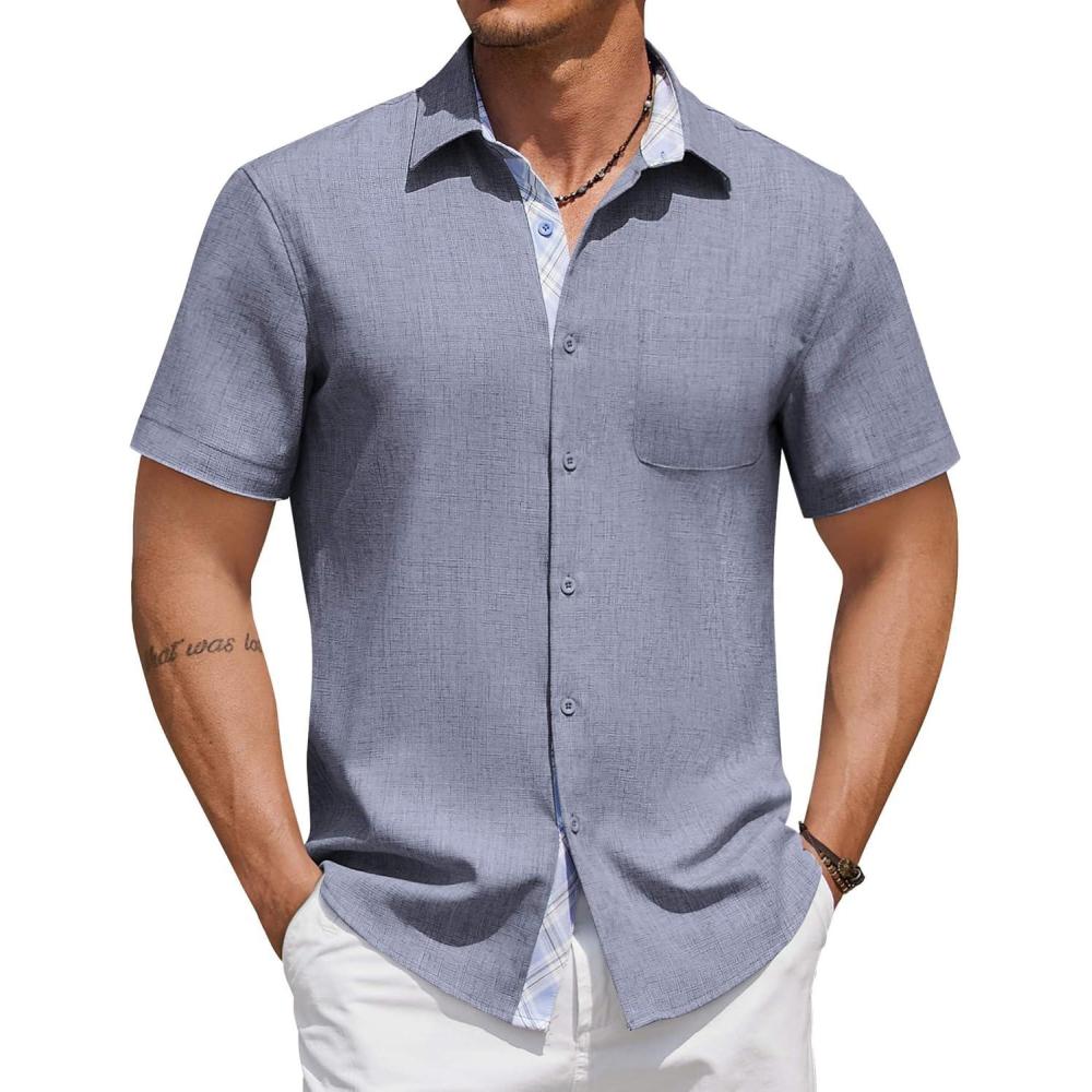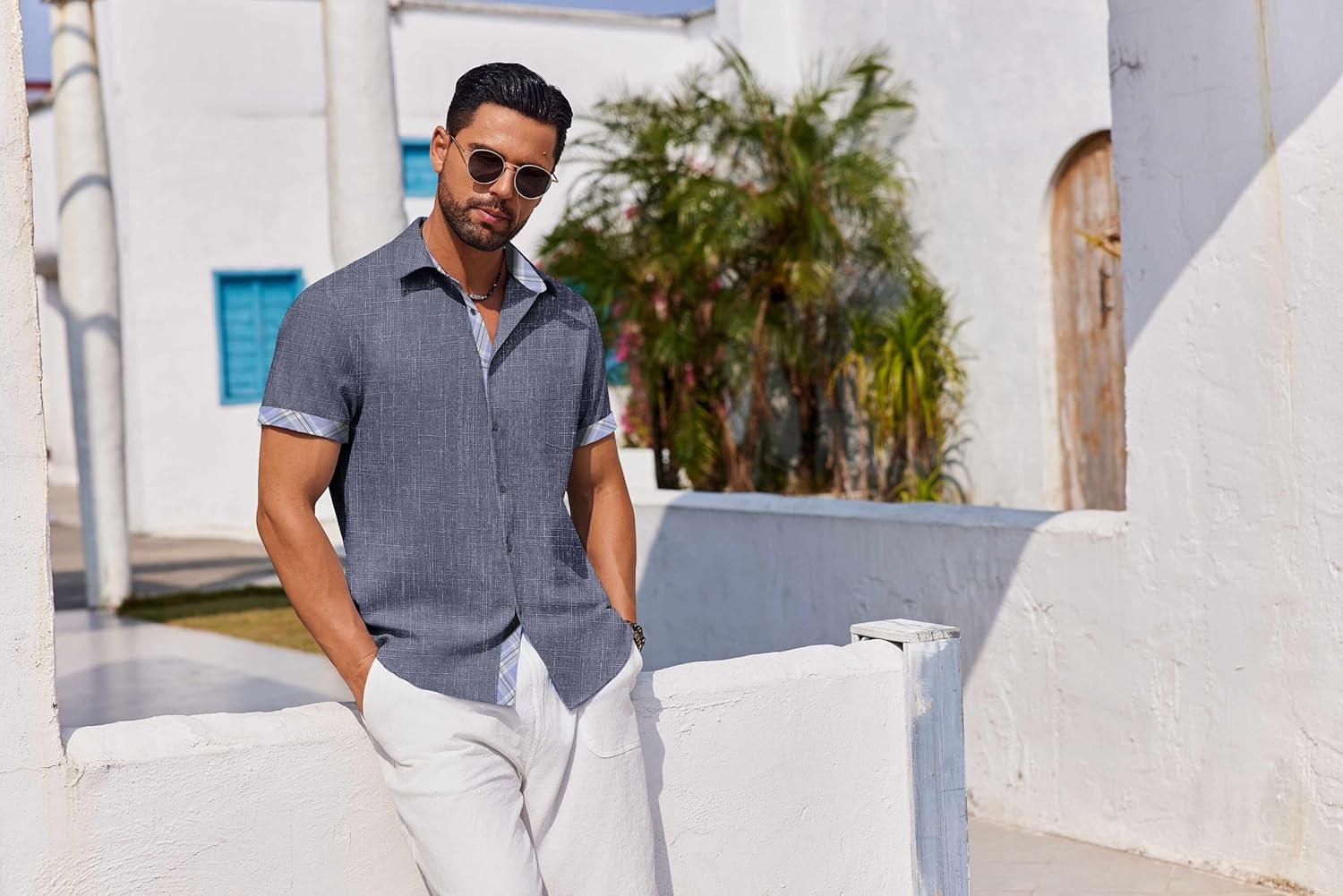 COOFANDY Mens Button Down Shirts Short Sleeve Casual Linen Shirts for Men Summer Beach Wedding Shirt(Dark Gray)